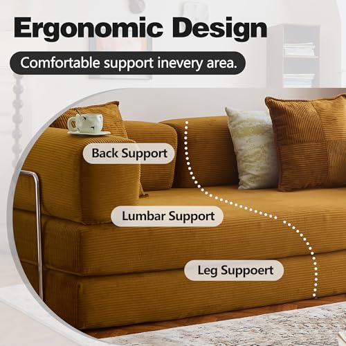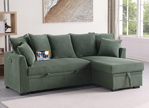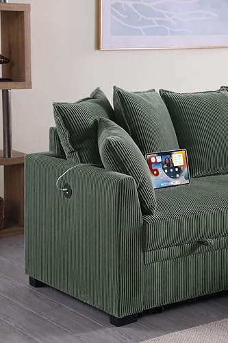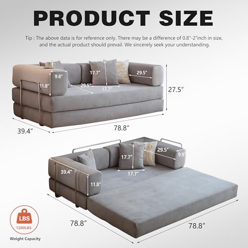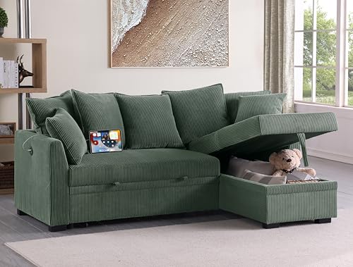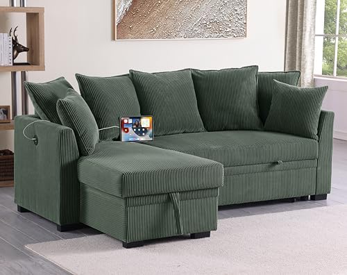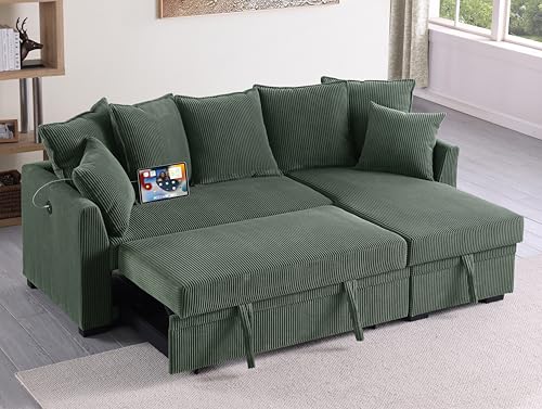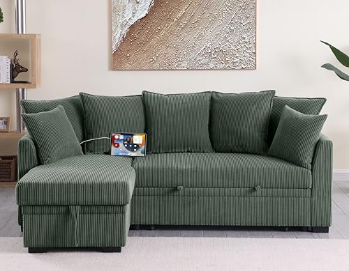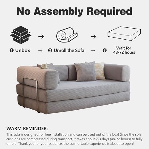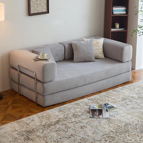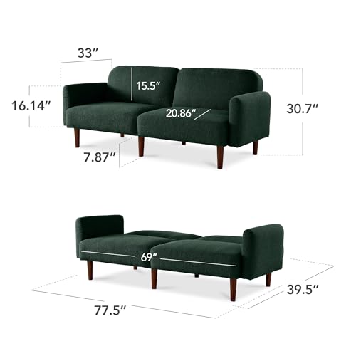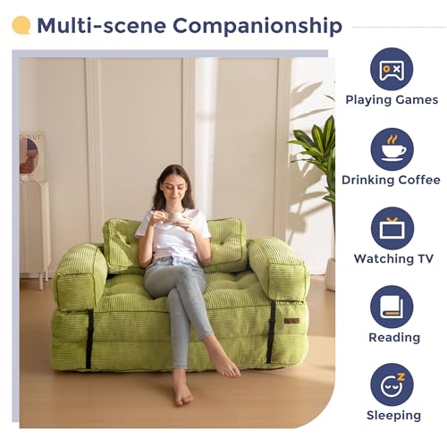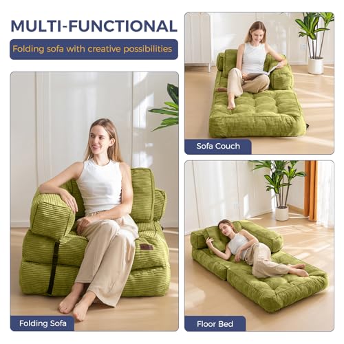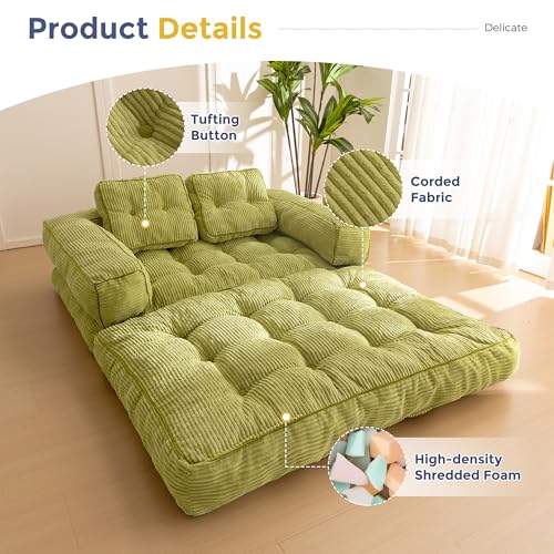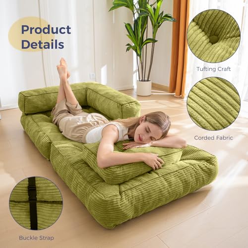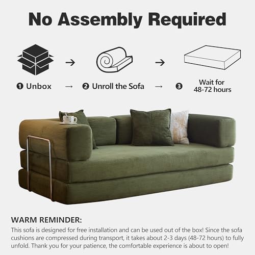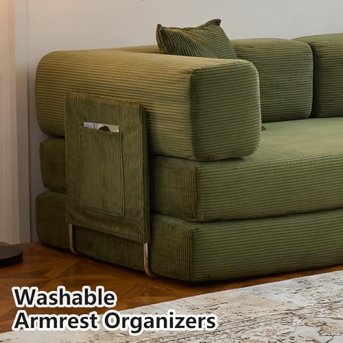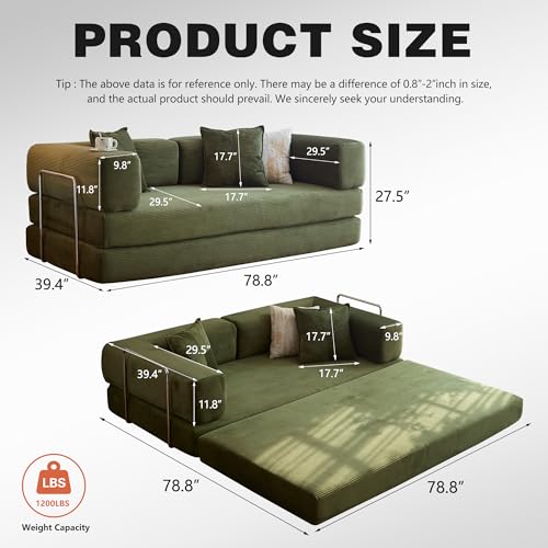 78.8" Convertible Sofa Bed - Compression Sofa with Corduroy Fabric - with Armrests and Backrest - Modular Sectional for Living Room, Bedroom, Studio - Compression Sofa in Box (Green)