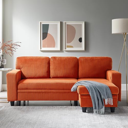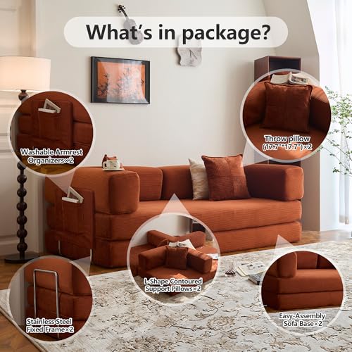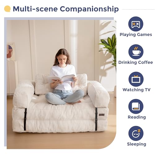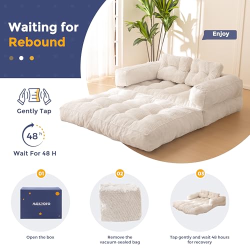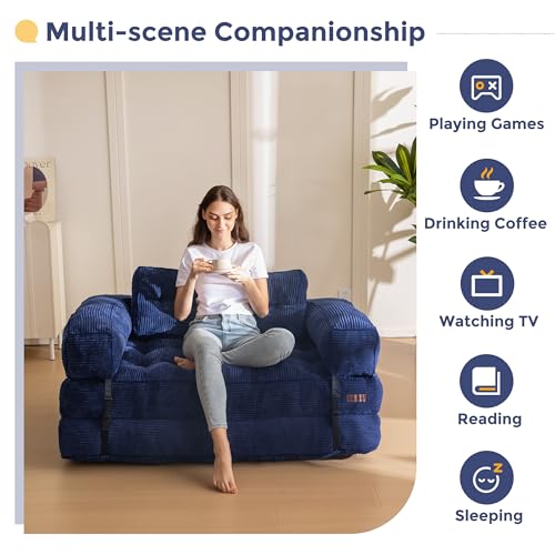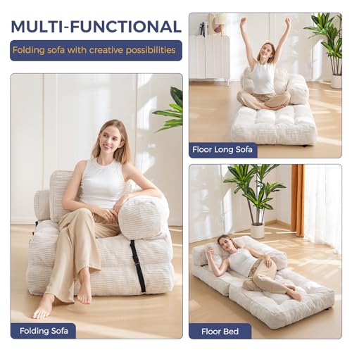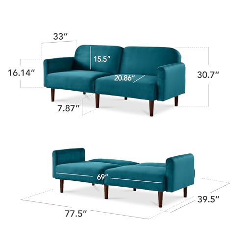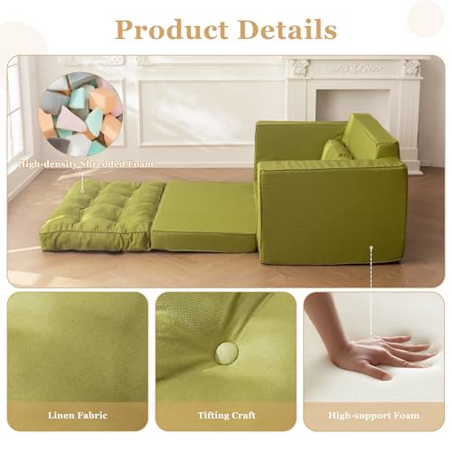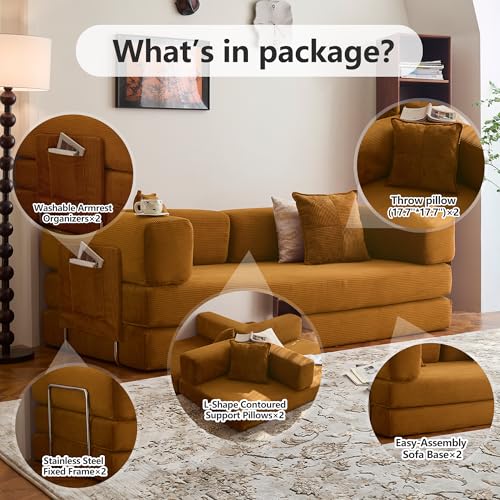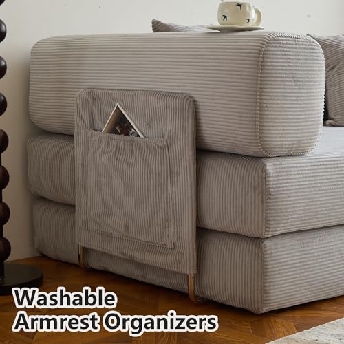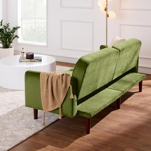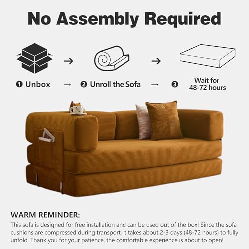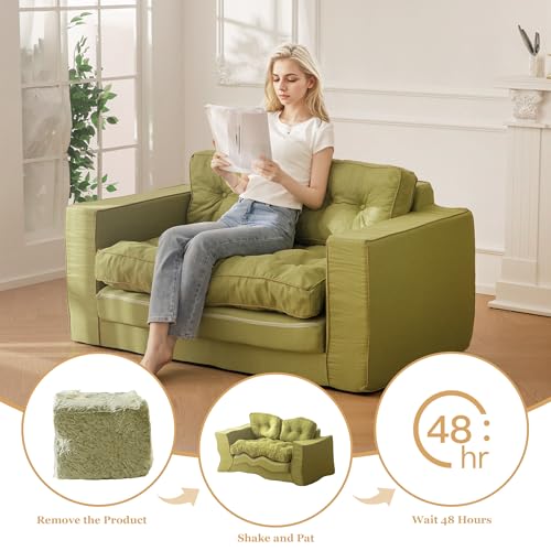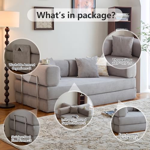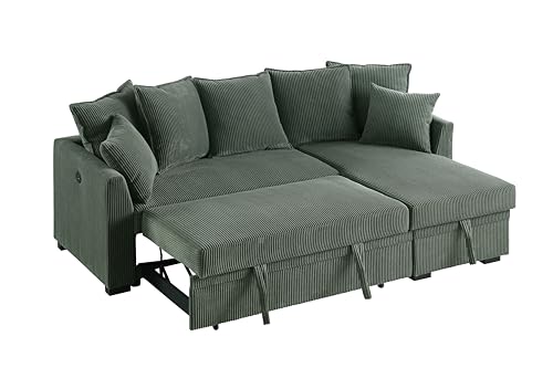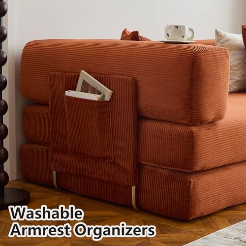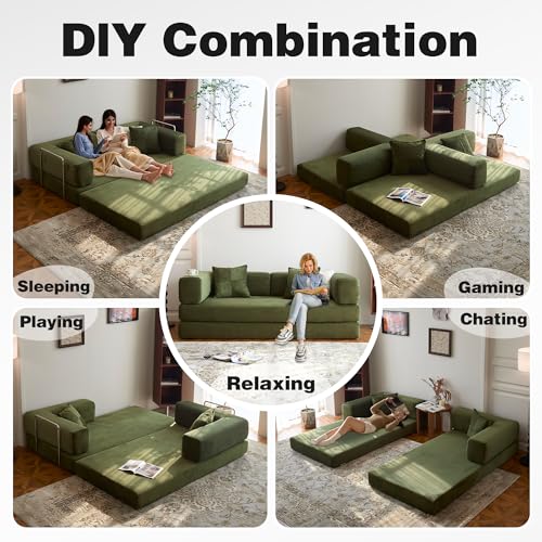 78.8" Convertible Sofa Bed - Compression Sofa with Corduroy Fabric - with Armrests and Backrest - Modular Sectional for Living Room, Bedroom, Studio - Compression Sofa in Box (Green)