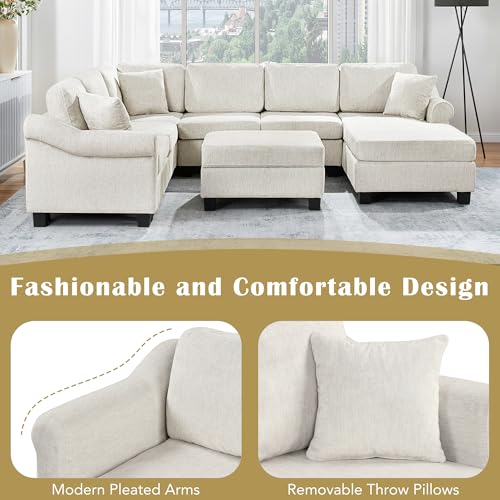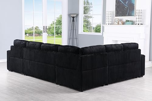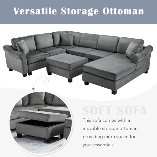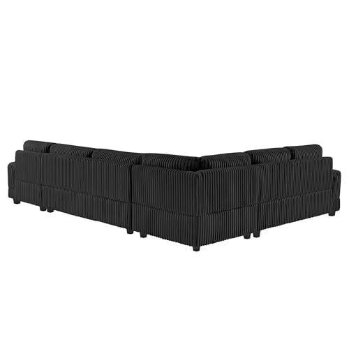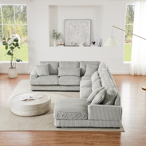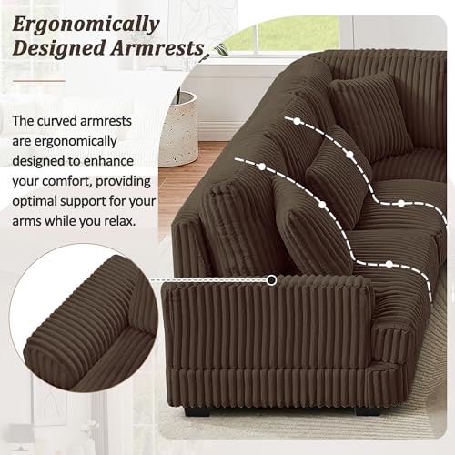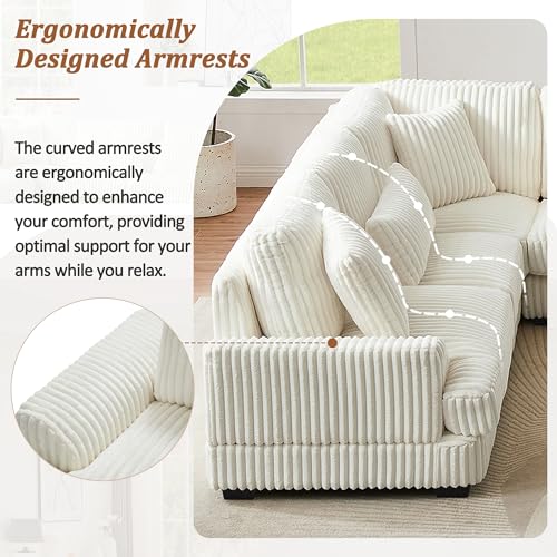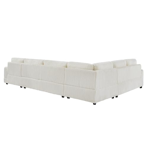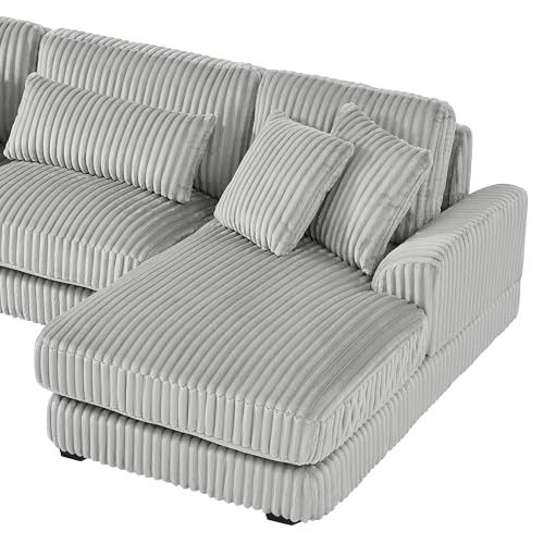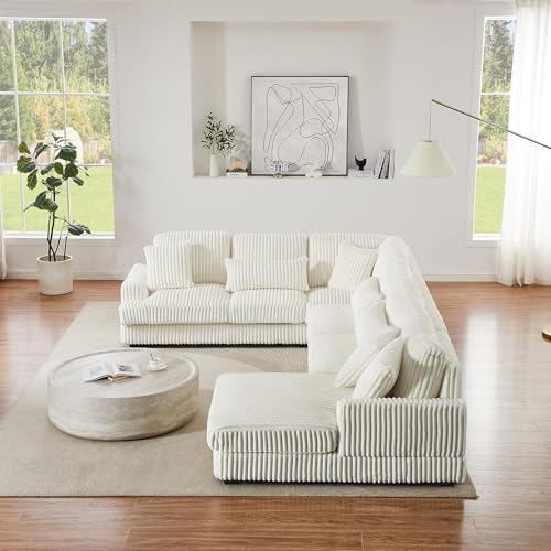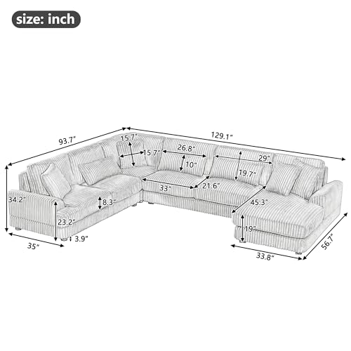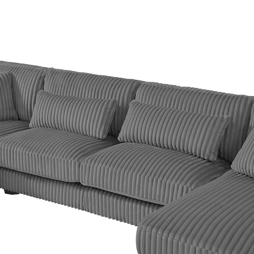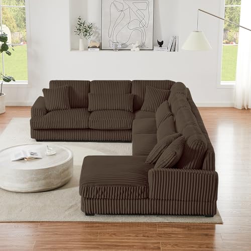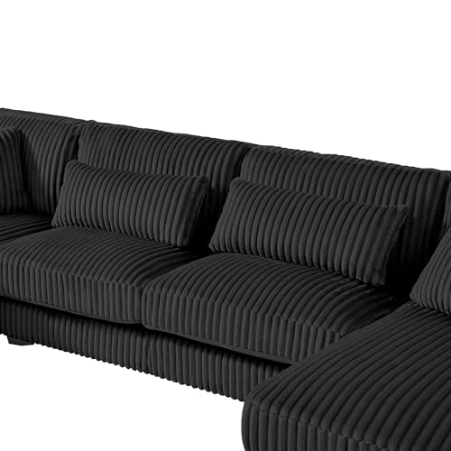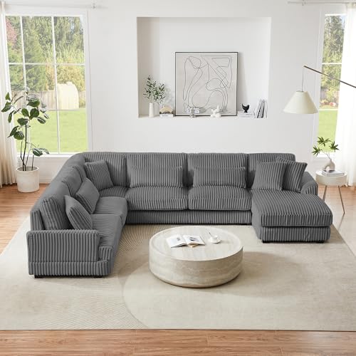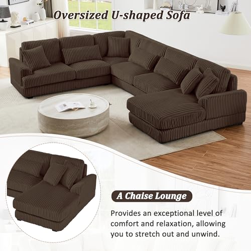 Oversized U-Shaped Sectional Sofa Couch Plush Corduroy Upholstered Modular Deep Seat Sofa&Couch Sectional W/Right Facing Chaise Lounge and 7 Toss Pillows for Home Apartment Living Room Furniture Sets