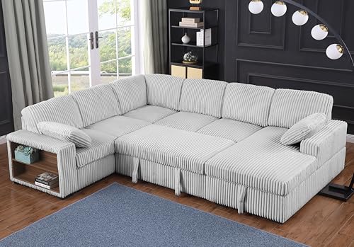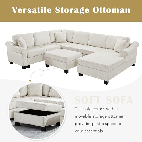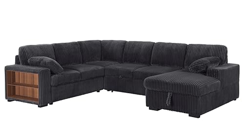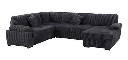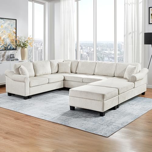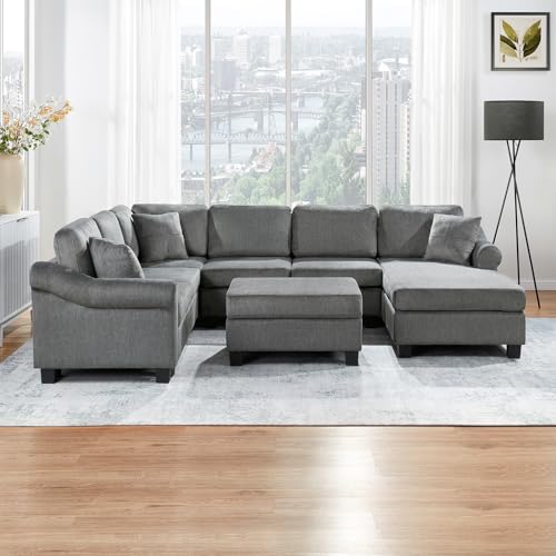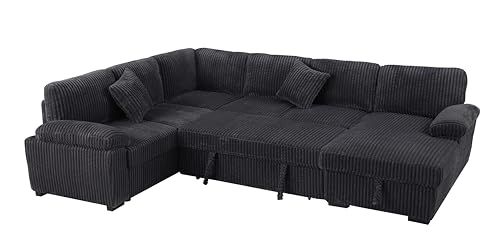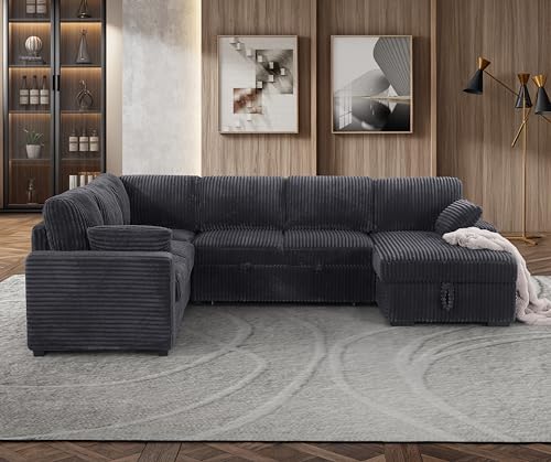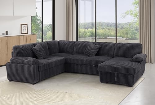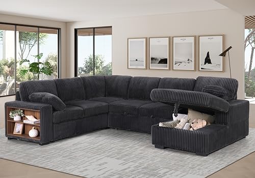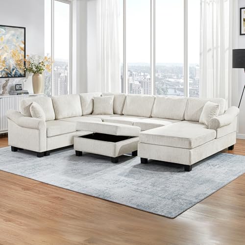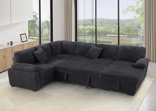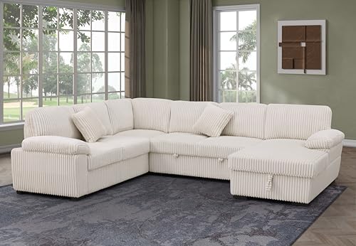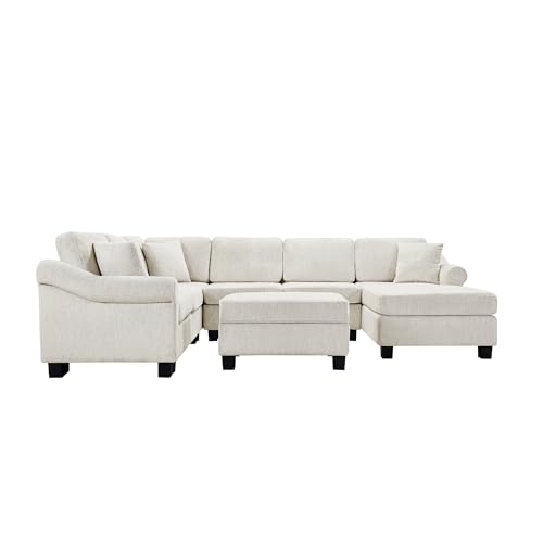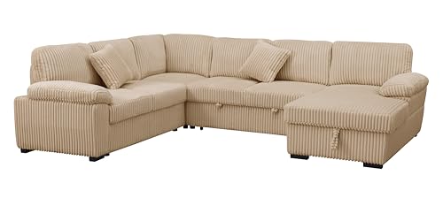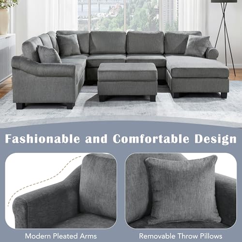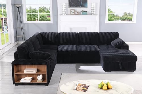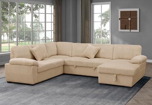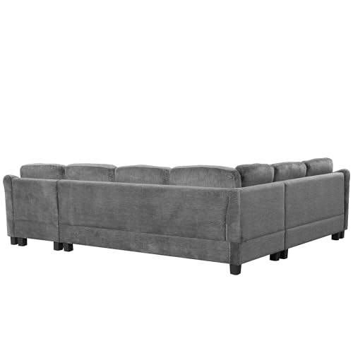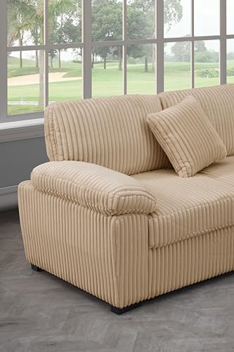 Oversized U-Shaped Sectional Sofa Couch Plush Corduroy Upholstered Modular Deep Seat Sofa&Couch Sectional W/Right Facing Chaise Lounge and 7 Toss Pillows for Home Apartment Living Room Furniture Sets