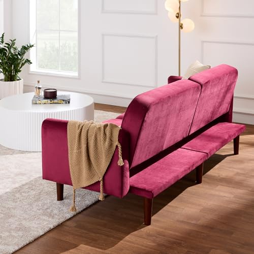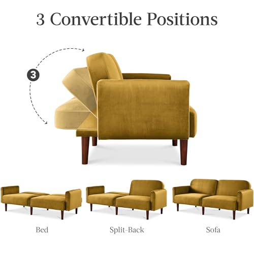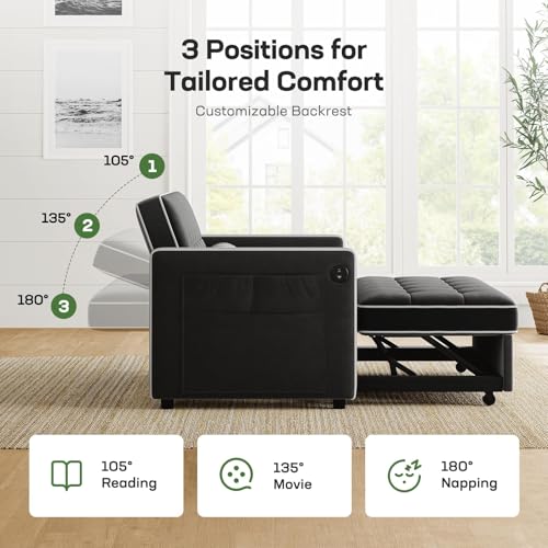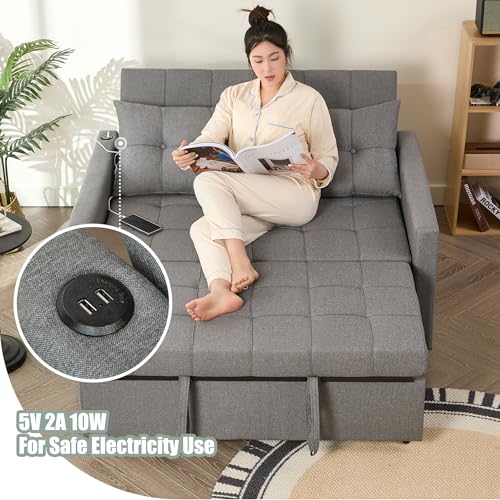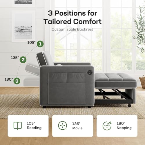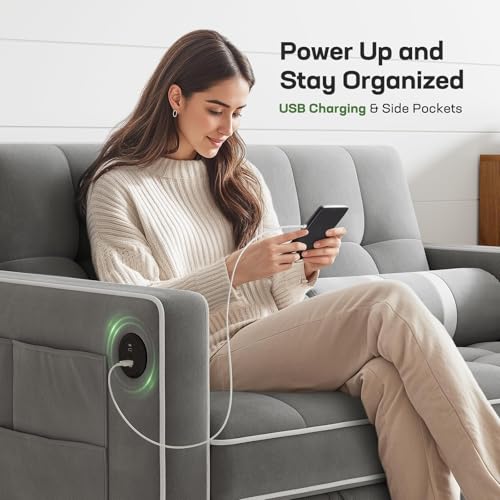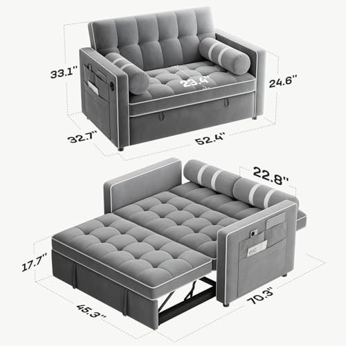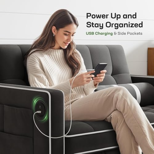 Marsail Sofa Bed, 3-in-1 Convertible Sleeper Sofa, Futon Couch with USB Charging, Side Pockets & Adjustable Backrest, Pull Out Couch for Living Room, Apartment, Loveseat, Velvet Fabric, Grey