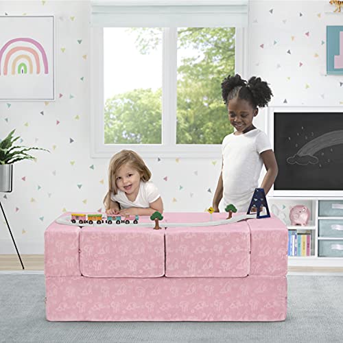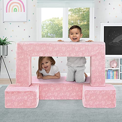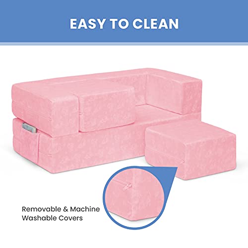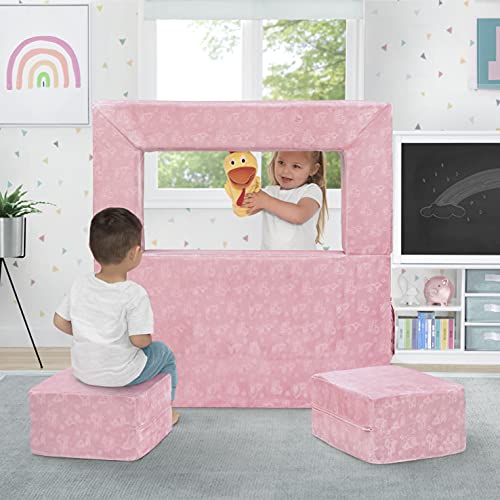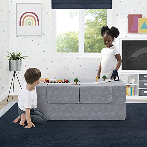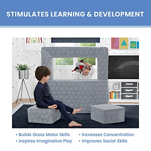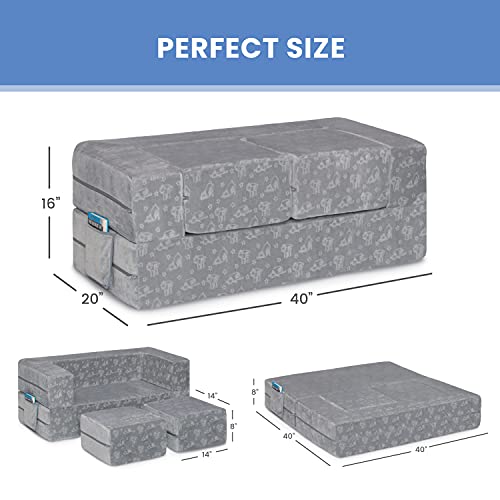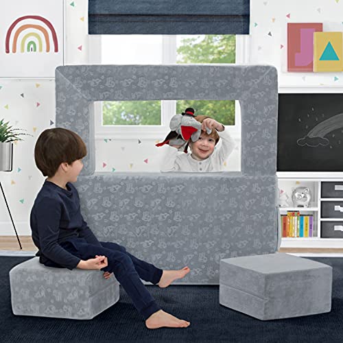 Delta Children Serta Perfect Sleeper Convertible Sofa & Play Set for Kids and Toddlers, Modular Foam Couch and Flip Out Lounger with 2 Ottomans, Grey