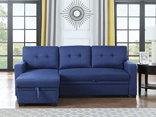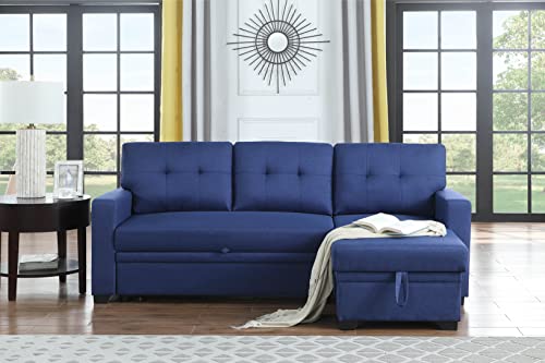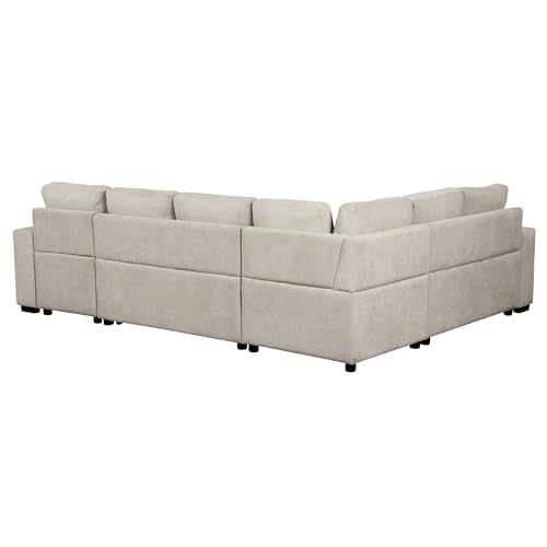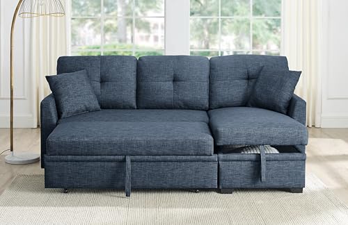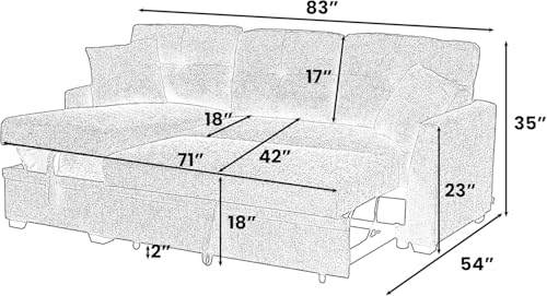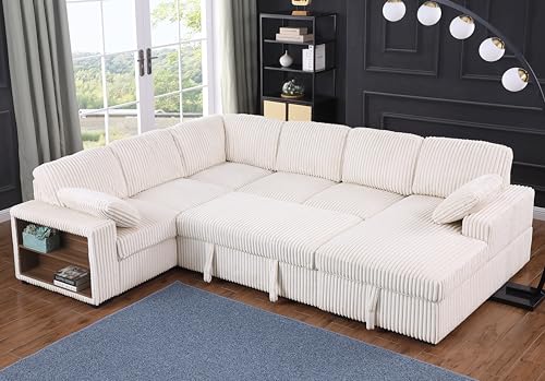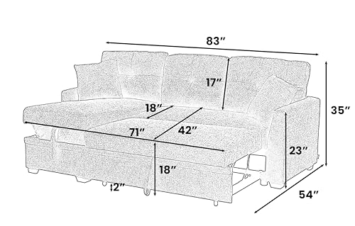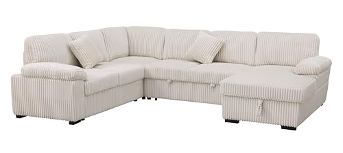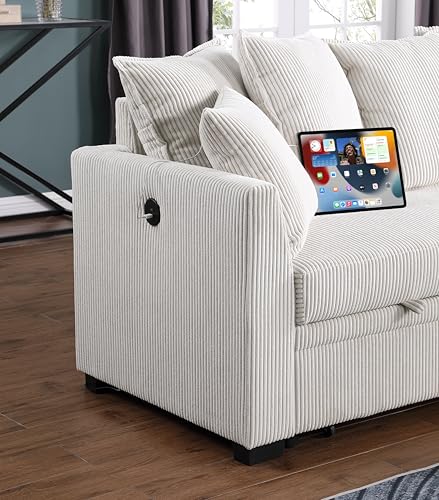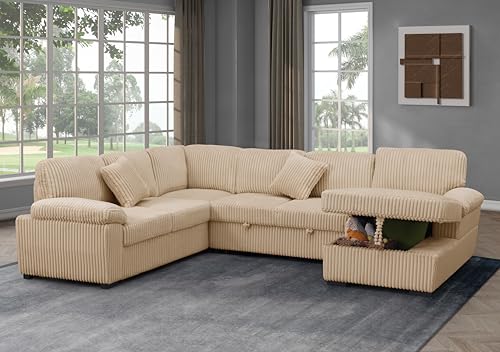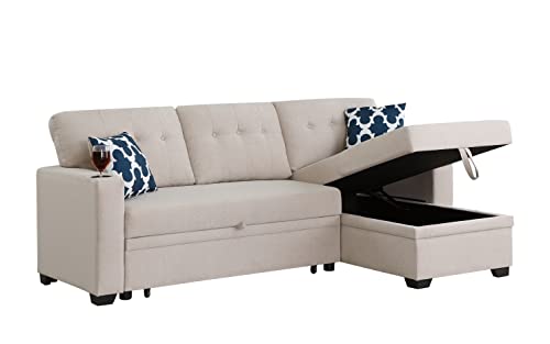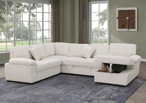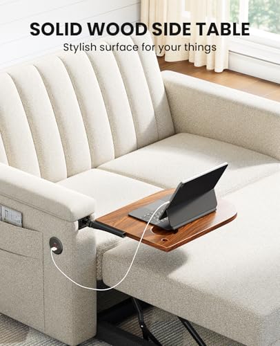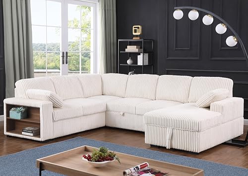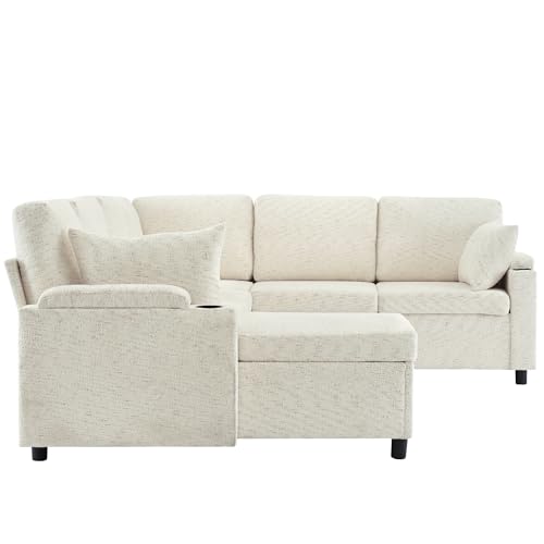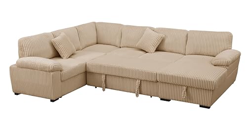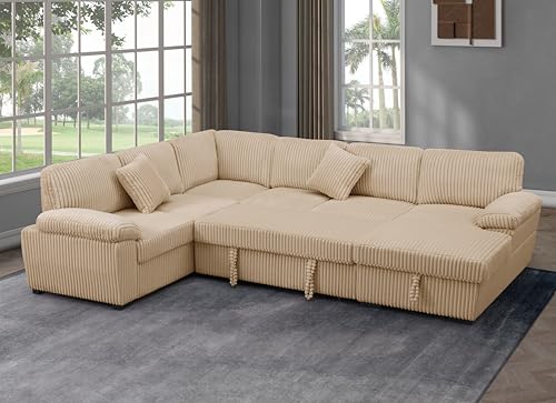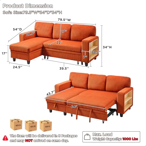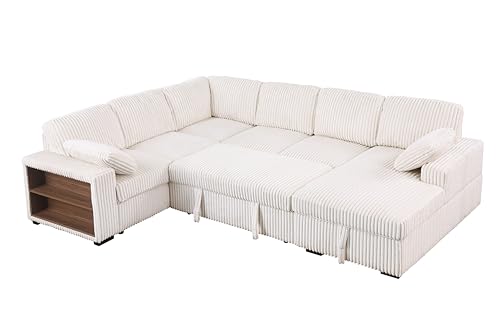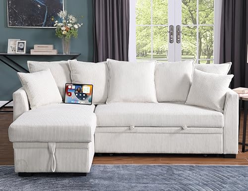 RedLemon 80” Sleeper Sofa Bed,L-Shaped Convertible Sectional Couch with Storage Chaise,2 Built-in Bookshelves and USB Charging Port - Comfy Sofa for Living Room, Apartment, Beige