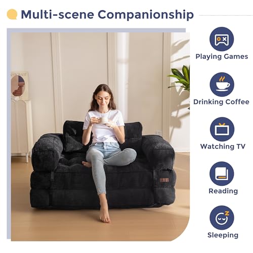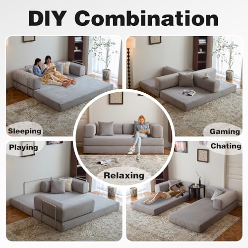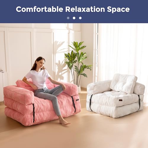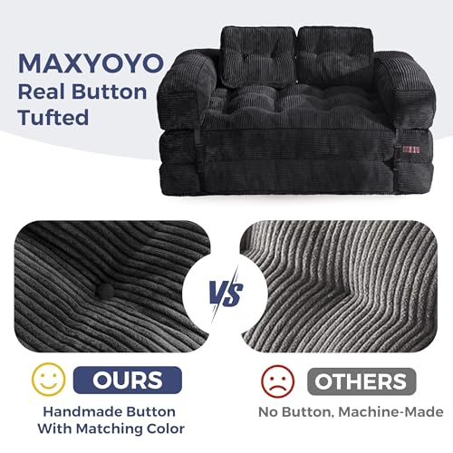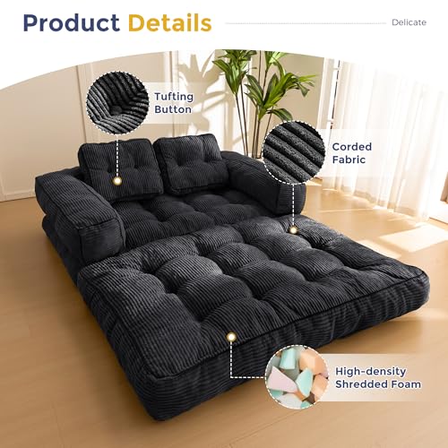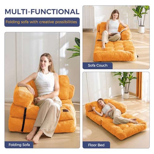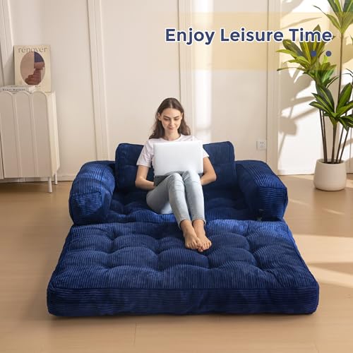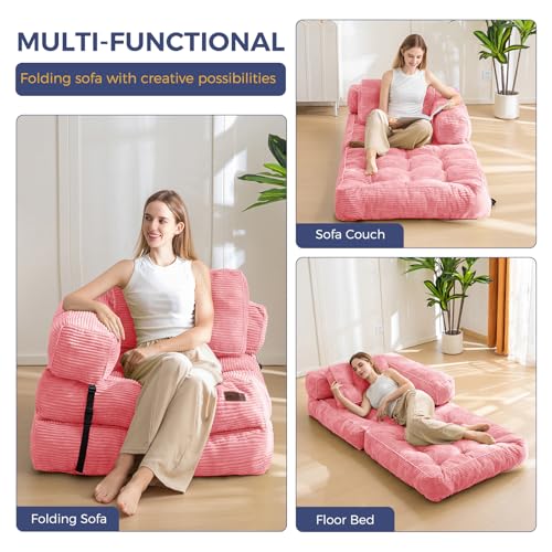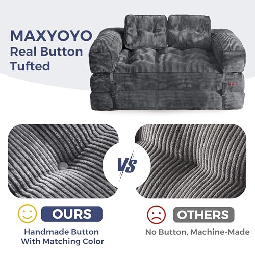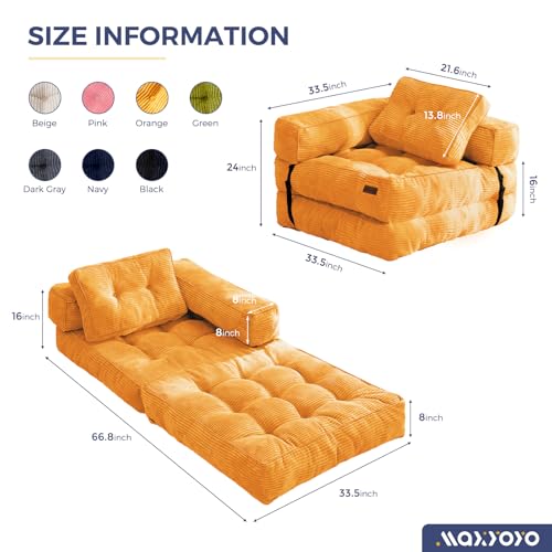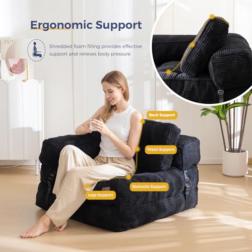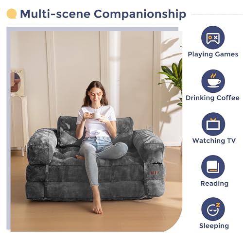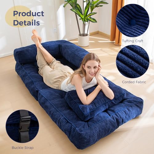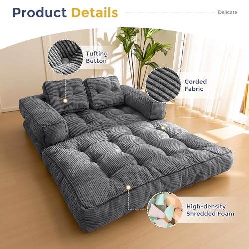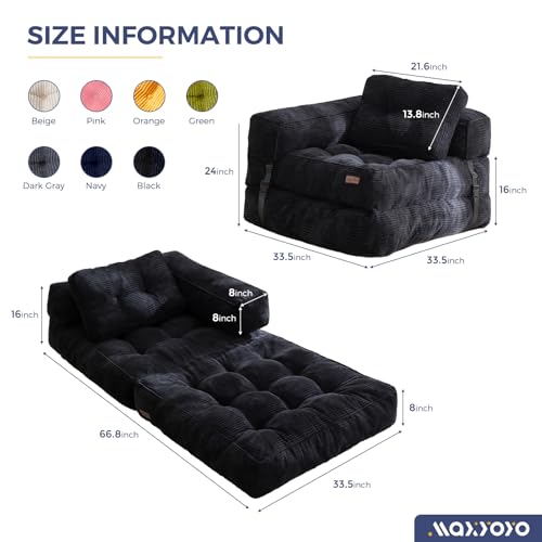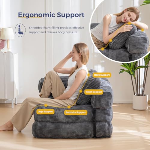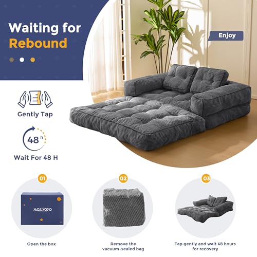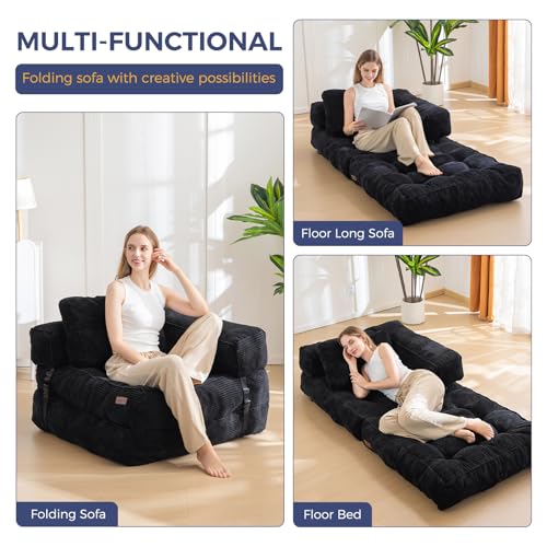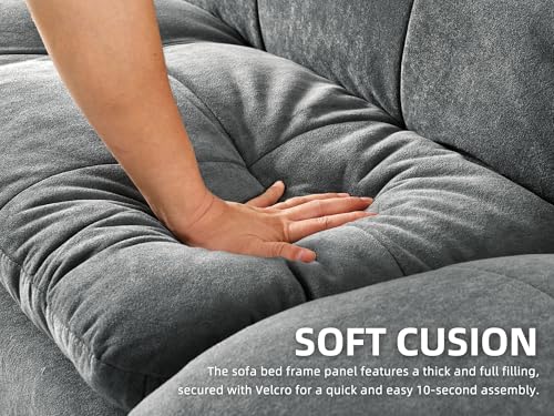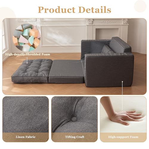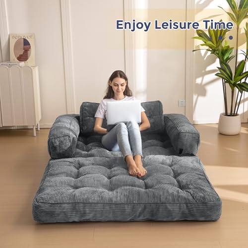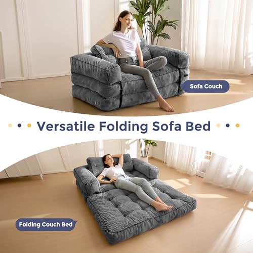 MAXYOYO Folding Sofa Bed, L-Shaped Convertible Sofa Bed with Armrest Foldable Sleeper Couch with Pillow, Portable Fold Out Chair Comfy Floor Couch Lounge for Living Room Bedroom, Dark Grey, Double