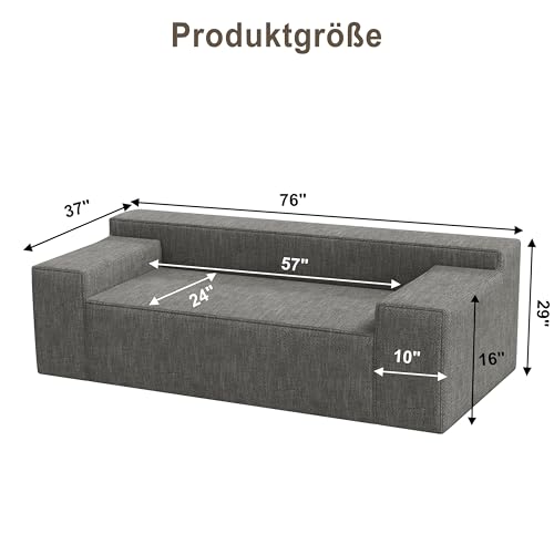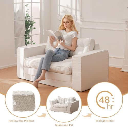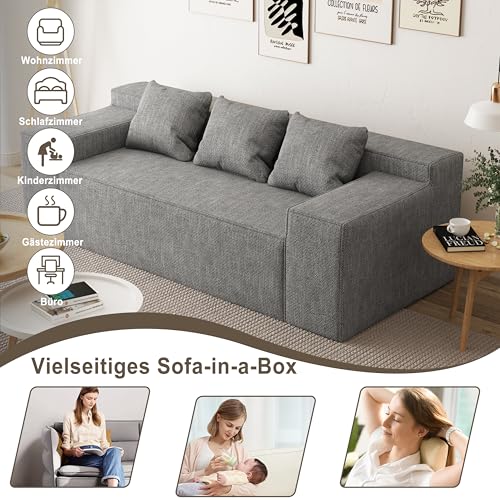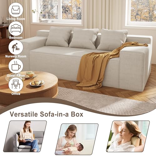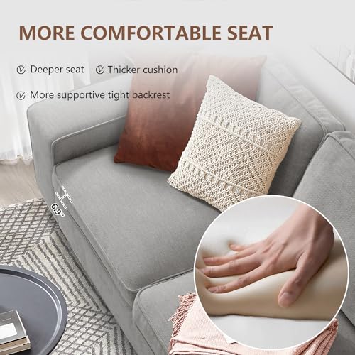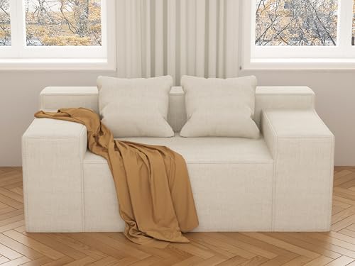 Modern Loveseat, Sofa Couch in a Box, No Assembly Needed, with 2 Pillows, Cat-Scratch Resistant Linen,Small Sofa for for Small Space, Living Room, Bedroom,Grey
