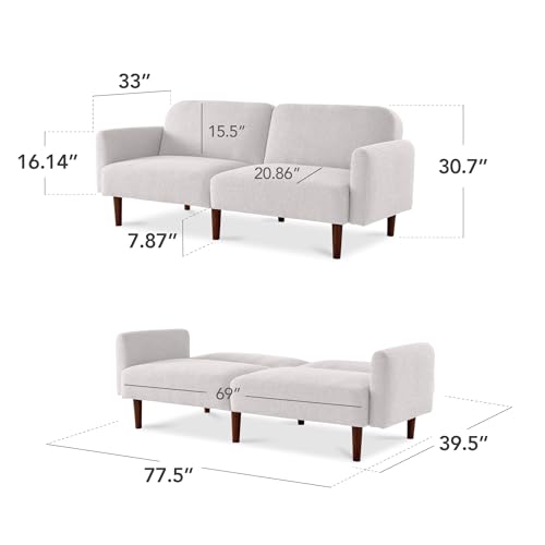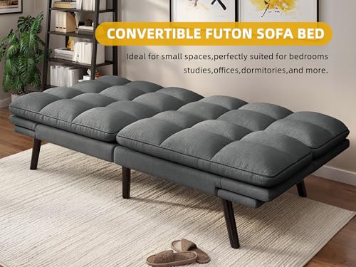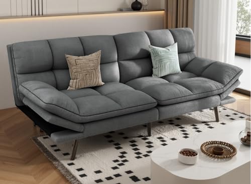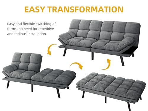 DWVO Multifunctional Futon Sofa Bed, Convertible Sleeper Sofa, 70" Folding Futon Set for Living Room Home Office Aprtment, Modern Folding Couch with Adjustable Backrest & Armrests, Grey