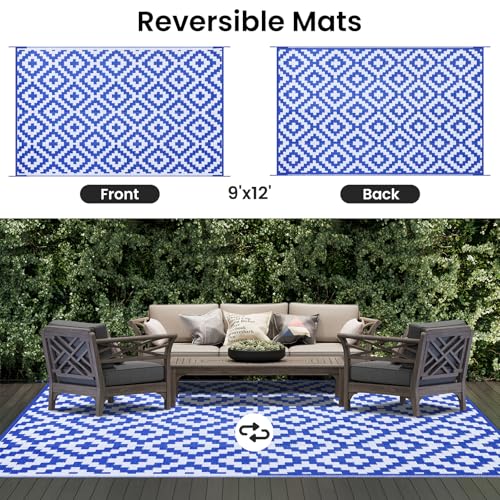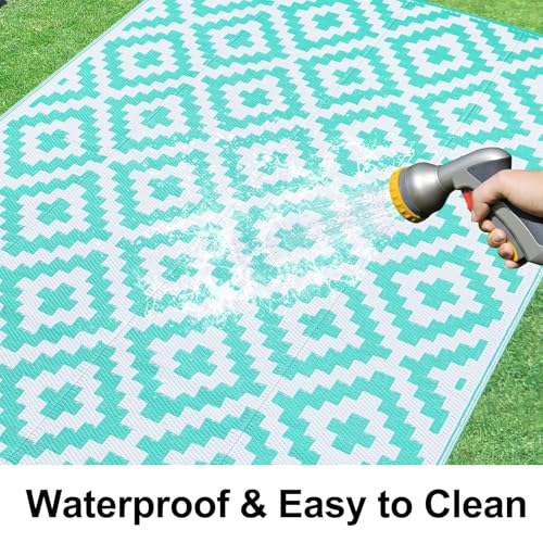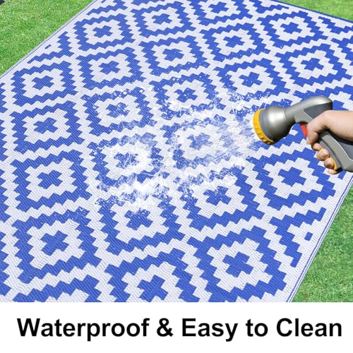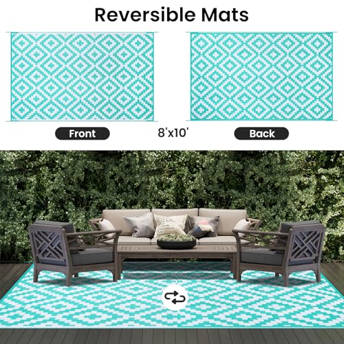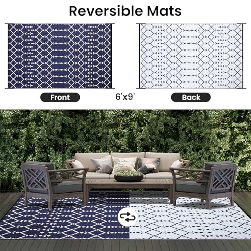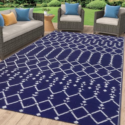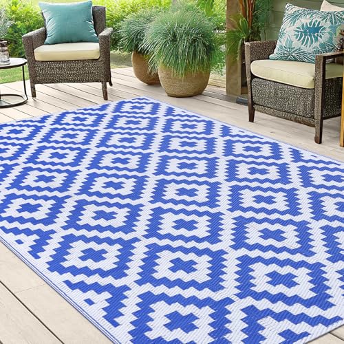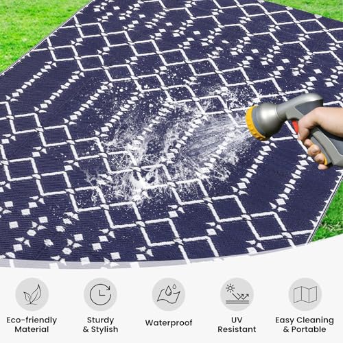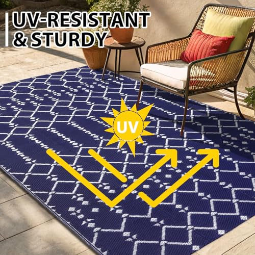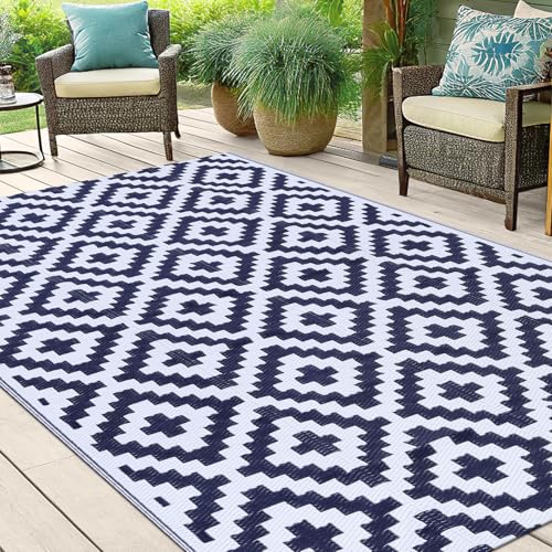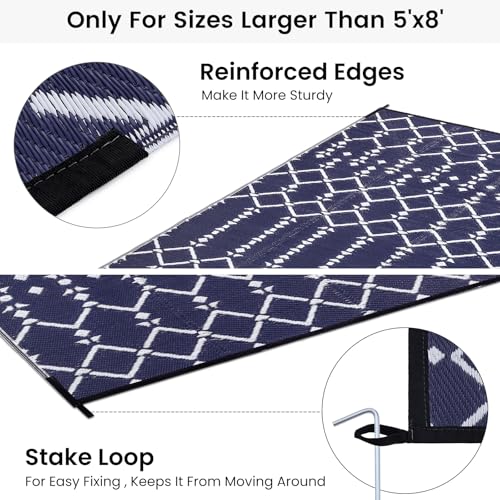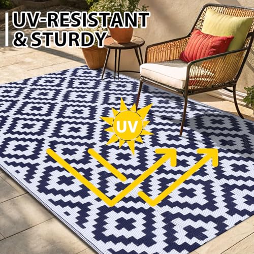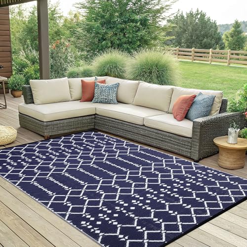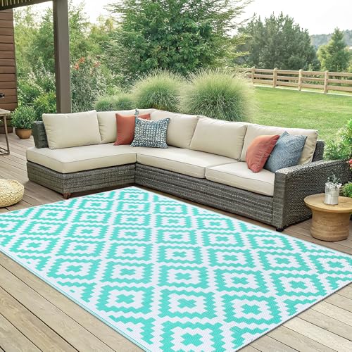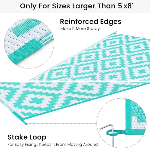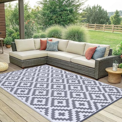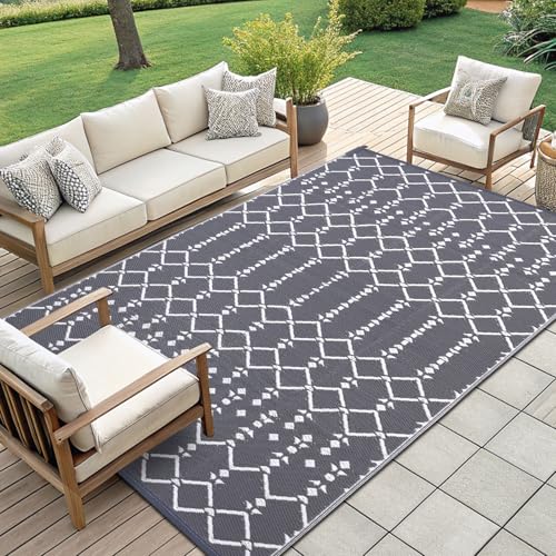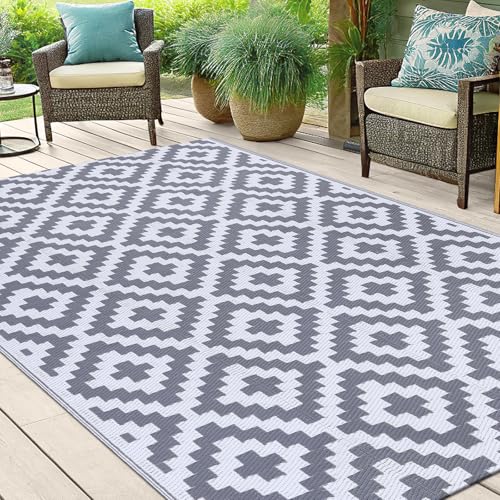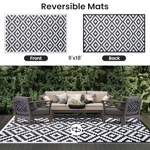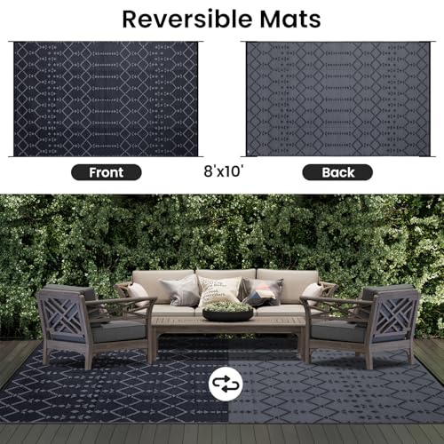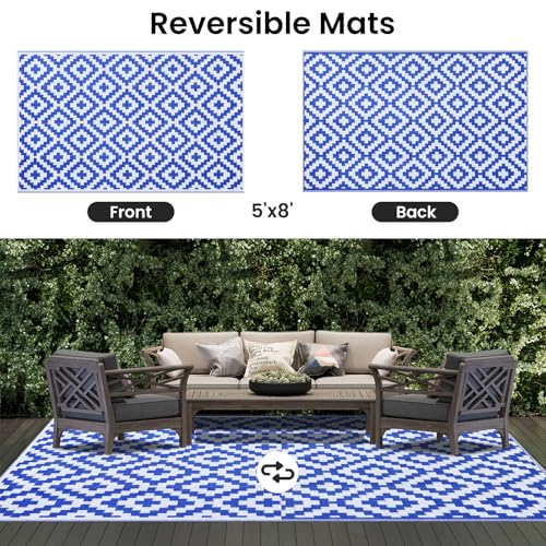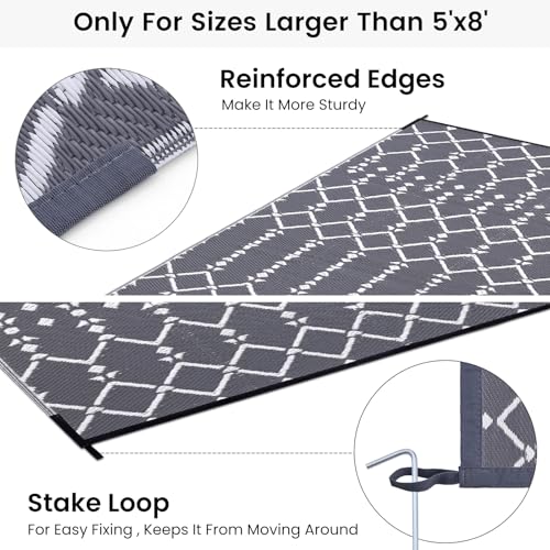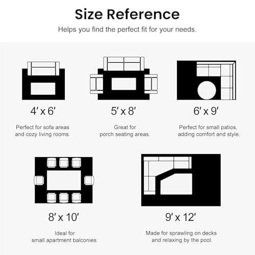 Smiry Waterproof Outdoor Rug 5x8 ft, Reversible Plastic Straw Patio Camping Rugs, Outdoor Indoor RV Mat Carpet for Patio, Outside Entry, Backyard, Deck, Bench, Picnic, Camper, Black & Beige