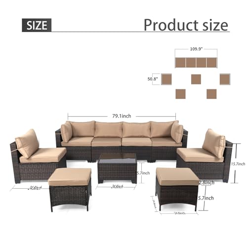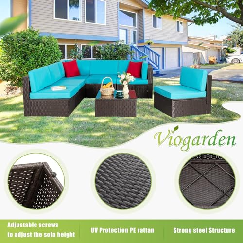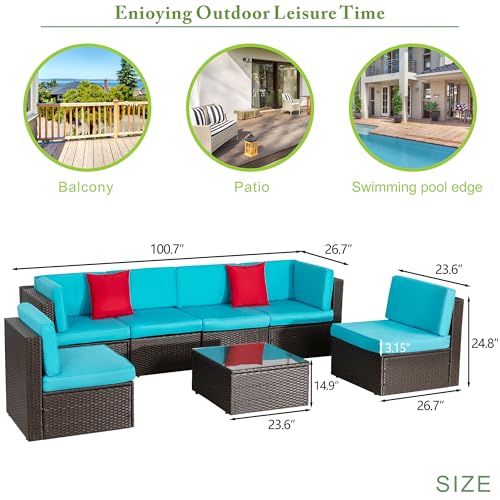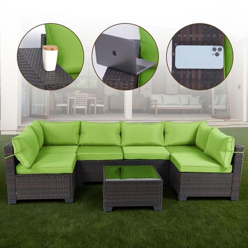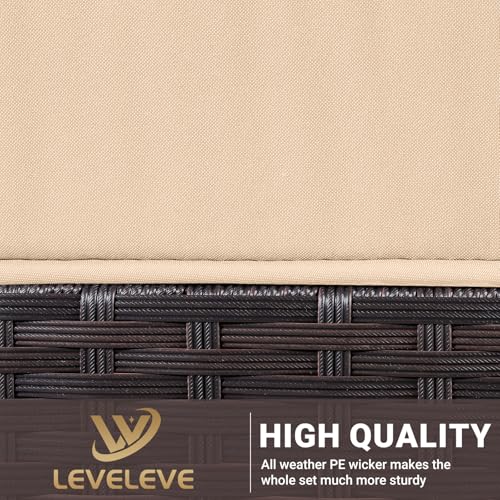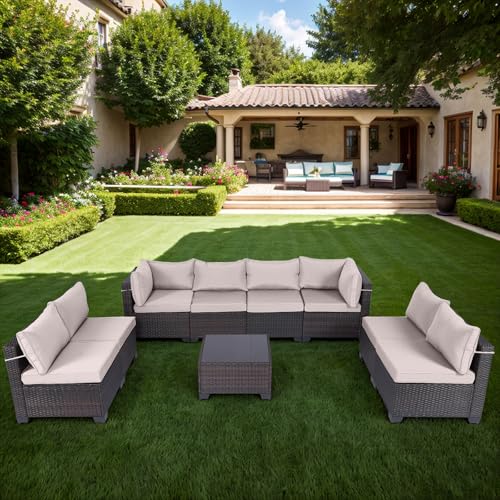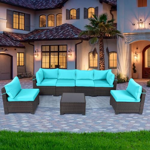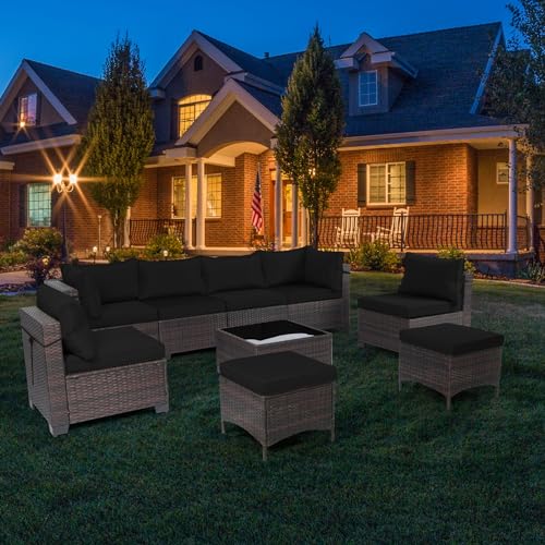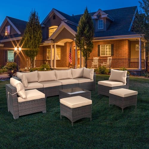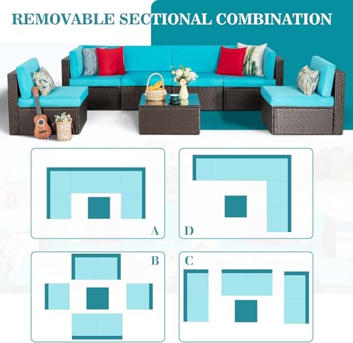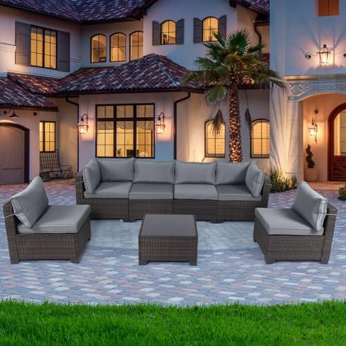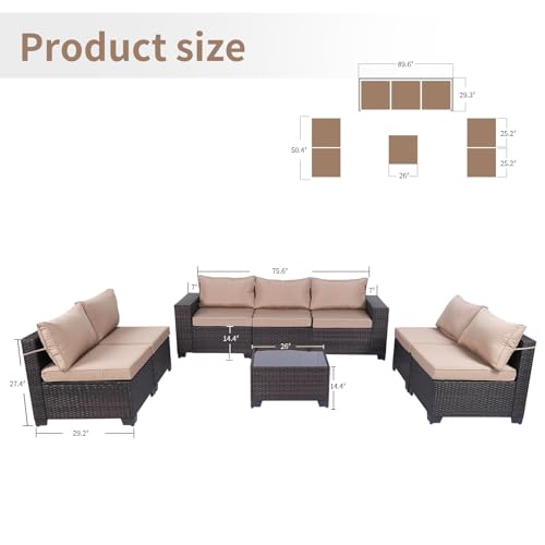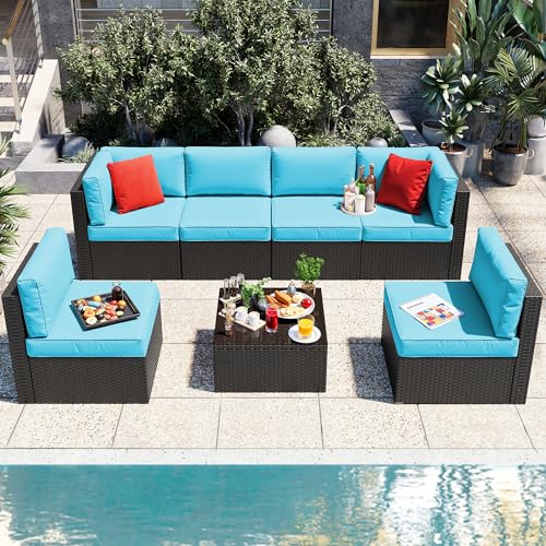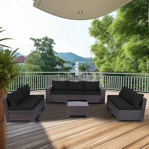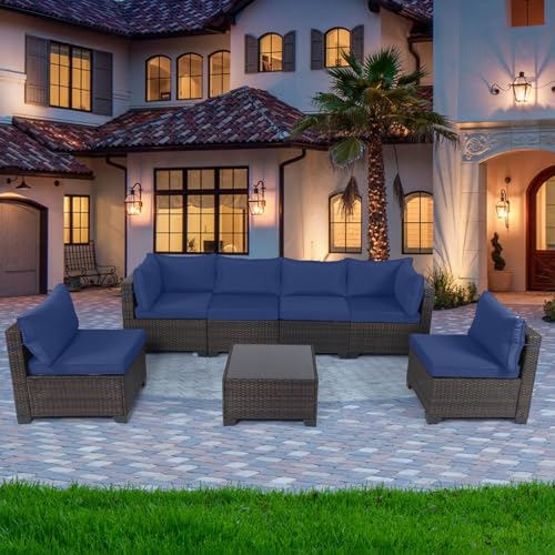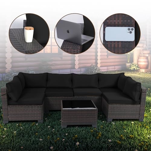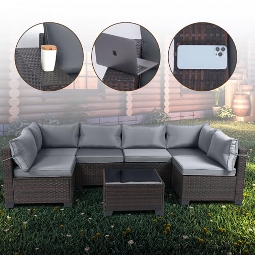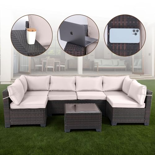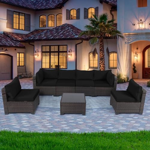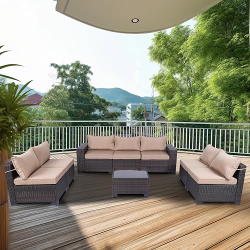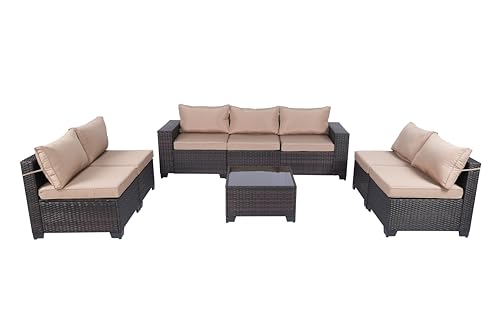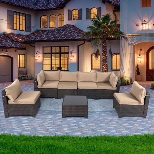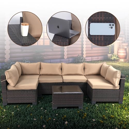 LEVELEVE 7 Pieces Outdoor Patio Furniture Sets,Rattan Conversation Sectional Set,Manual Weaving Wicker Patio Sofa with Tea Table