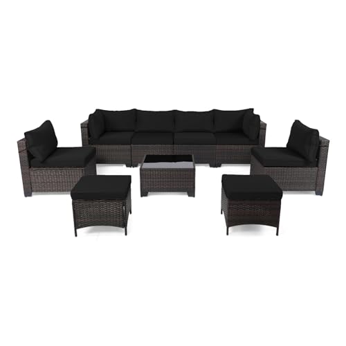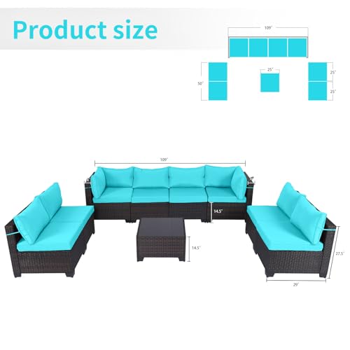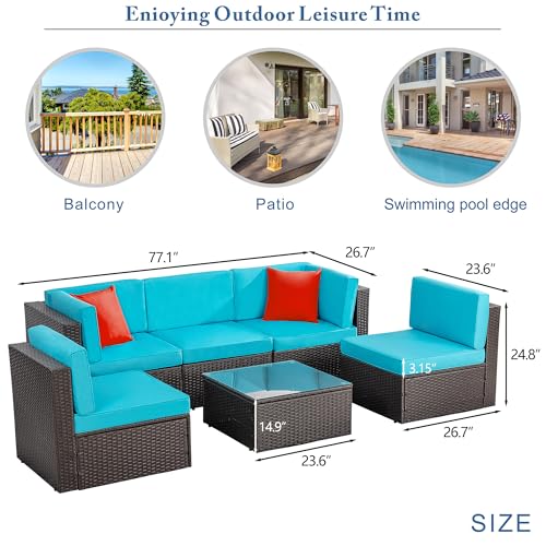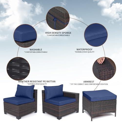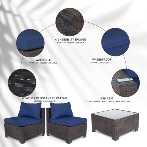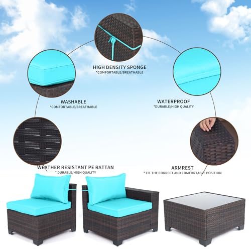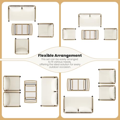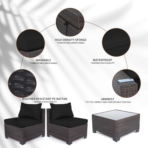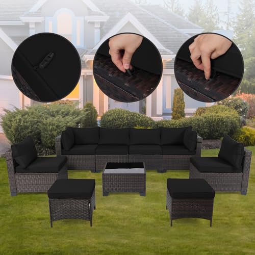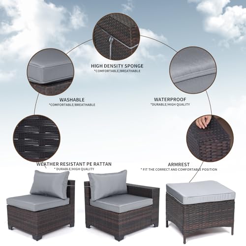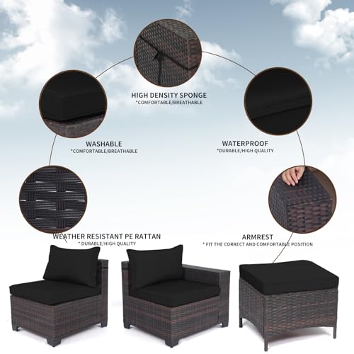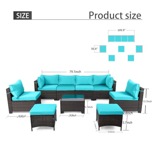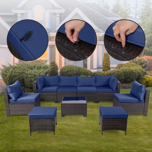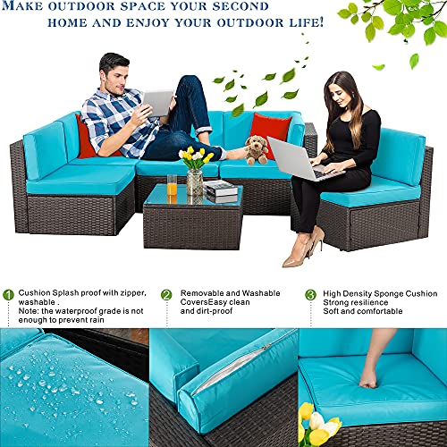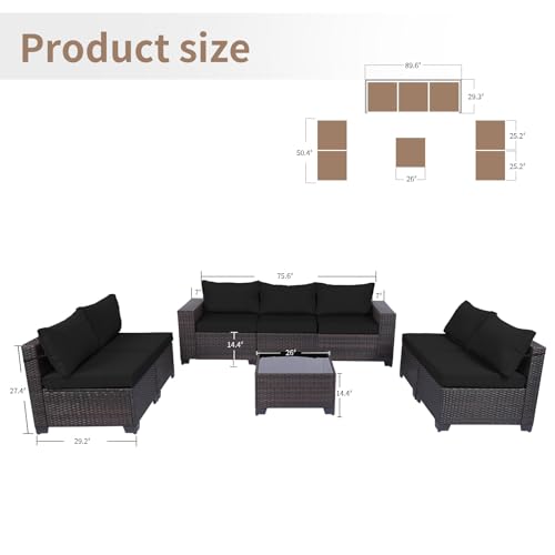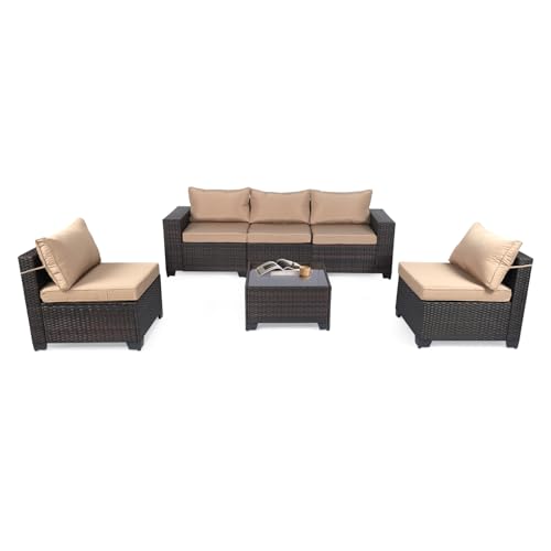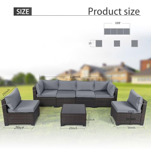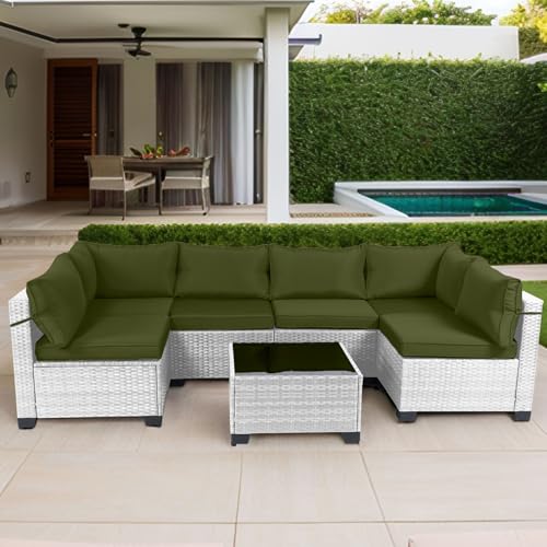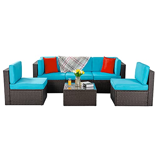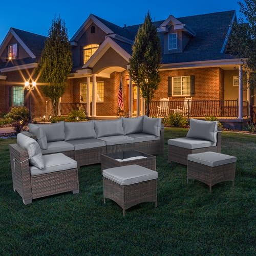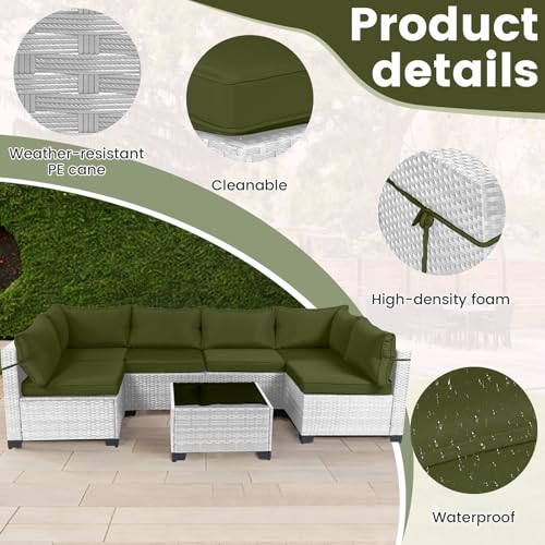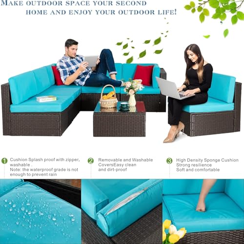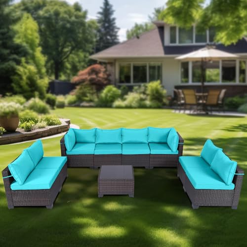 LEVELEVE 7 Pieces Outdoor Patio Furniture Sets,Rattan Conversation Sectional Set,Manual Weaving Wicker Patio Sofa with Tea Table