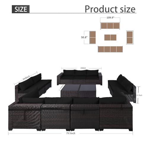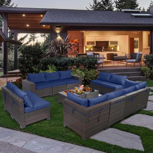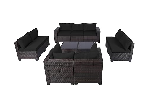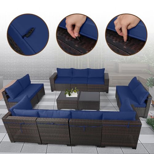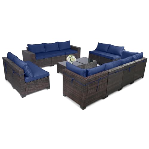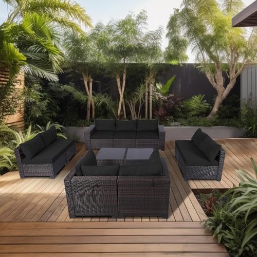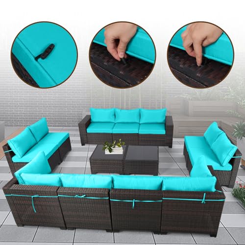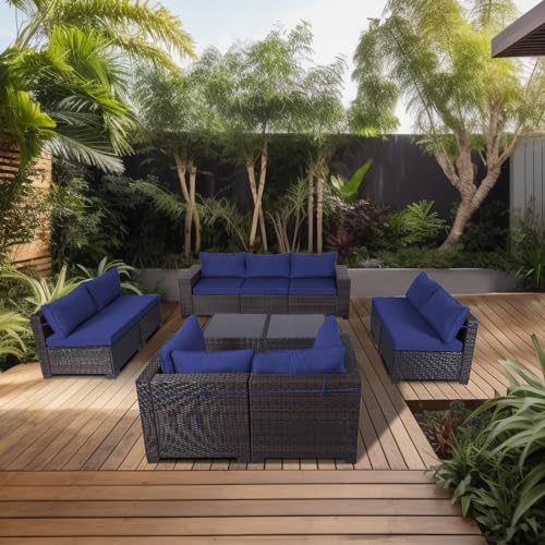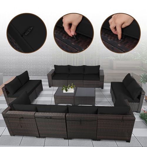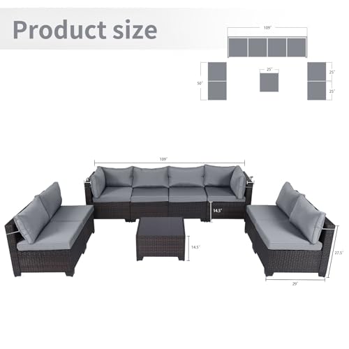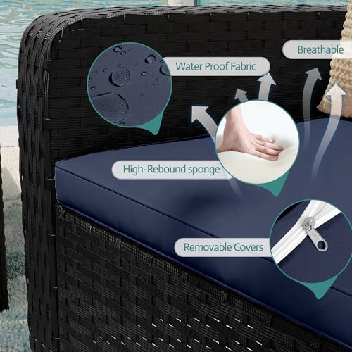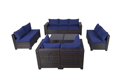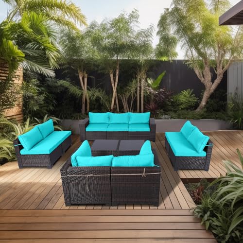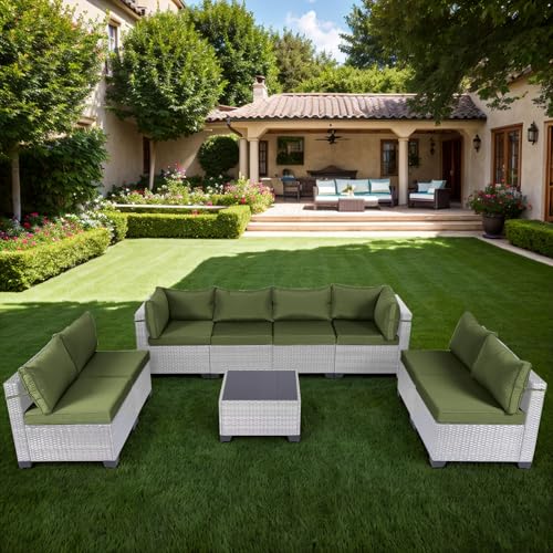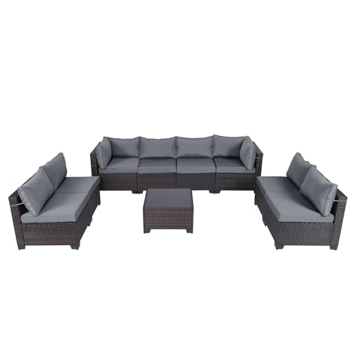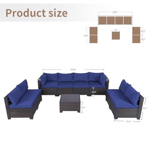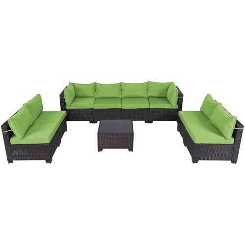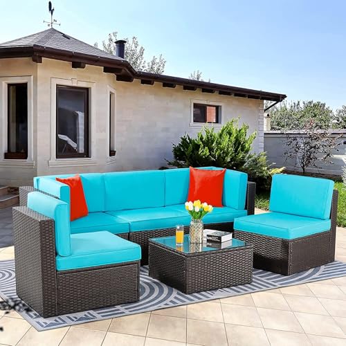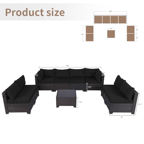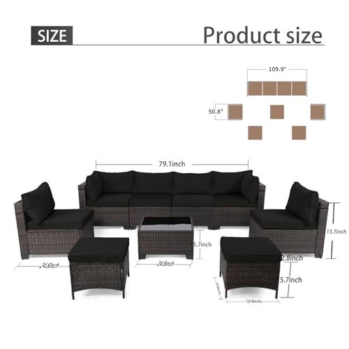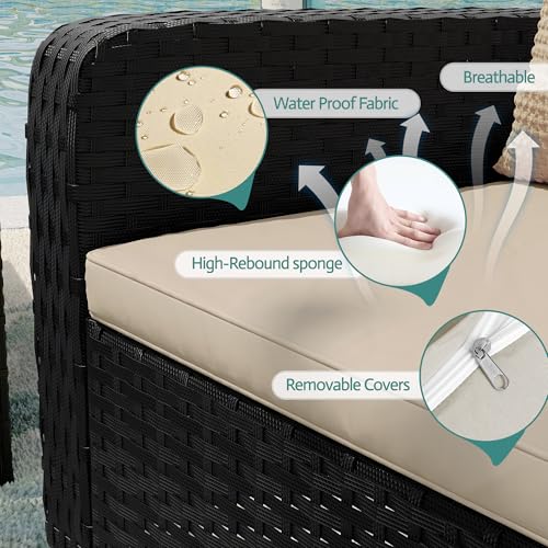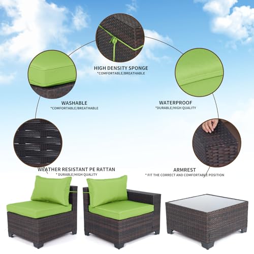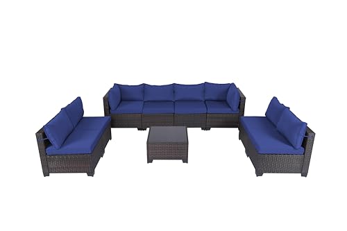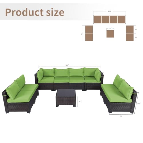 LEVELEVE 7 Pieces Outdoor Patio Furniture Sets,Rattan Conversation Sectional Set,Manual Weaving Wicker Patio Sofa with Tea Table