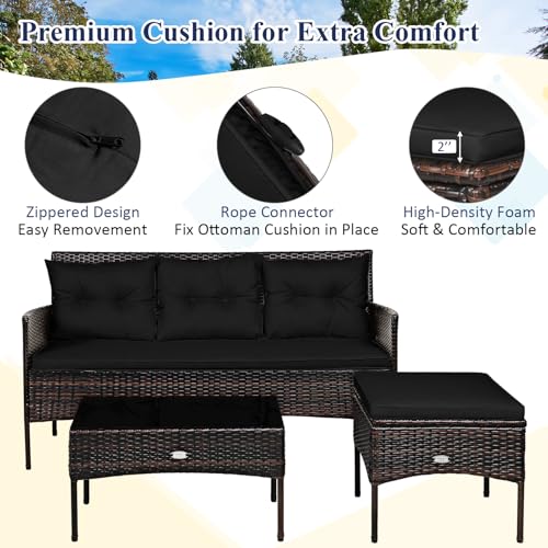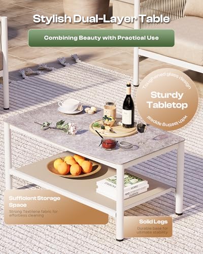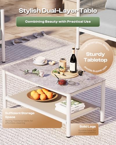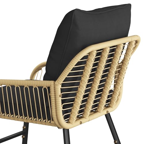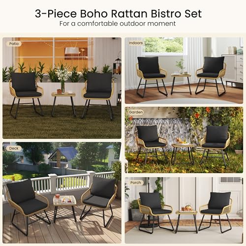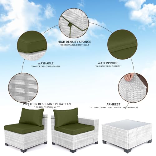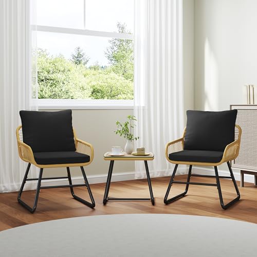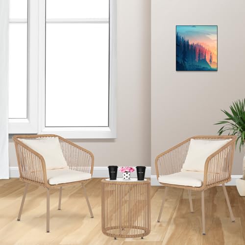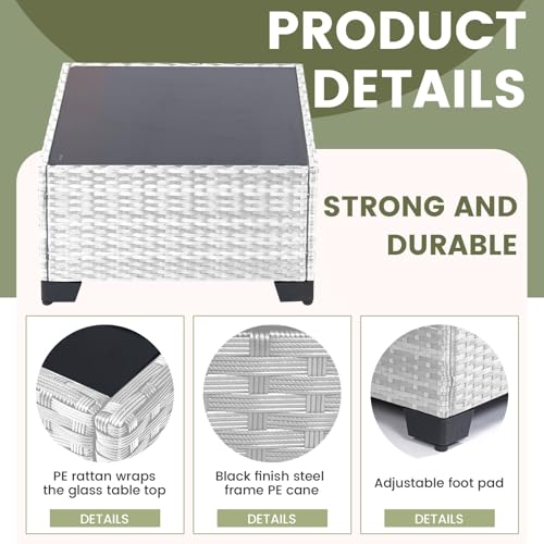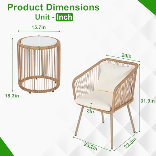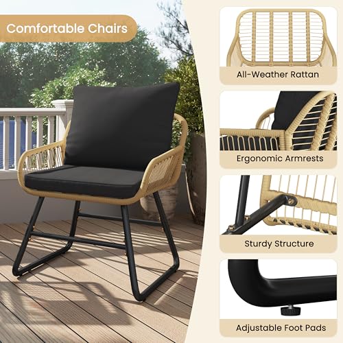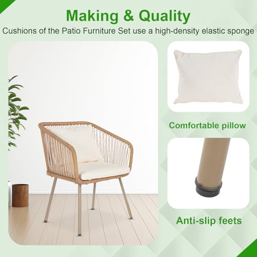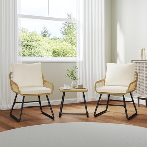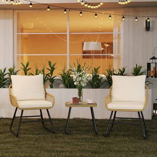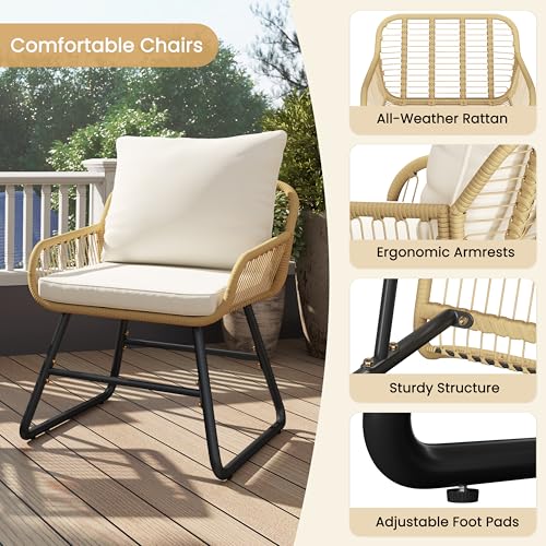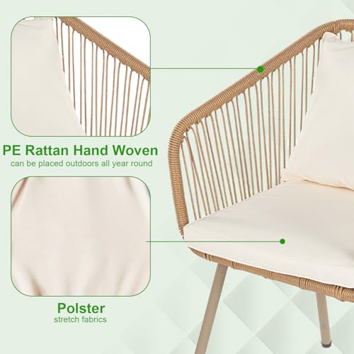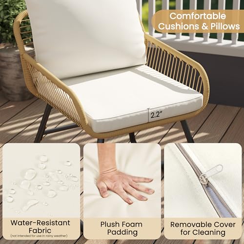 FDW 3-Piece Outdoor Furniture Modern Patio Bistro Set Rattan Conversation Set Wicker Patio Furniture Set with 2 Chairs Coffee Table Cushions Lumbar Pillows for Patio Outdoor Backyard Porch, White