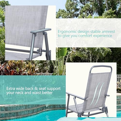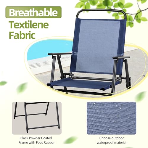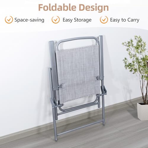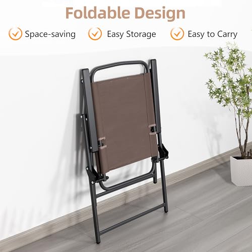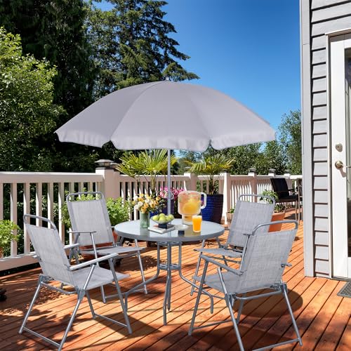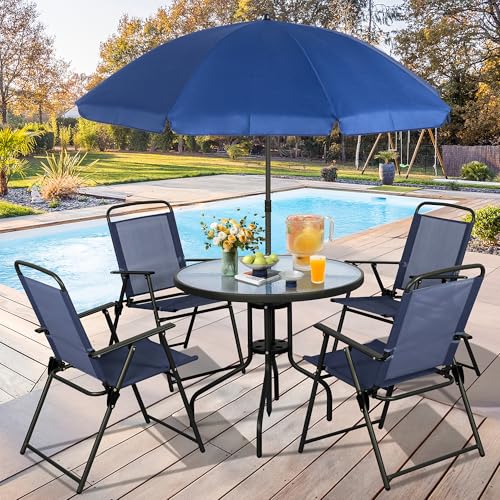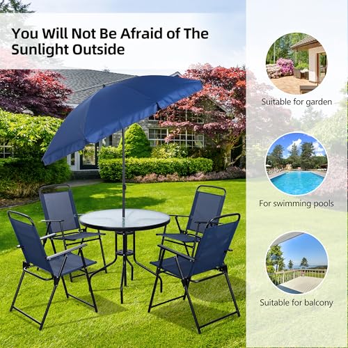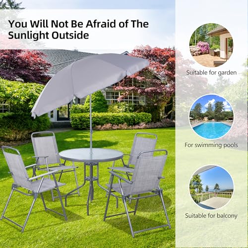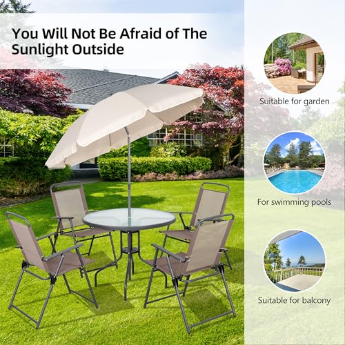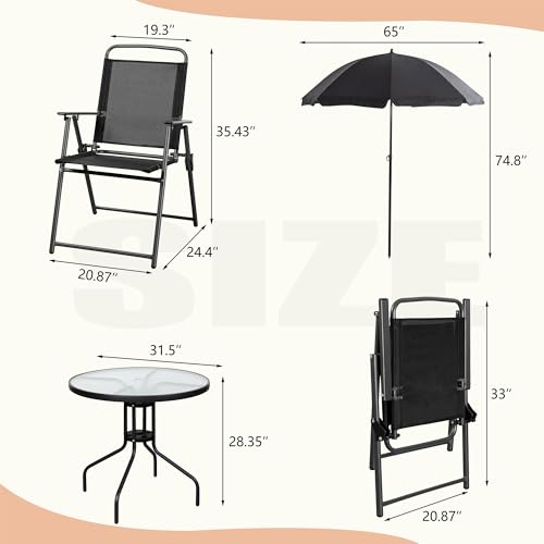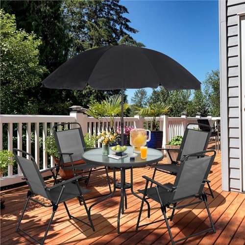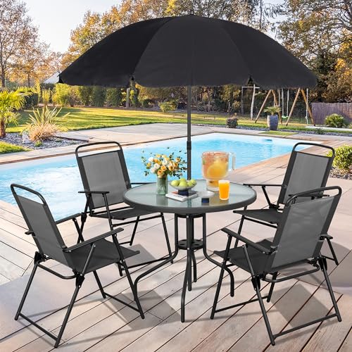 Vongrasig 6 Piece Folding Patio Dining Set,Small Metal Outdoor Garden Patio Table and Chair Set w/Umbrella for Lawn,Deck,Backyard,Black