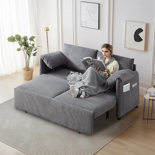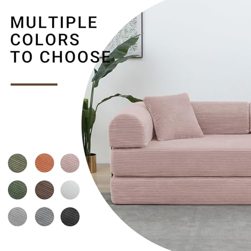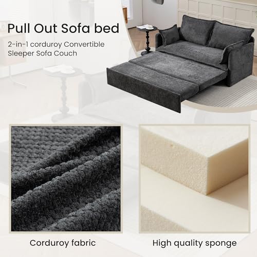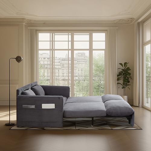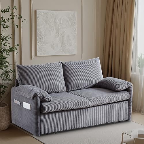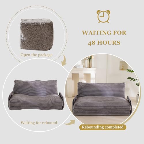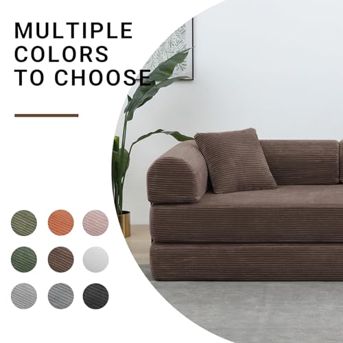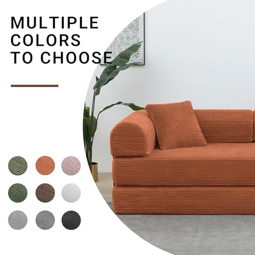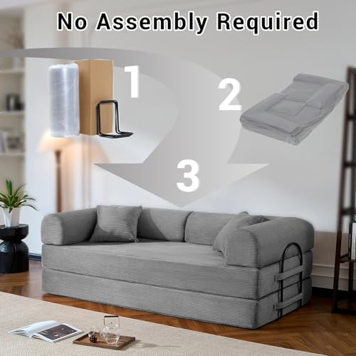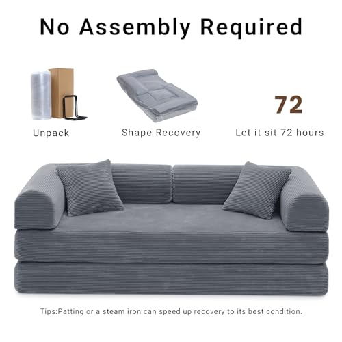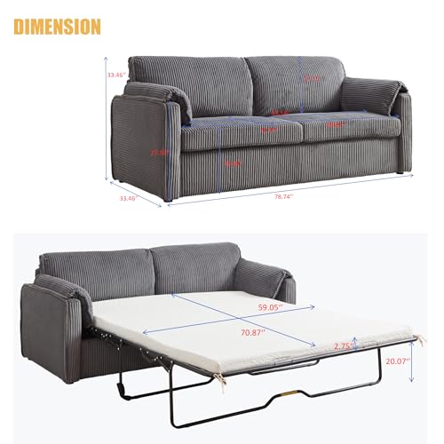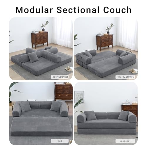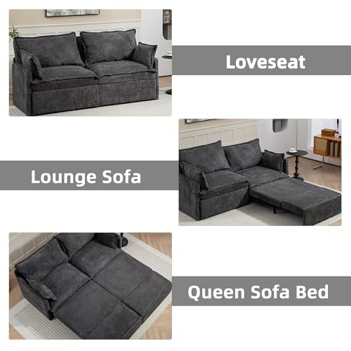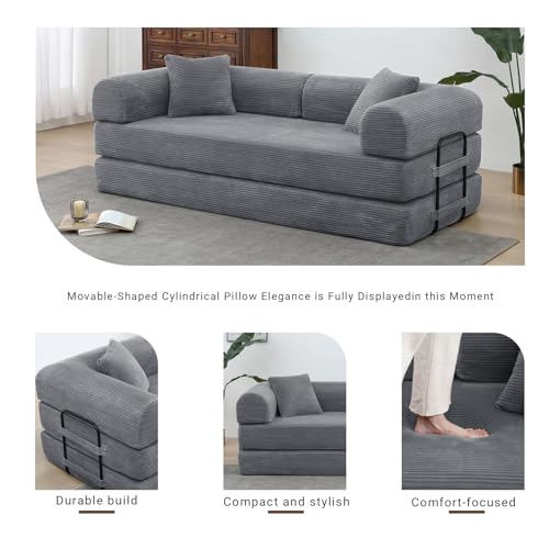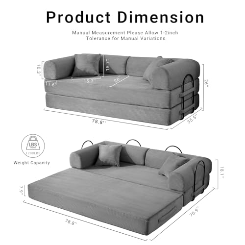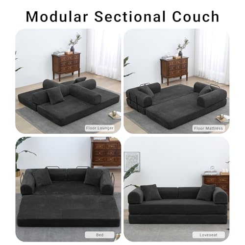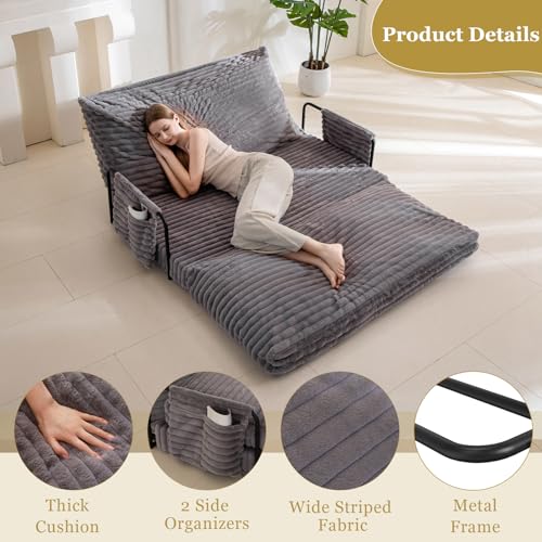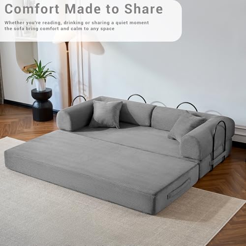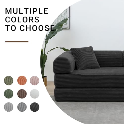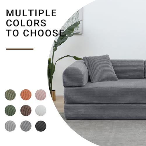 79'' Convertible Sleeper Sofa Bed, Modular Loveseat Small Couches for Small Spaces, Futon Sofa Bed Furniture, Lounge Floor Couch for Living Room, Bedroom, Apartment (Corduroy Fabric, Dark Gray)
