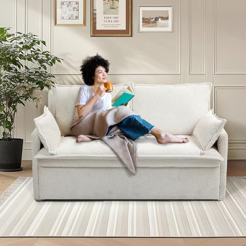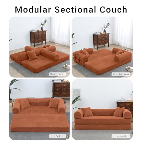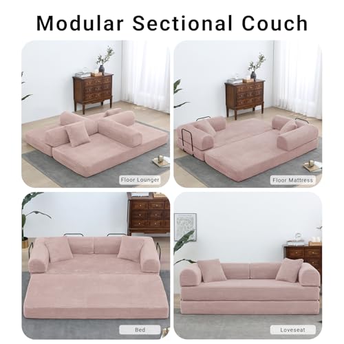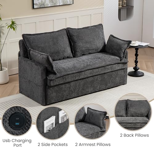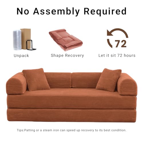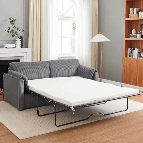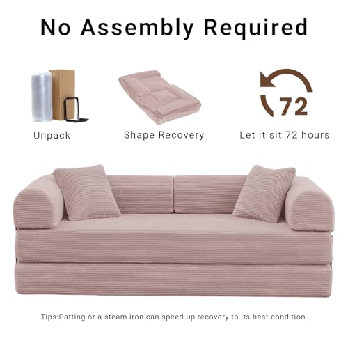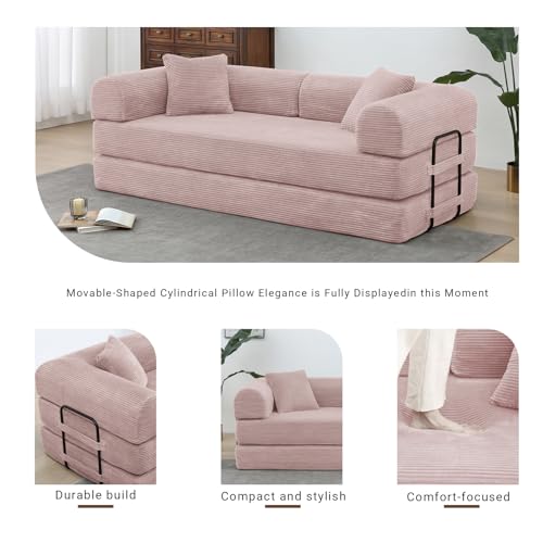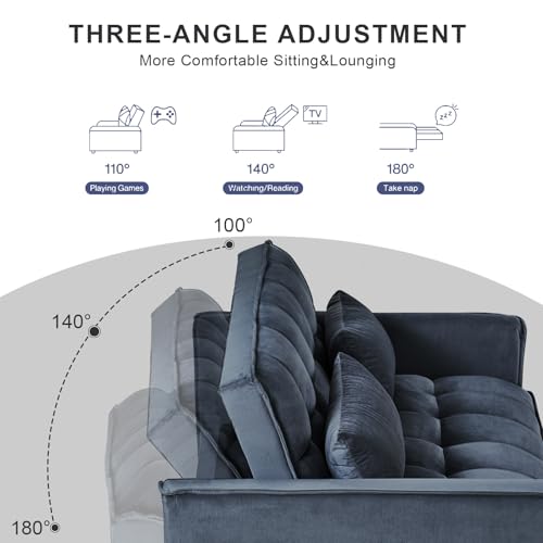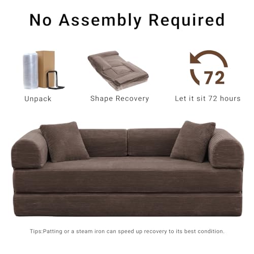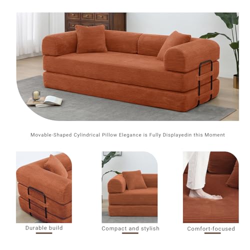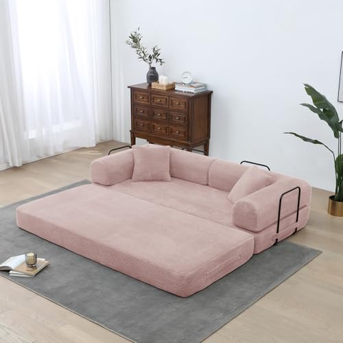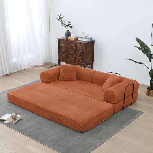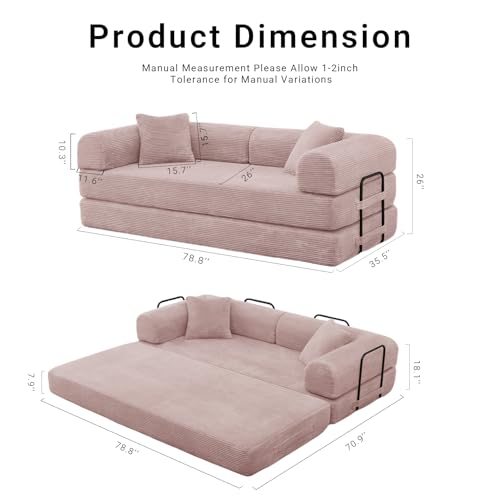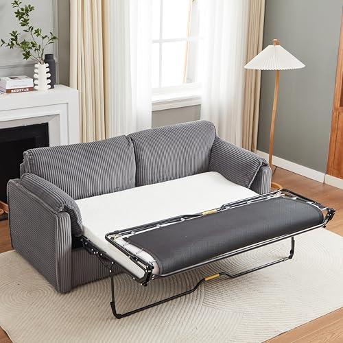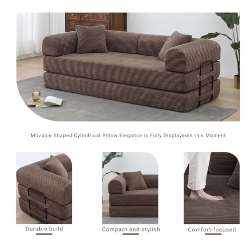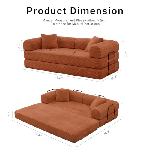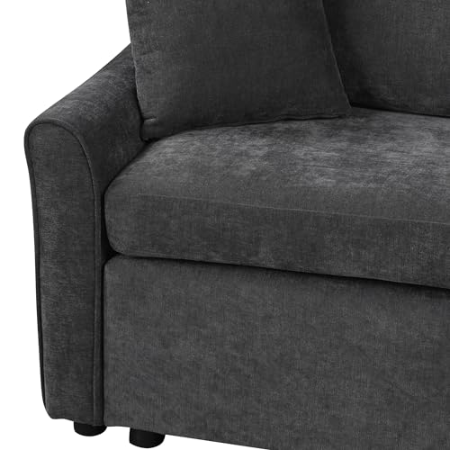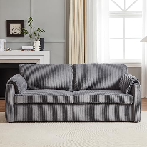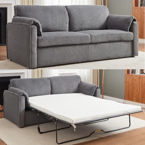 79'' Convertible Sleeper Sofa Bed, Modular Loveseat Small Couches for Small Spaces, Futon Sofa Bed Furniture, Lounge Floor Couch for Living Room, Bedroom, Apartment (Corduroy Fabric, Dark Gray)
