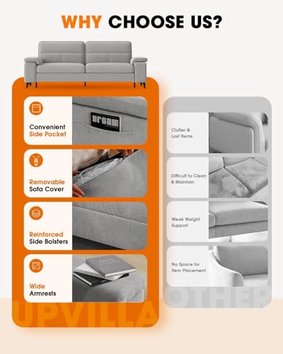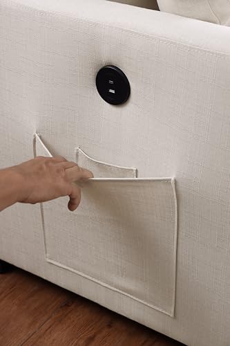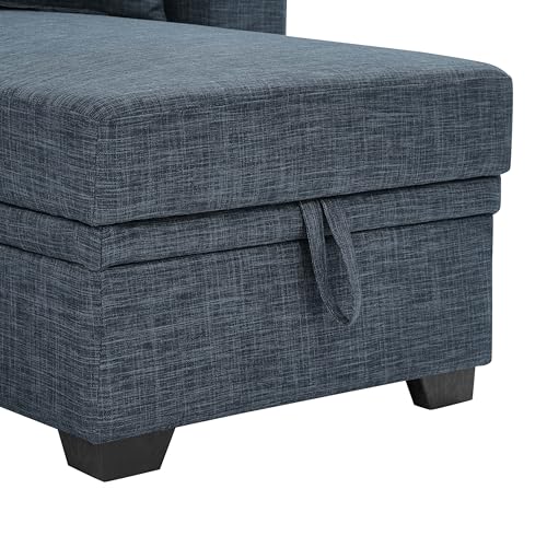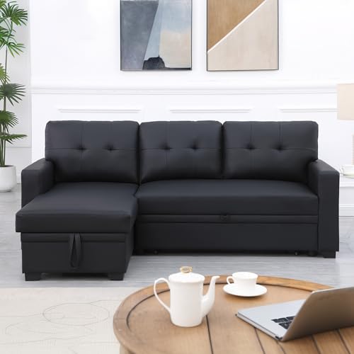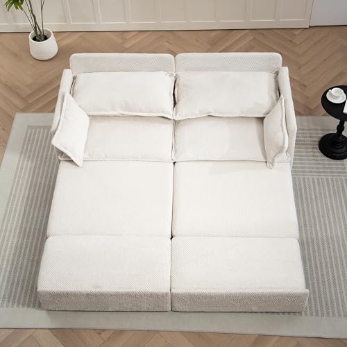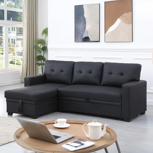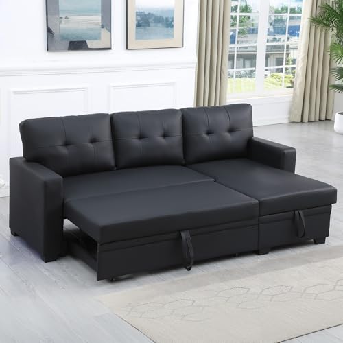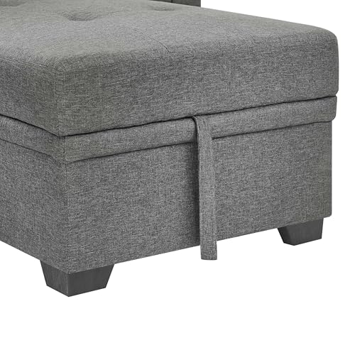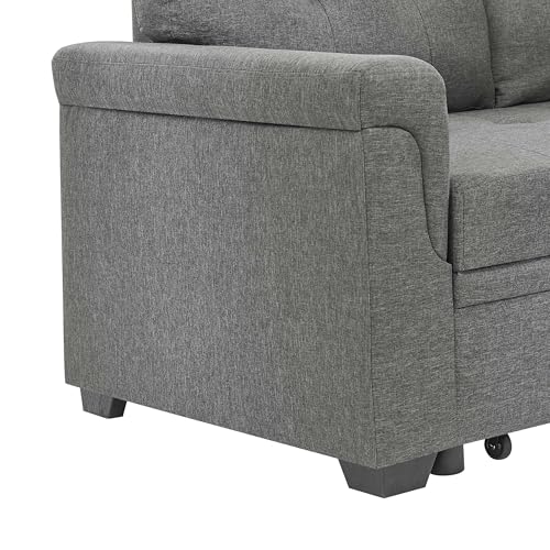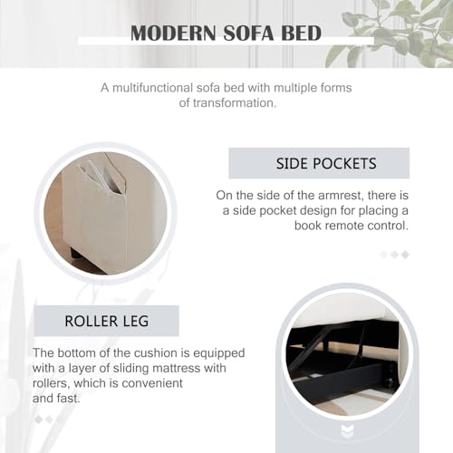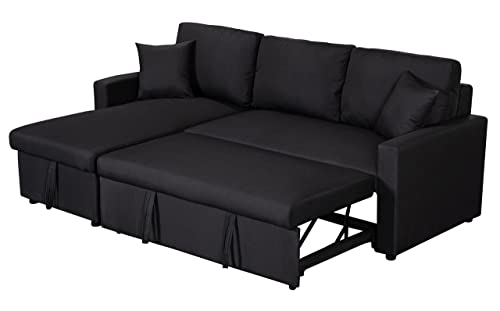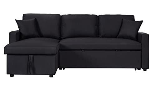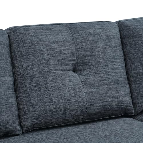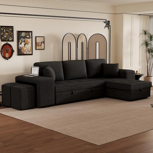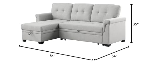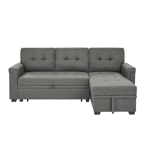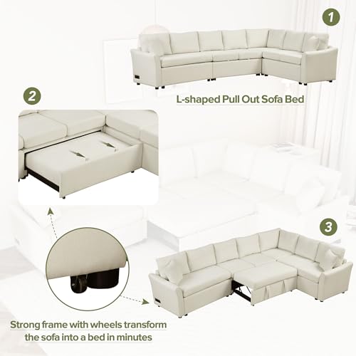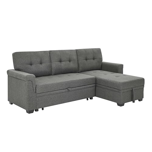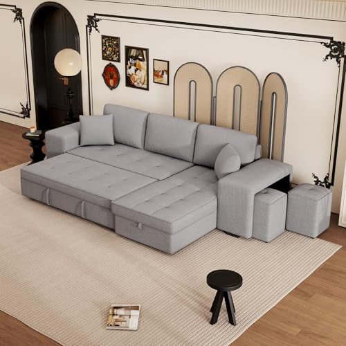 86 INCH L Shaped Convertible Sleeper Sectional Sofa Pull-Out Couch Bed, Tufted Linen Upholstered Reversible Corner Couch Pullout Sofabed w/Detachable Backrest and Storage Chaise for Living Room Office
