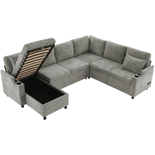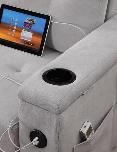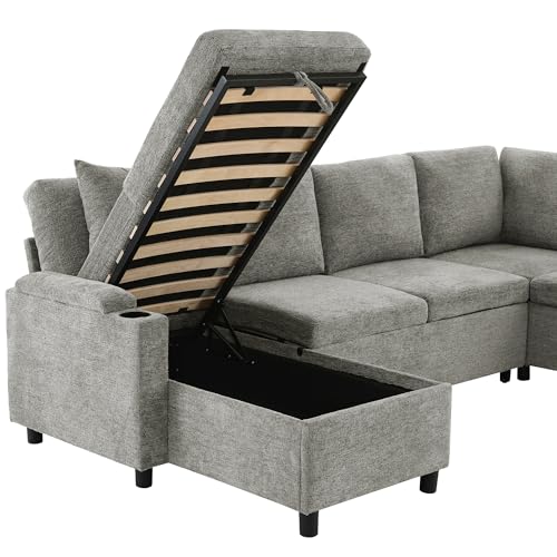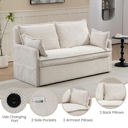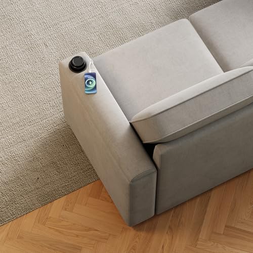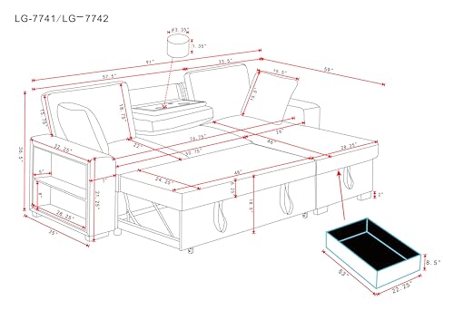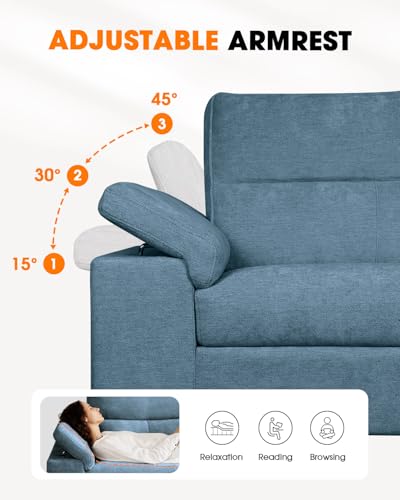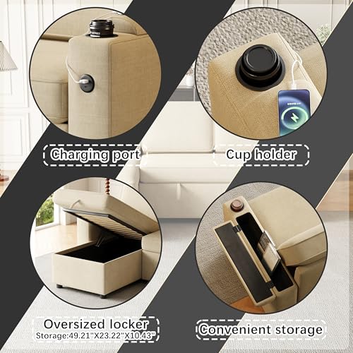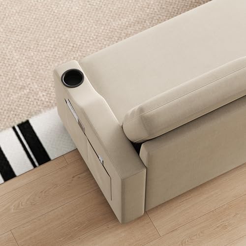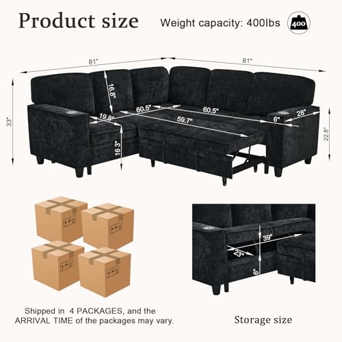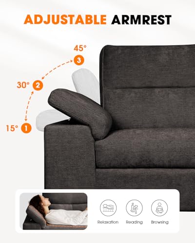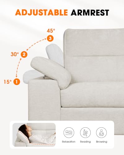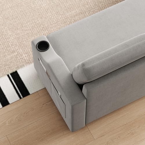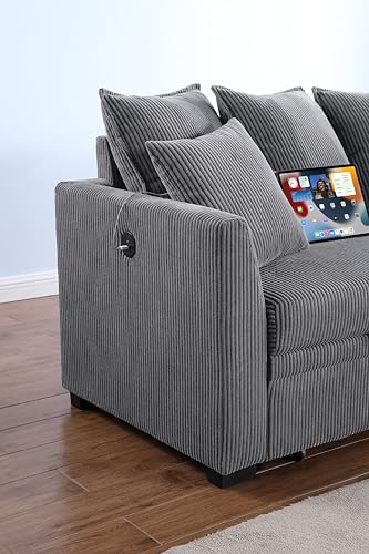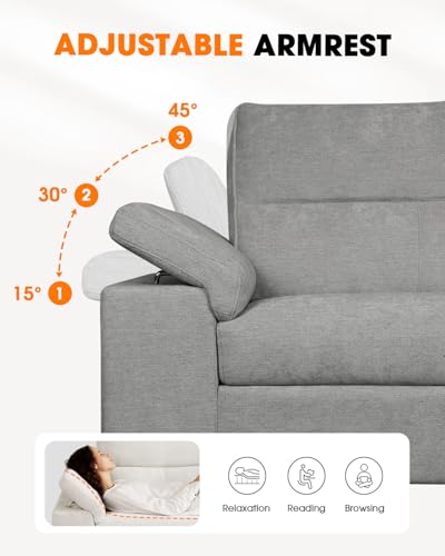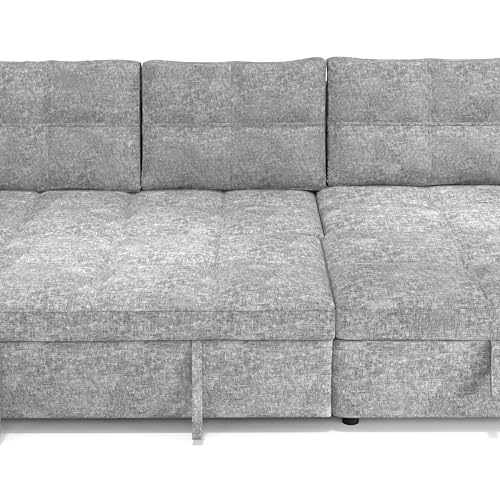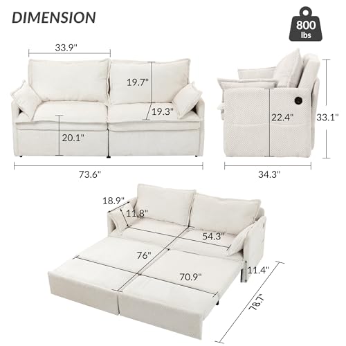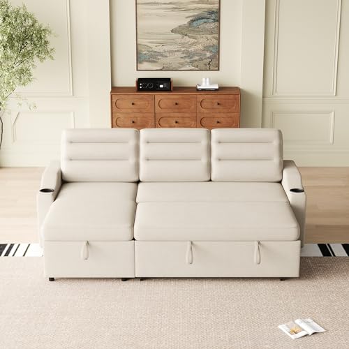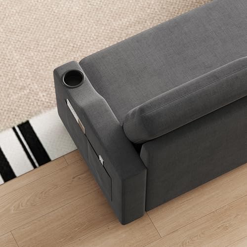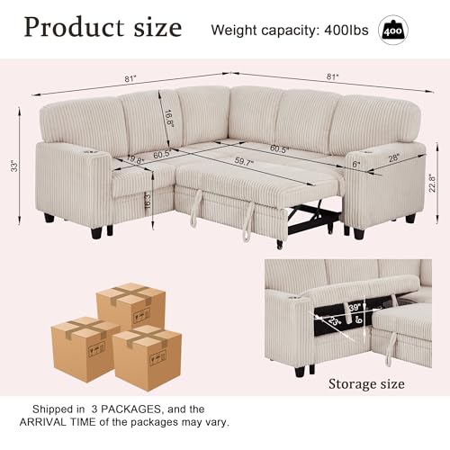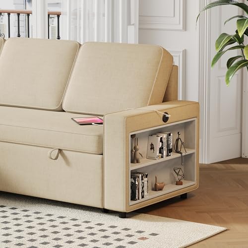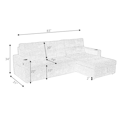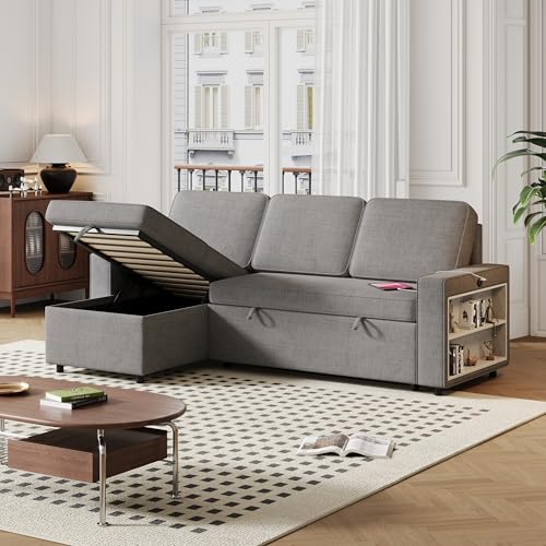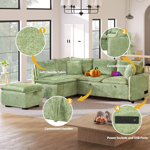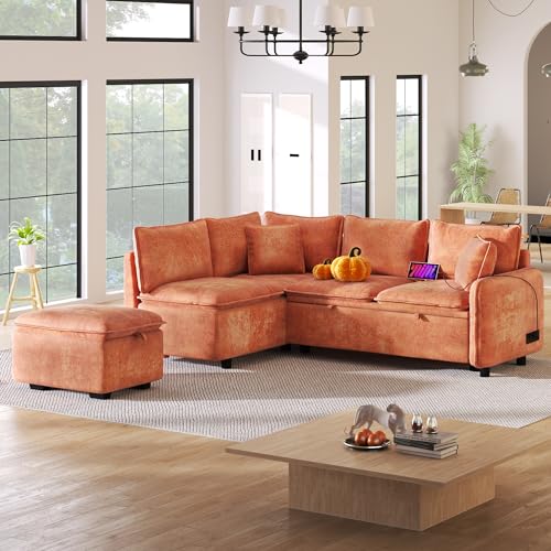 86 INCH Reversible Sleeper Sectional Sofa with Pull Out Couch Bed , Convertible L Shaped Corner Sofa ,Chenille Upholstered Pullout Lounge Sofabed with Chaise ,Cupholders, USB Charging for Living Room