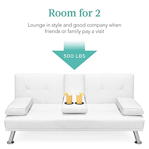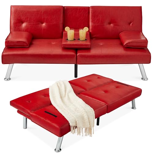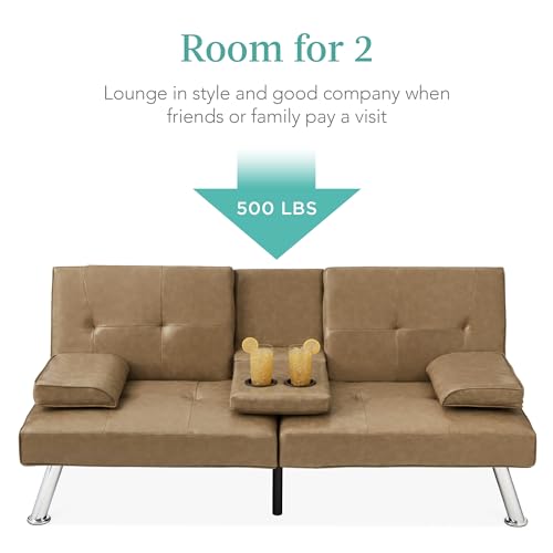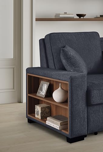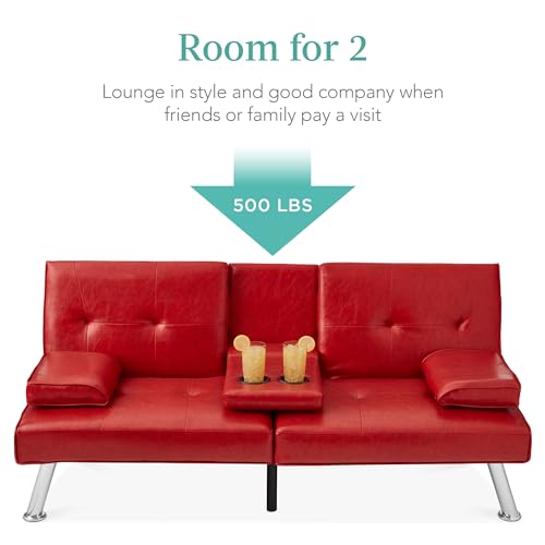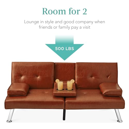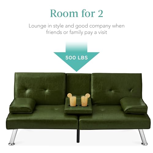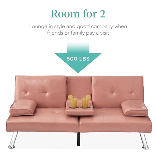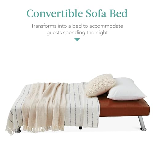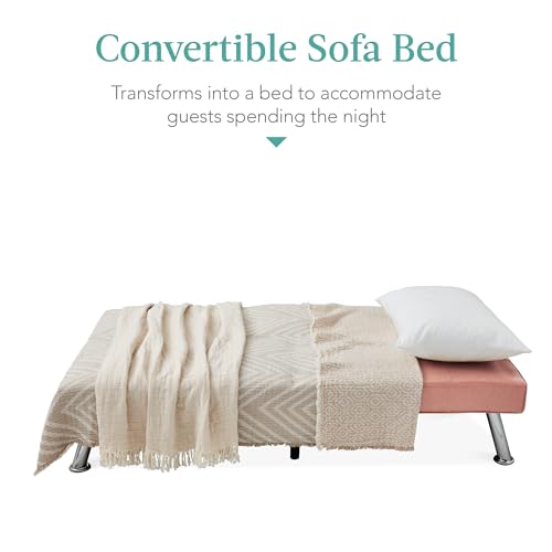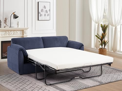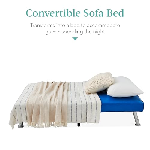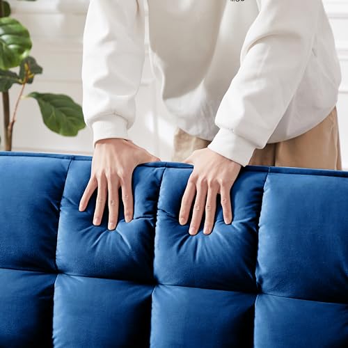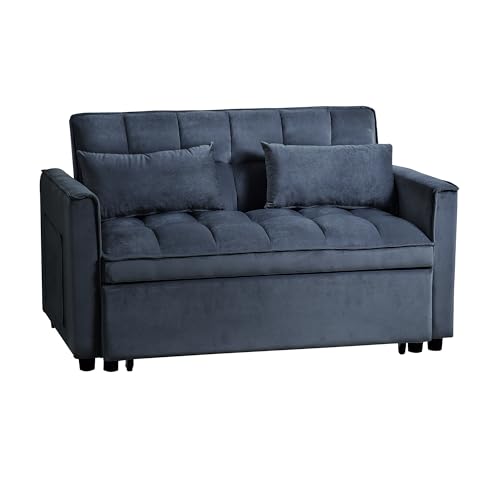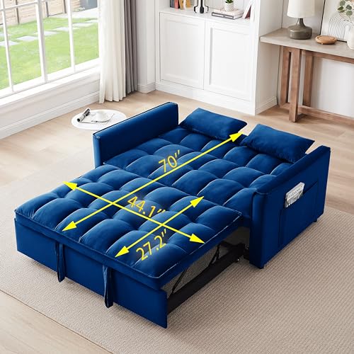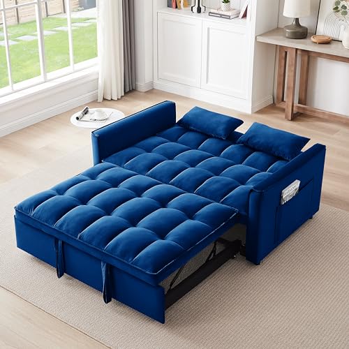 Sofa Bed, Futon Loveseat Sleeper Sofa with Pull Out Bed, Pockets and Pillows, 2 Seater Convertible Small Couch for Living Room Bedroom Apartment (Blue, Velvet)