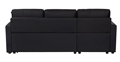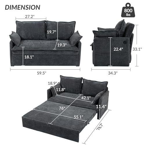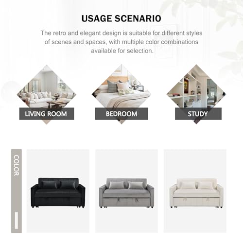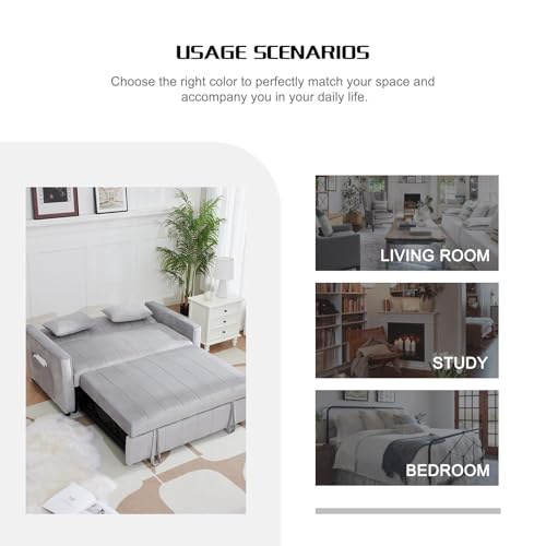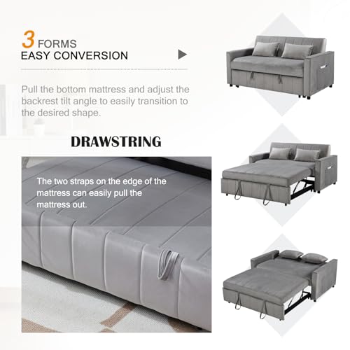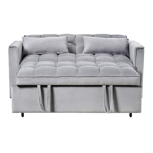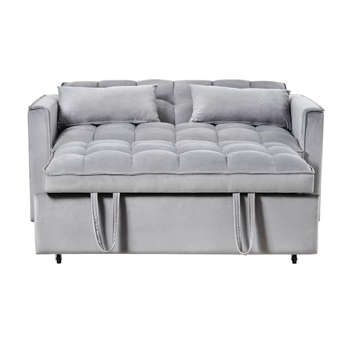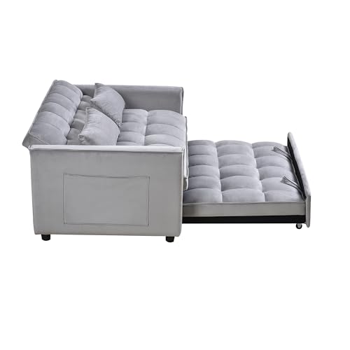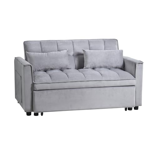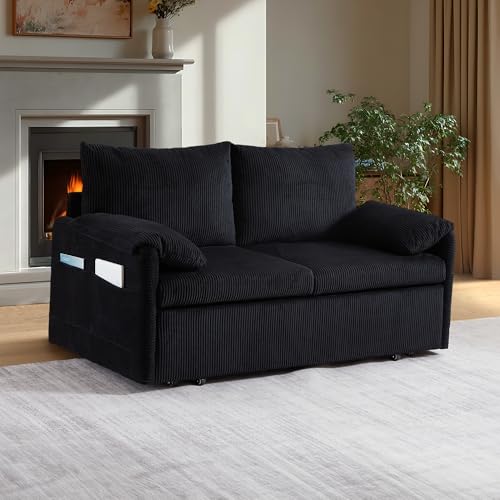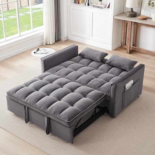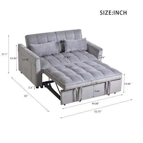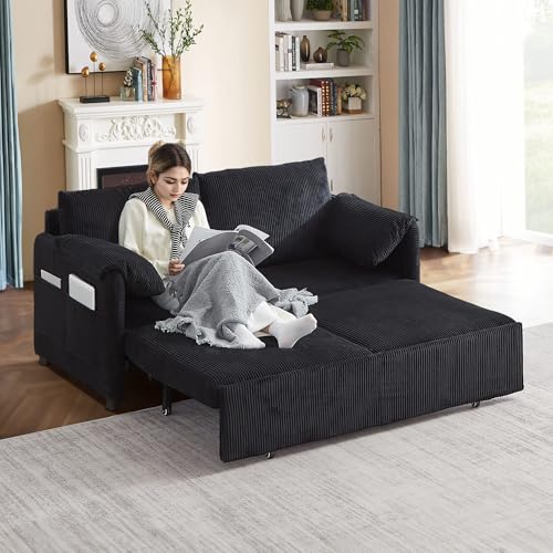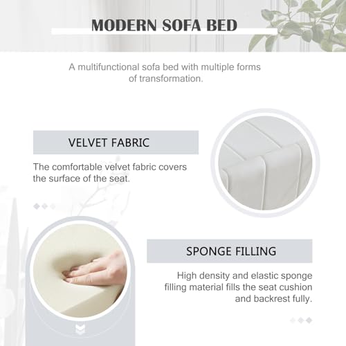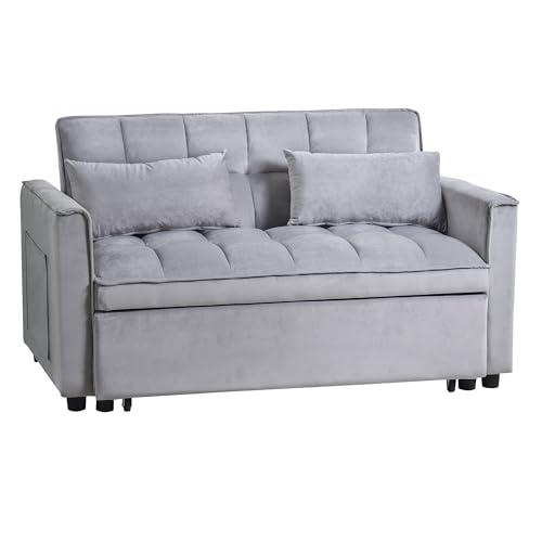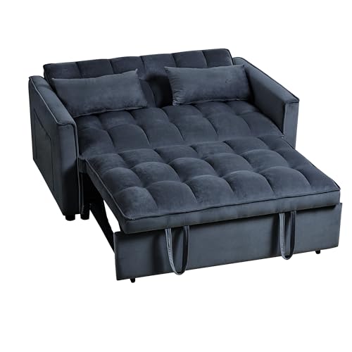 Convertible Sleeper Sofa Bed, 55.51" Modern Velvet 3-in-1 Futon Couch, Pullout Bed with Adjustable Backrest, Storage Pockets and Toss Pillows for Living Room, Bedroom (Black)