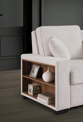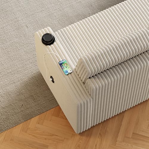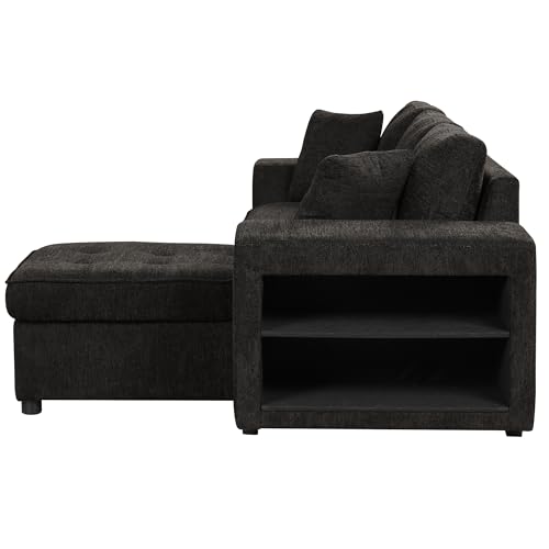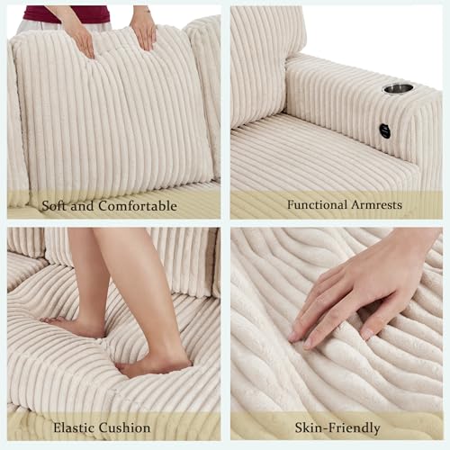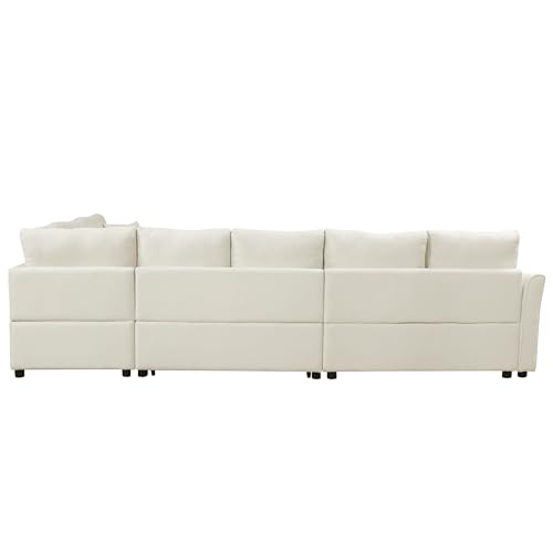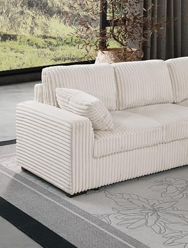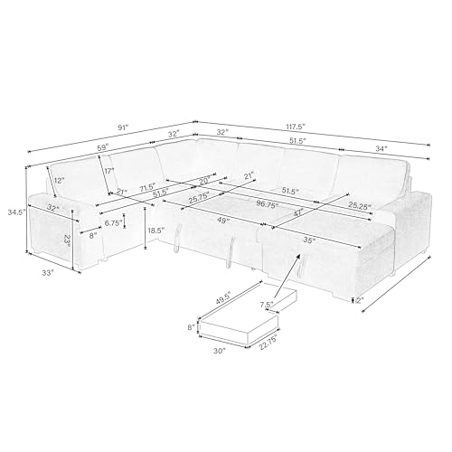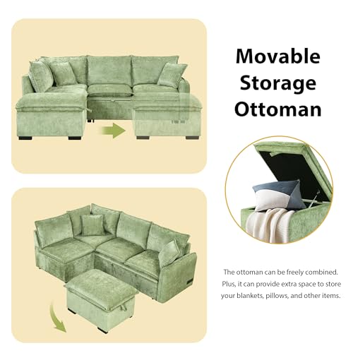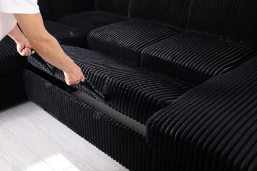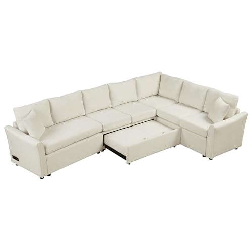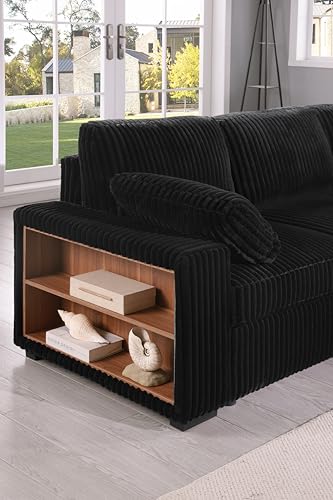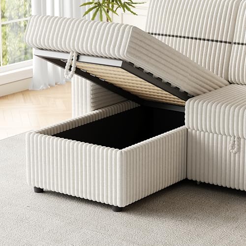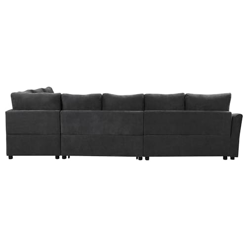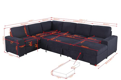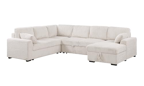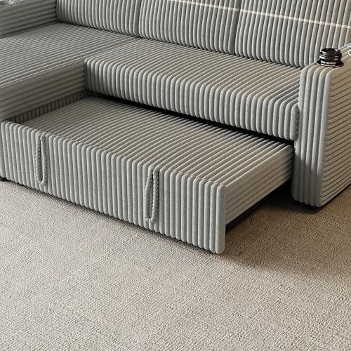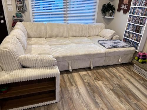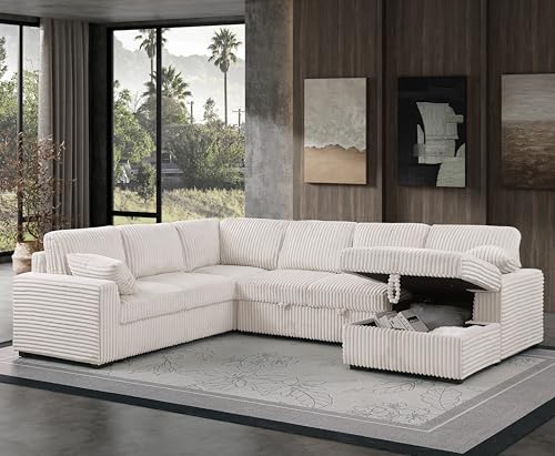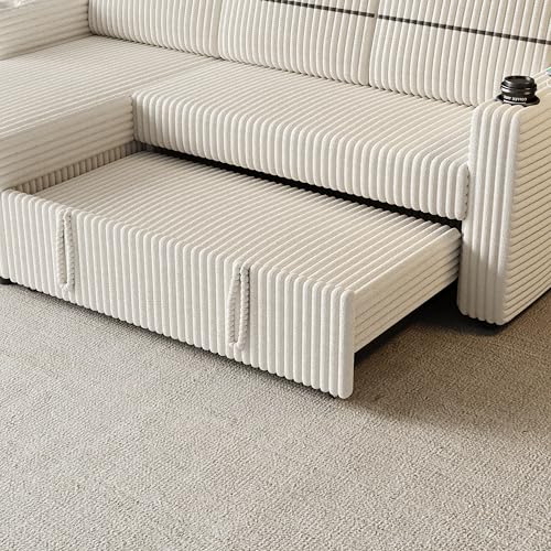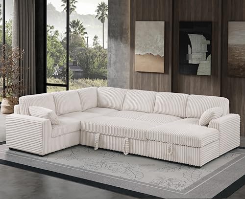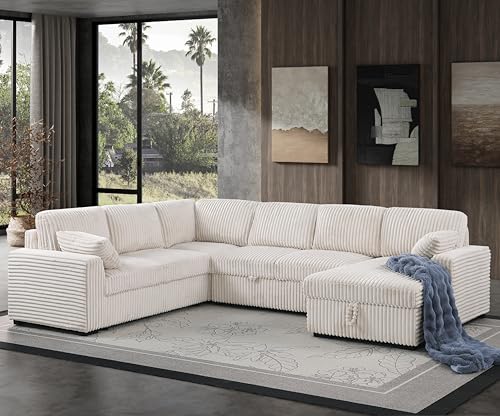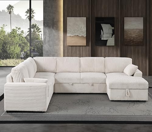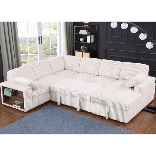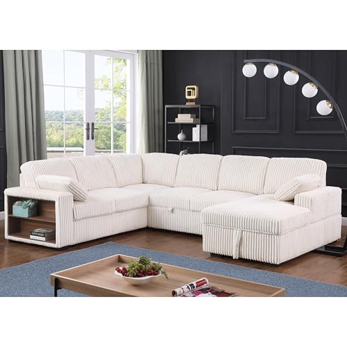 Eafurn 6 Seater Oversized U Shaped Sleeper Sectional Sofa Pull Out Couch Bed, Comfy Corduroy Upholstered Convertible Pullout Lounge Sofa Sofabed w/Storage Chaise, Shelves for Living Room Apartment