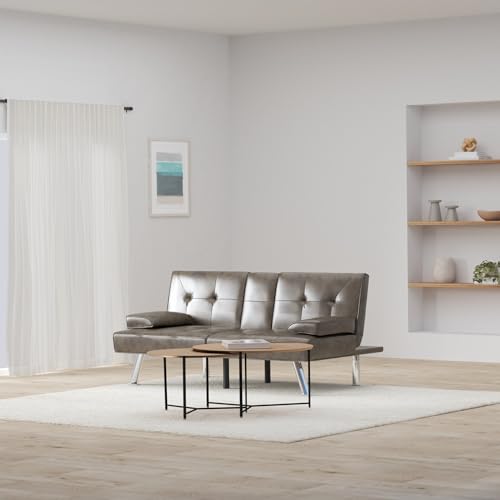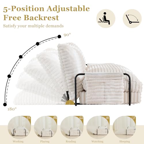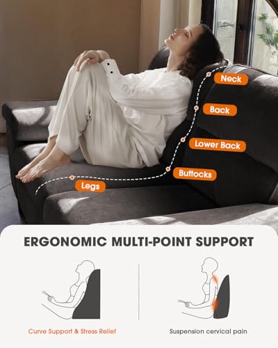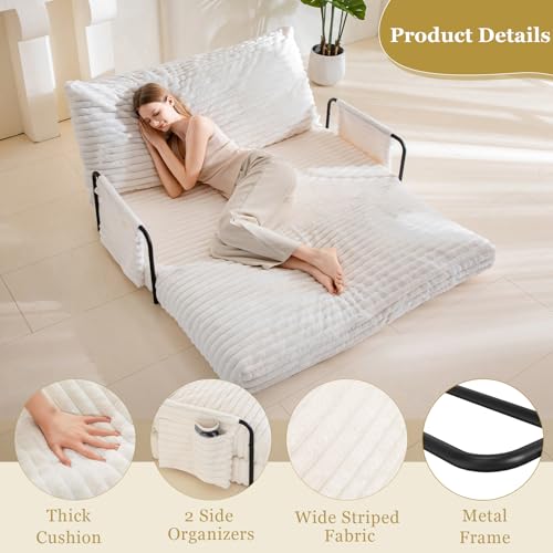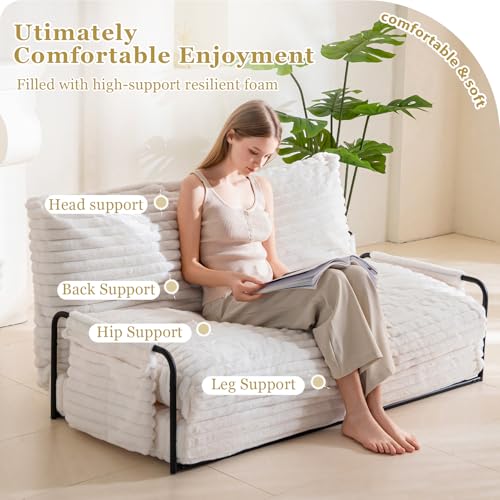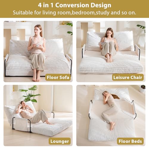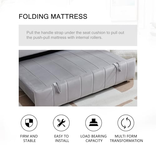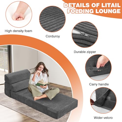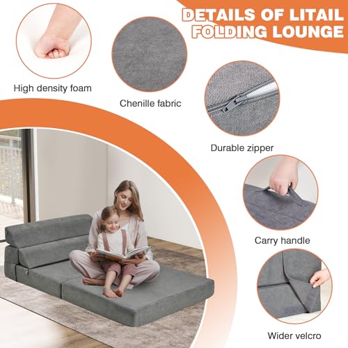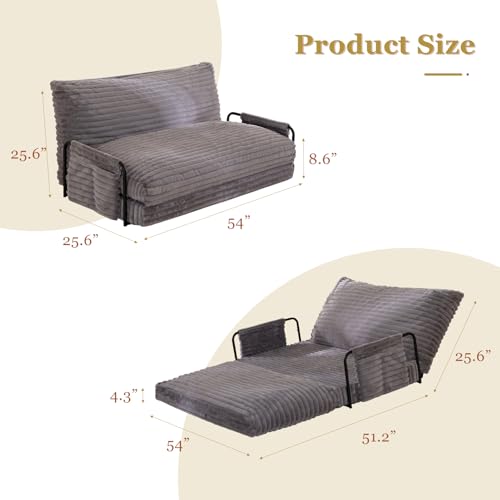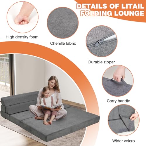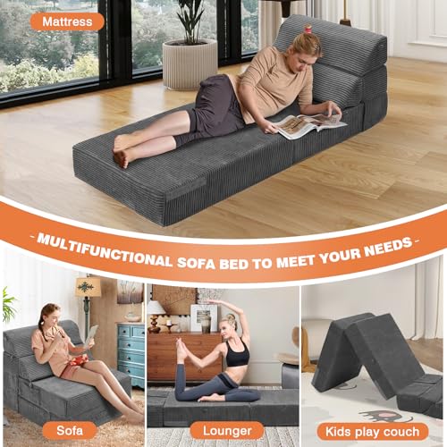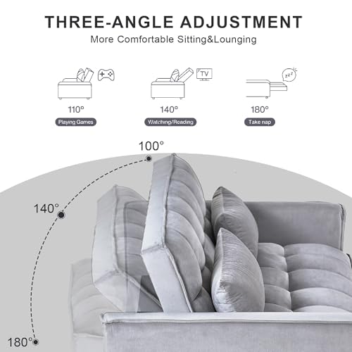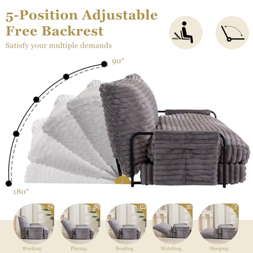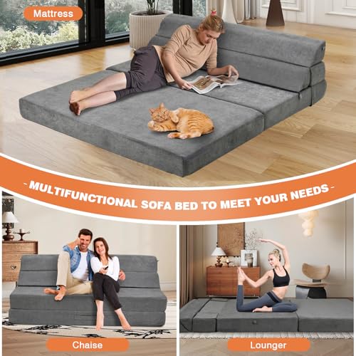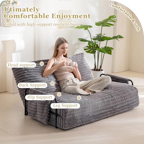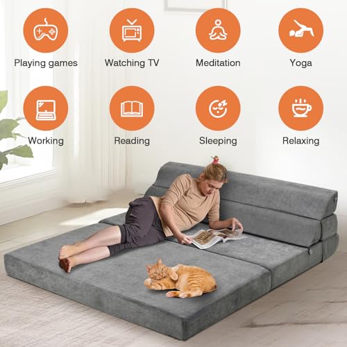 Comfy Folding Sofa Bed - Grey Convertible Sleeper Sofa Fold Out Sleeper Chair Couch for Living Room Bedroom Guest, Foldable Floor Chair Lounger Mattress with Back Support for Travel, Camping