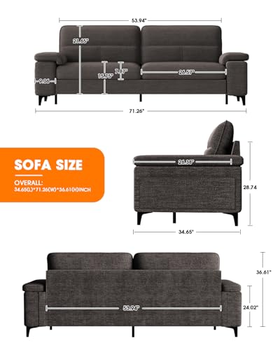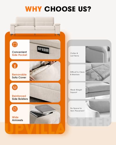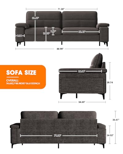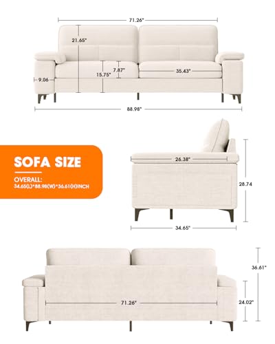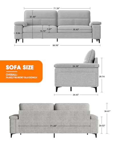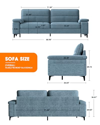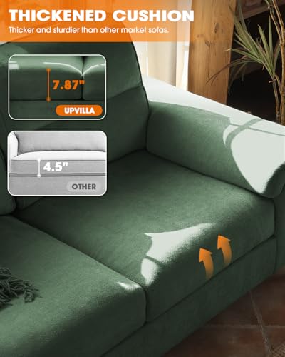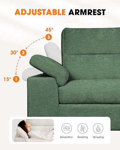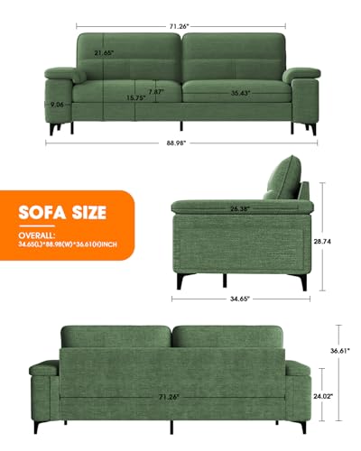 88.97" Modern Sofa Couch for Living Room, Deep Seat Sofas with 8”Cushion, Comfy 2-Seater Chenille Loveseat with Convertible Armrest, Removable Sofa Cover, High Leg (Green)