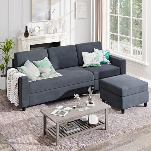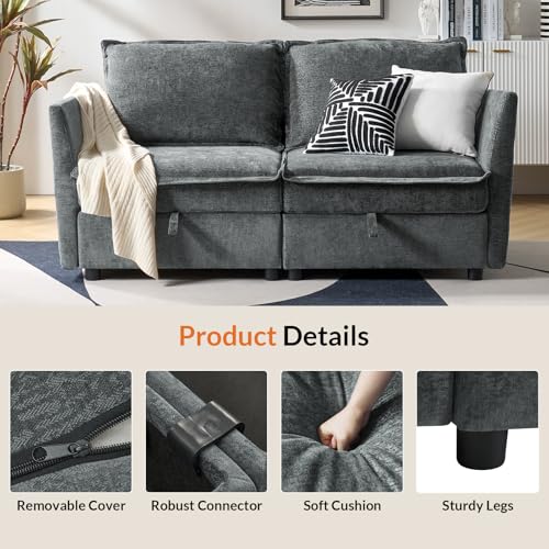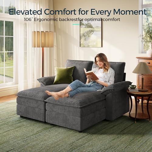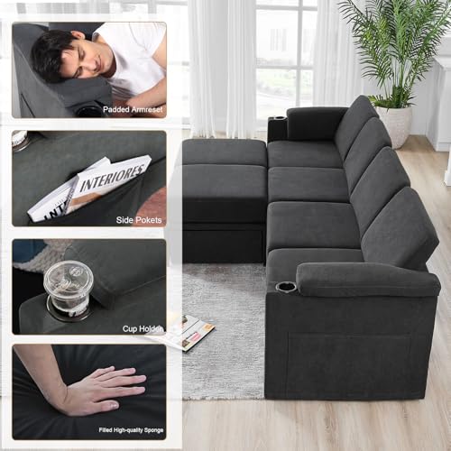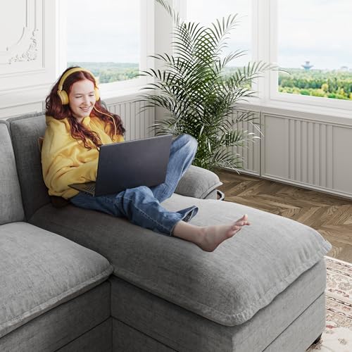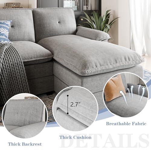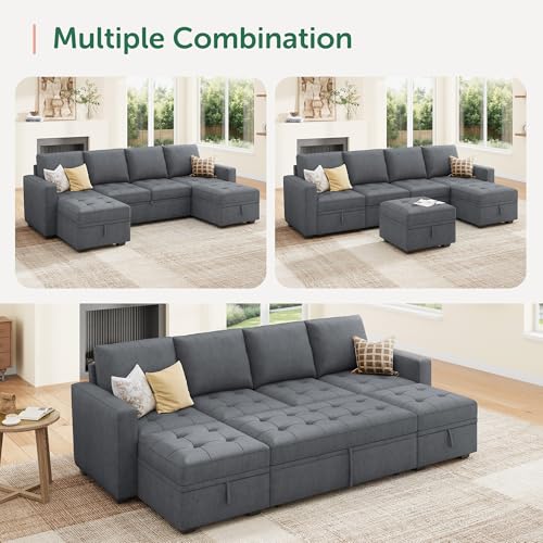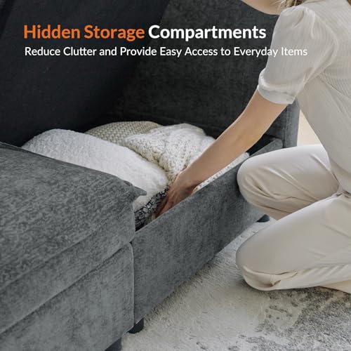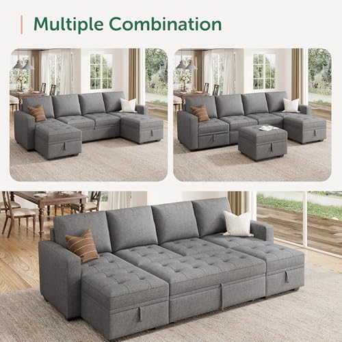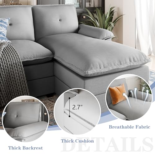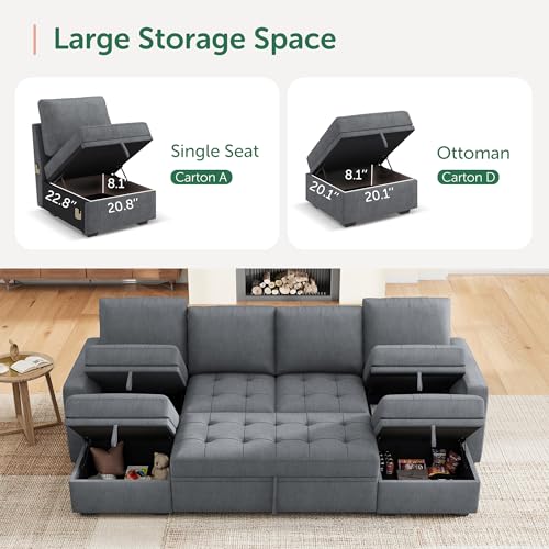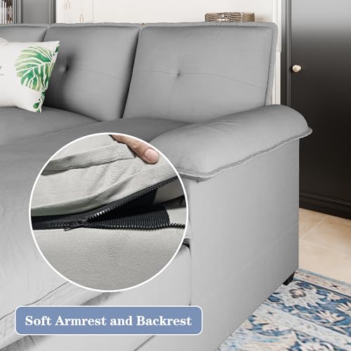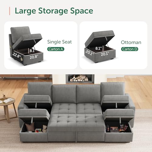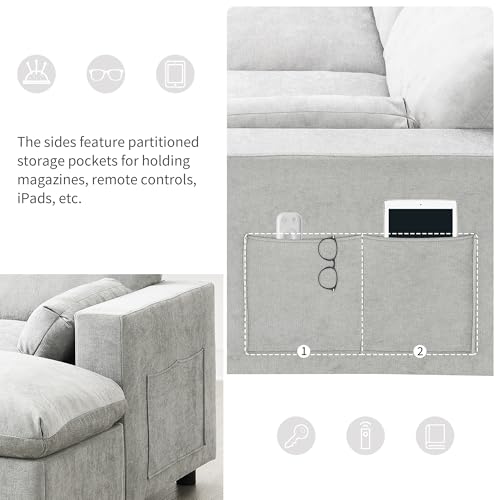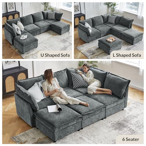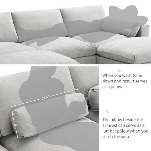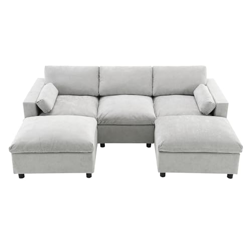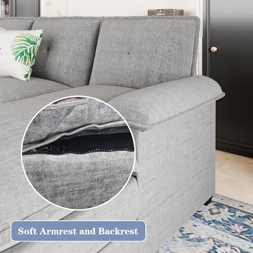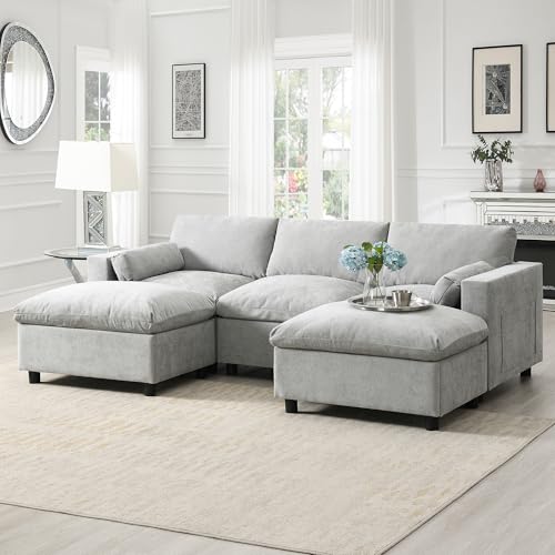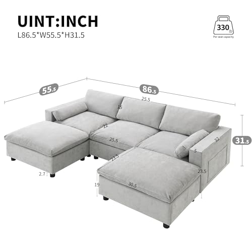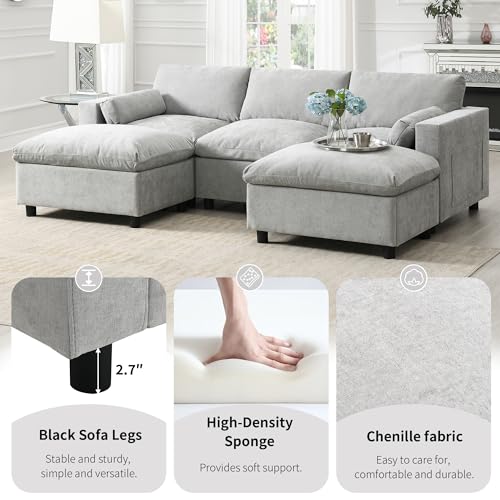 Merax 86.5" Sectional Sofa with Storage Pockets & Removable Ottomans, 5 Seat U Shaped Sleeper Cloud Couch Set, Convertible L-Shaped Chenille Upholstered SofaBed for Living Room and Apartment, Grey