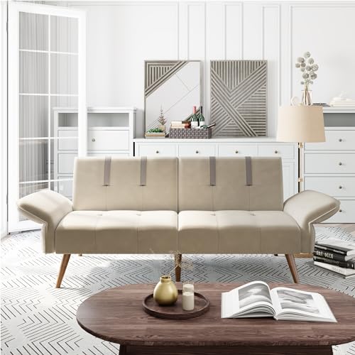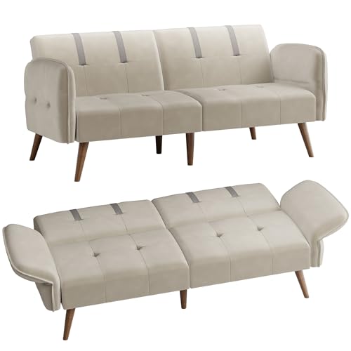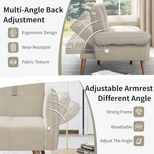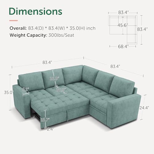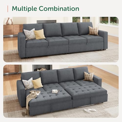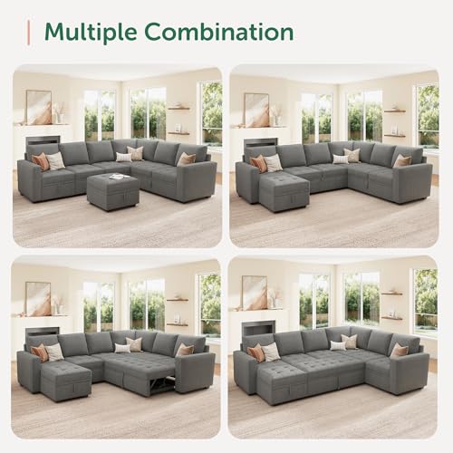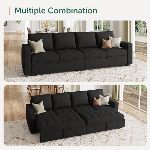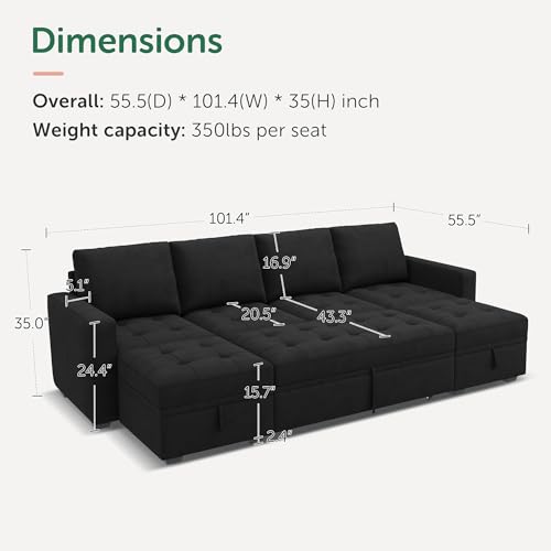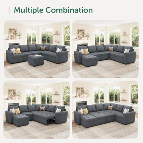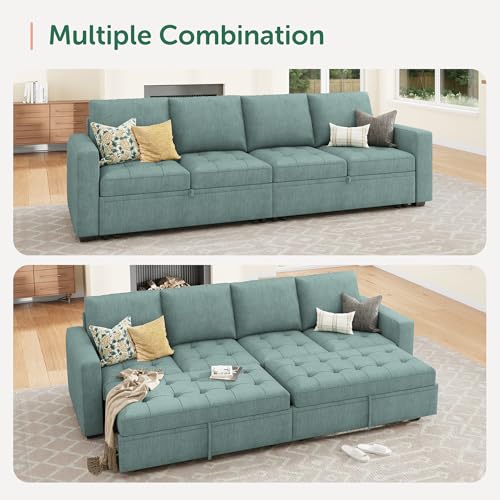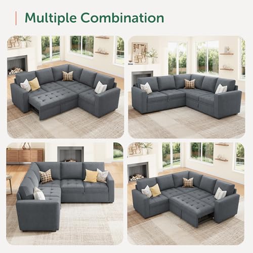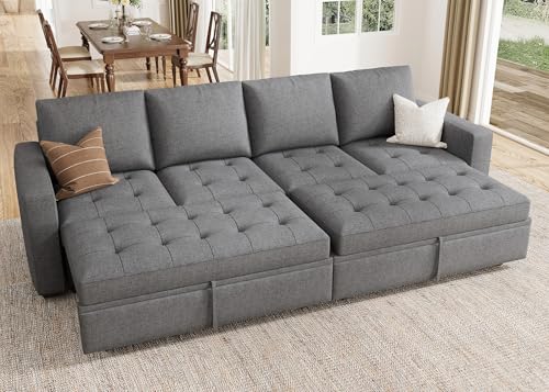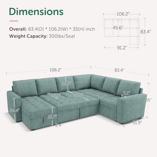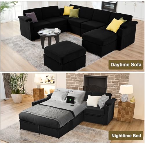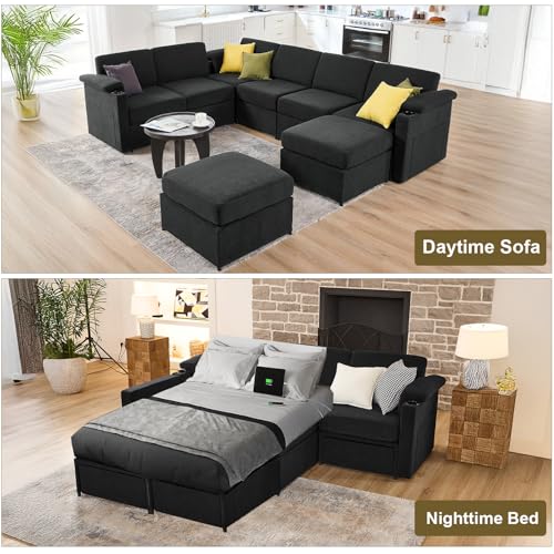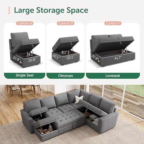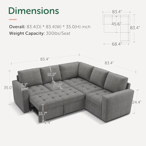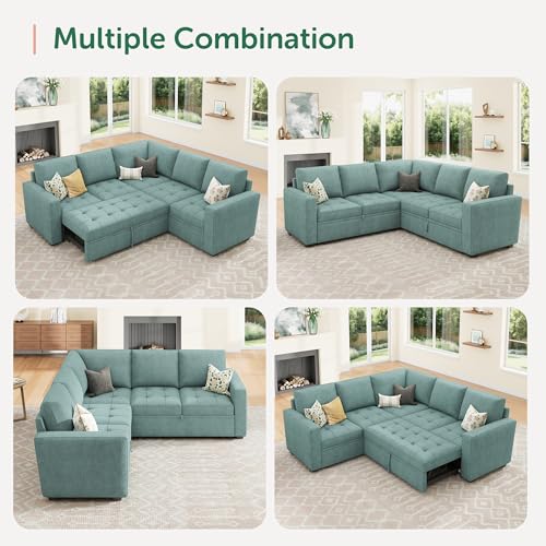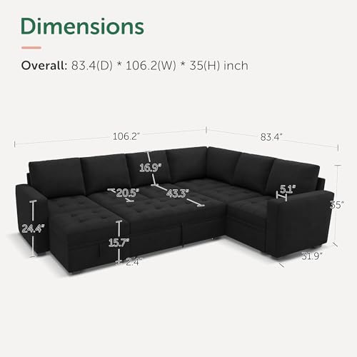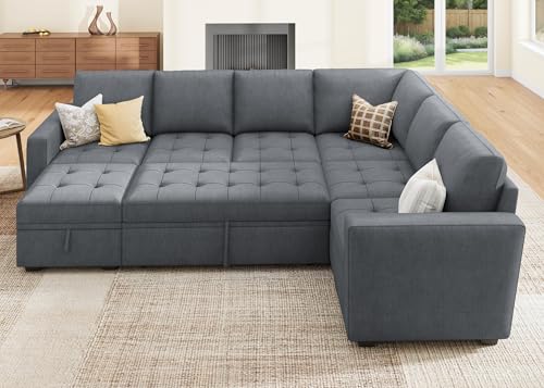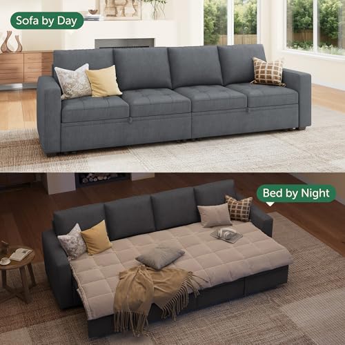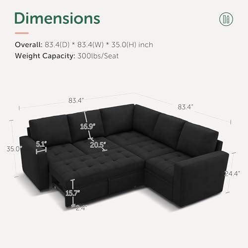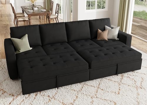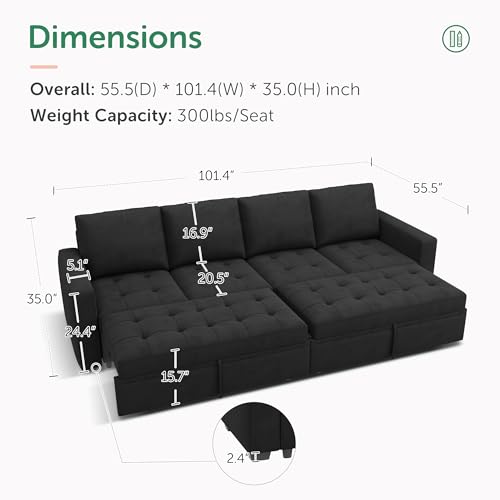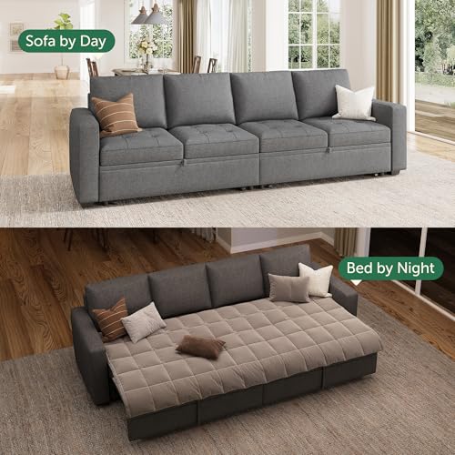 HONBAY Sectional Sleeper Sofa Couch with Pull Out Bed, Convertible L Shaped Couch with Storage, Sleeper Sectional Sofa Bed for Living Room, Beige