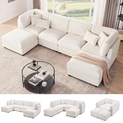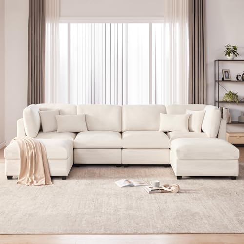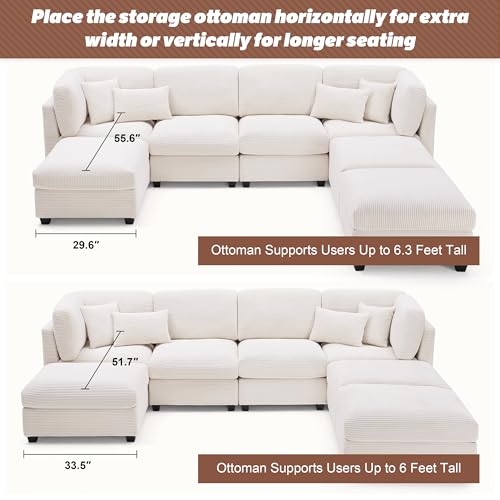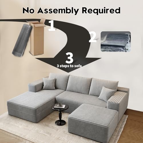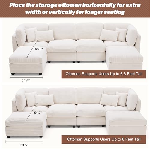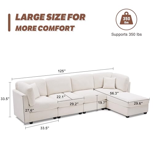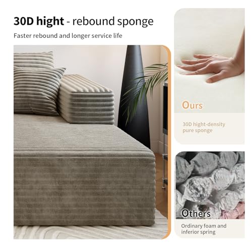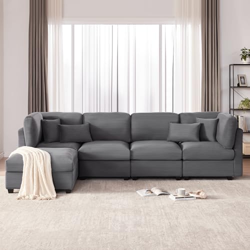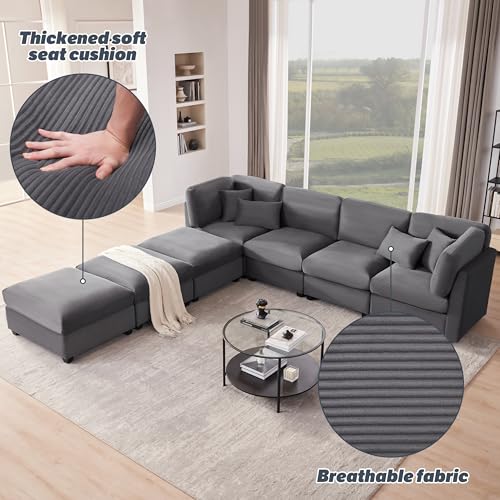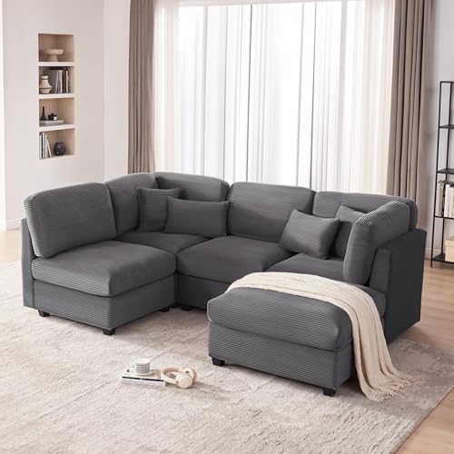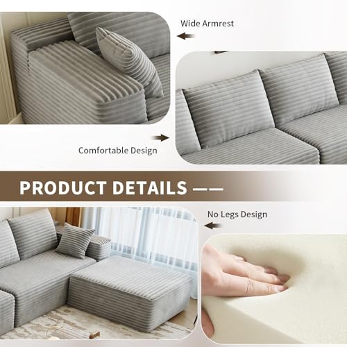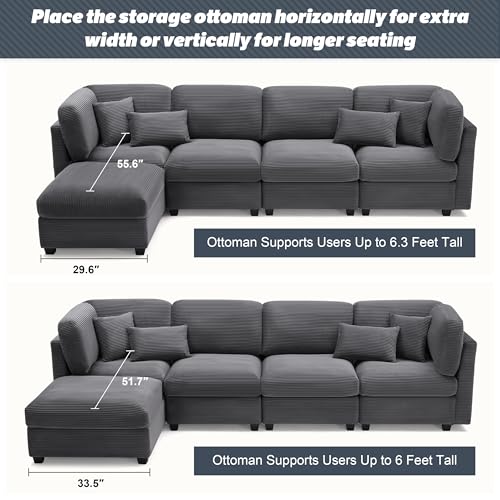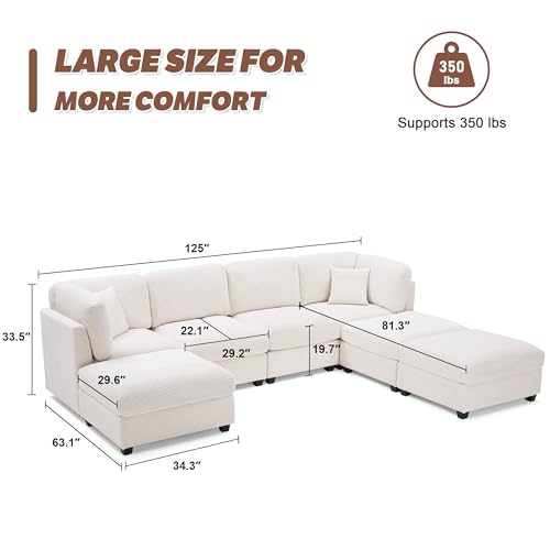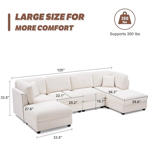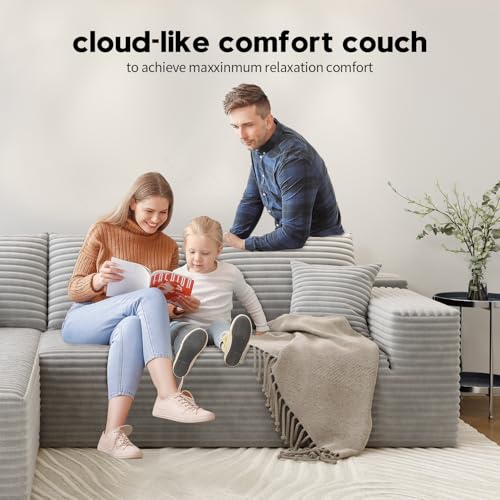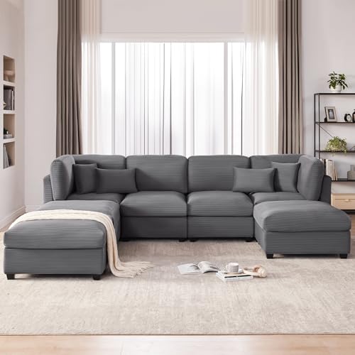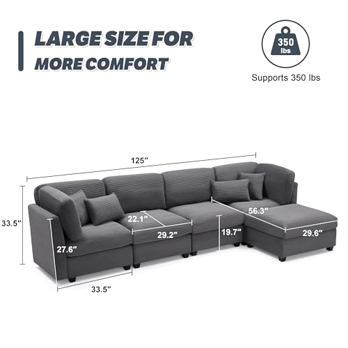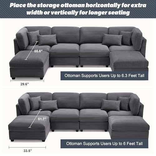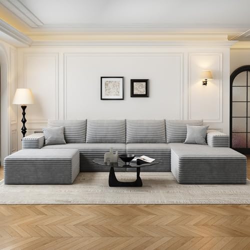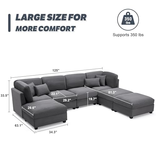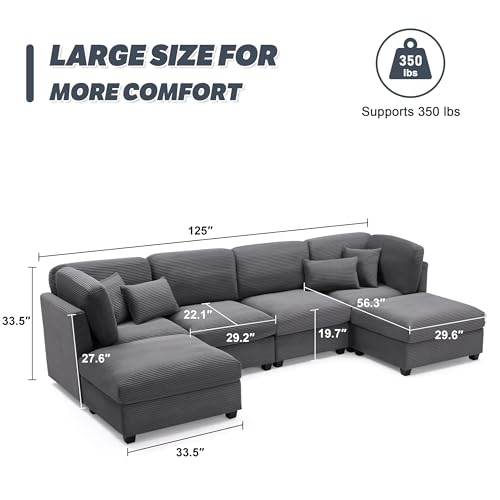 125 Inch Oversized Corduroy Modular Sectional Sofa, U Shaped Modular Couch with Storage, 6 Seat Convertible Corduroy Couch, Comfy Sectional Couches for Living Room with Memory Foam, Grey