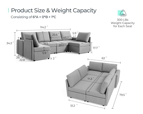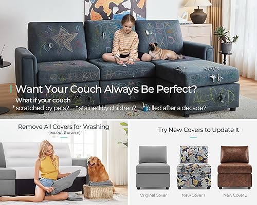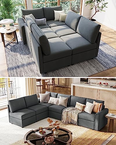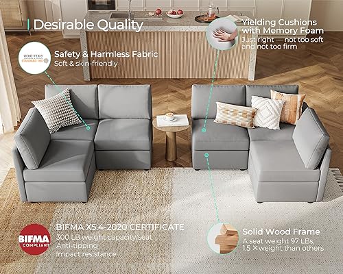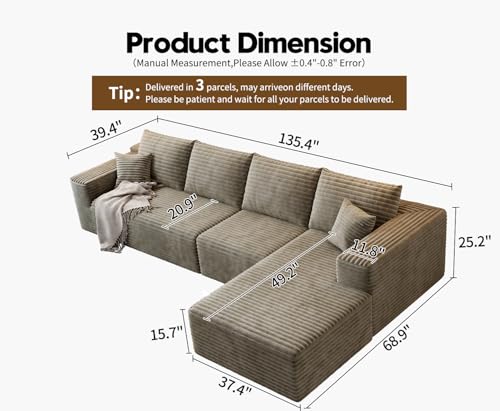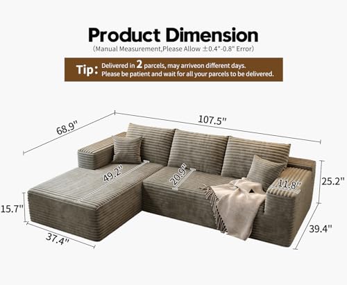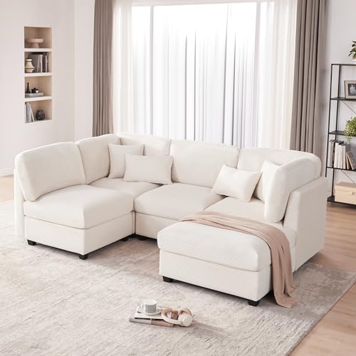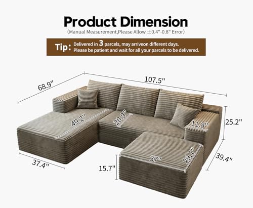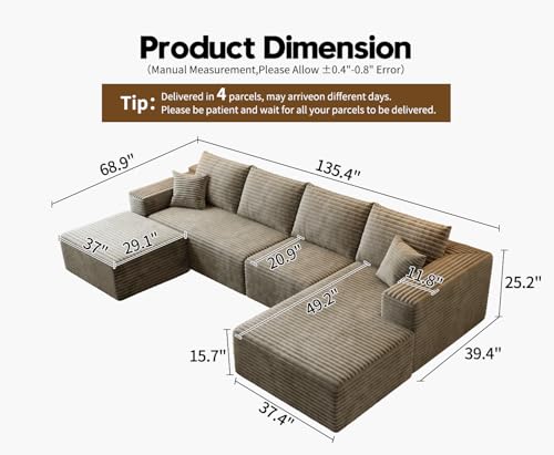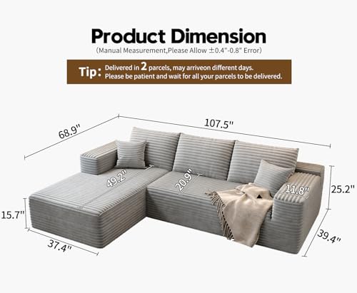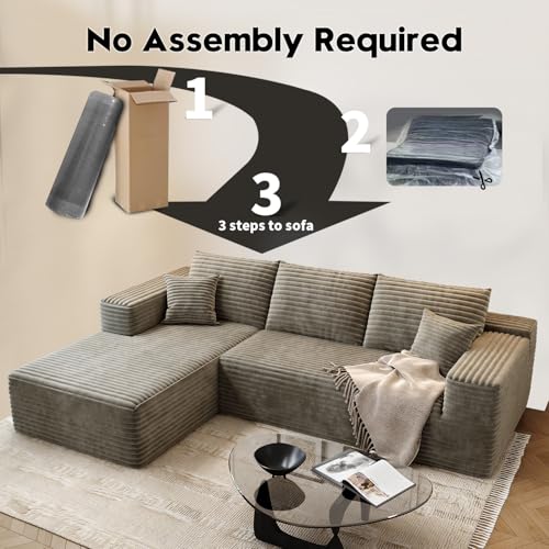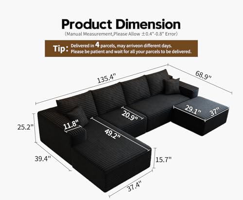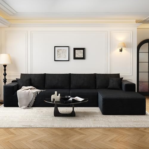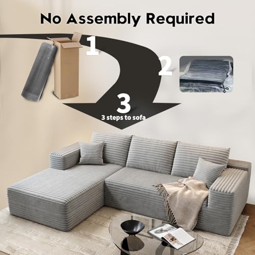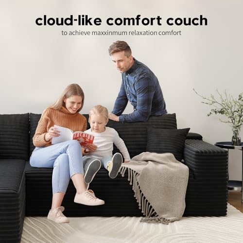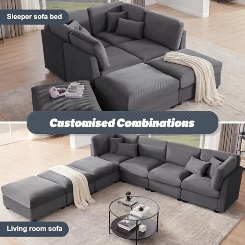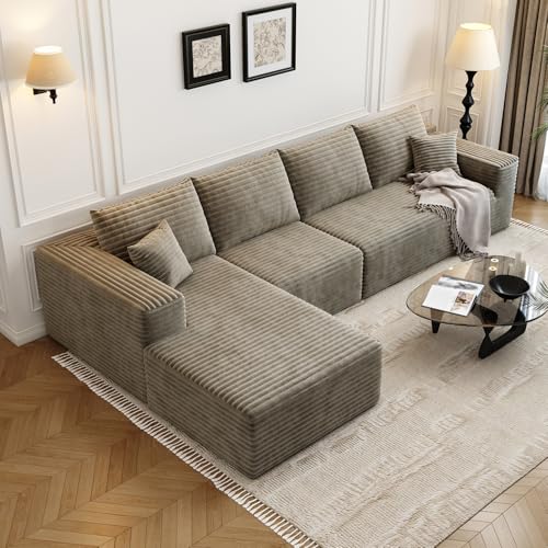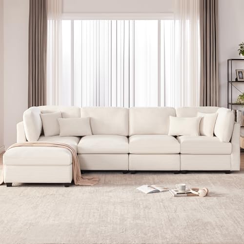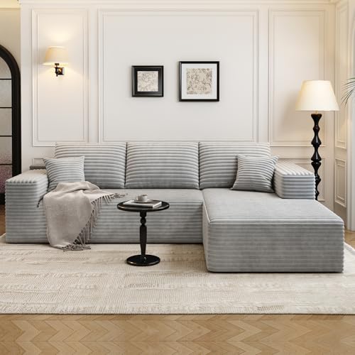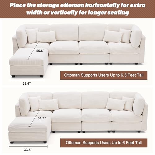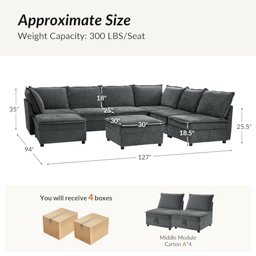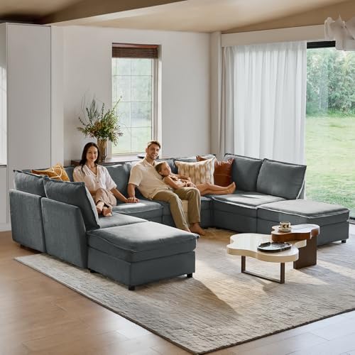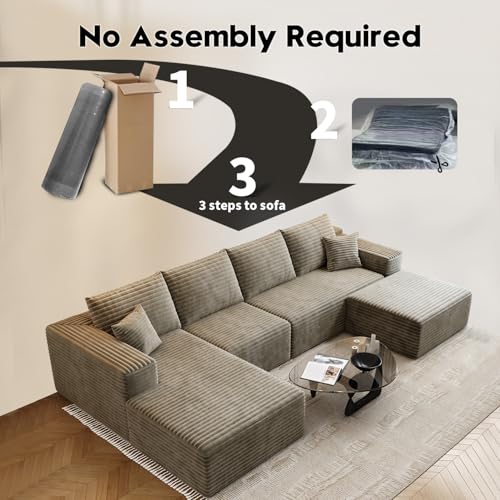125 Inch Oversized Corduroy Modular Sectional Sofa, U Shaped Modular Couch with Storage, 6 Seat Convertible Corduroy Couch, Comfy Sectional Couches for Living Room with Memory Foam, Grey