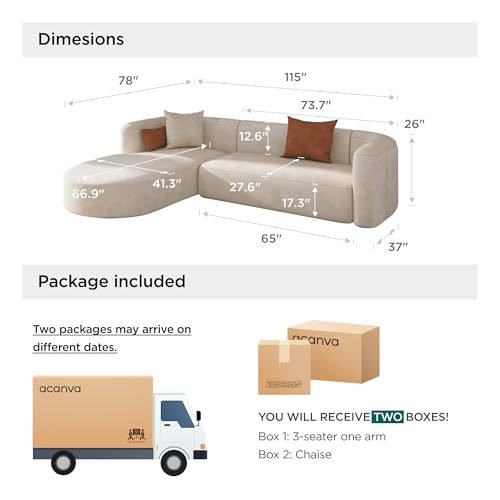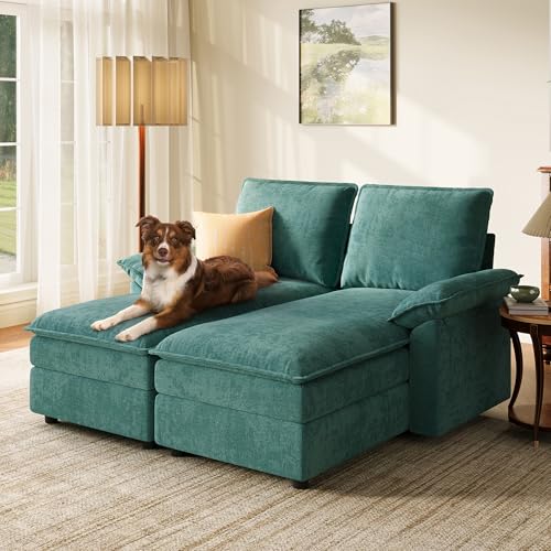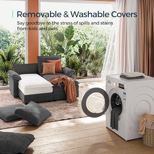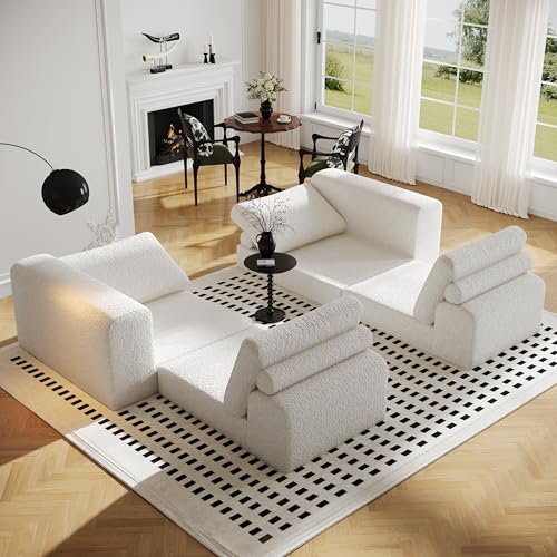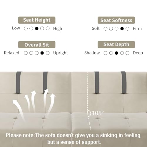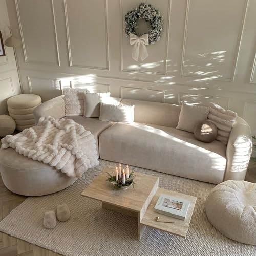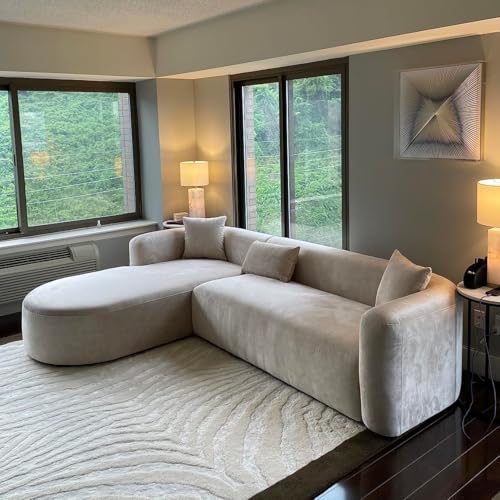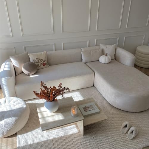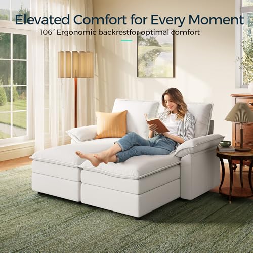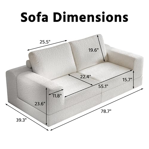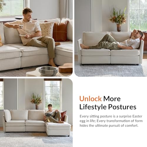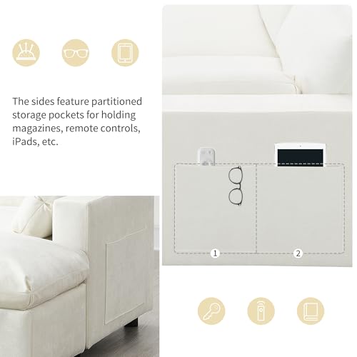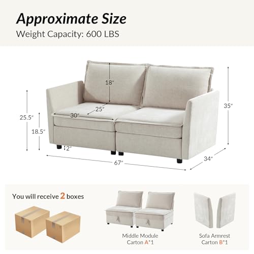 Cloud Modular Sectional Sofa, DIY Combination Modular Couch for Living Room, Unique Knitted Fabric Love Seat Couches with 2 Pillows, 2 Seater Comfy Sectional Couch with No Assembly (Beige)