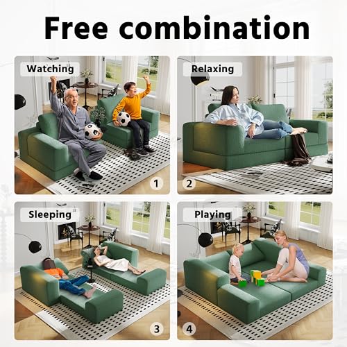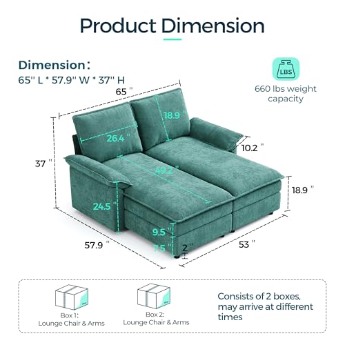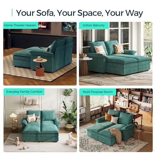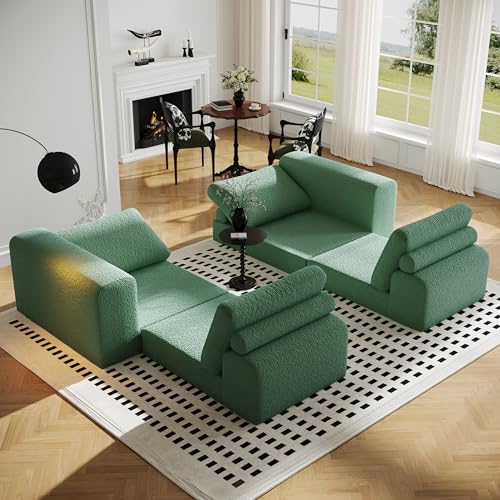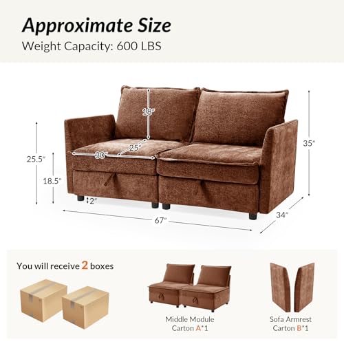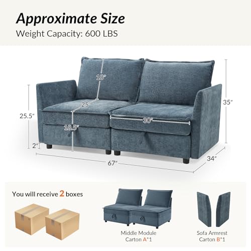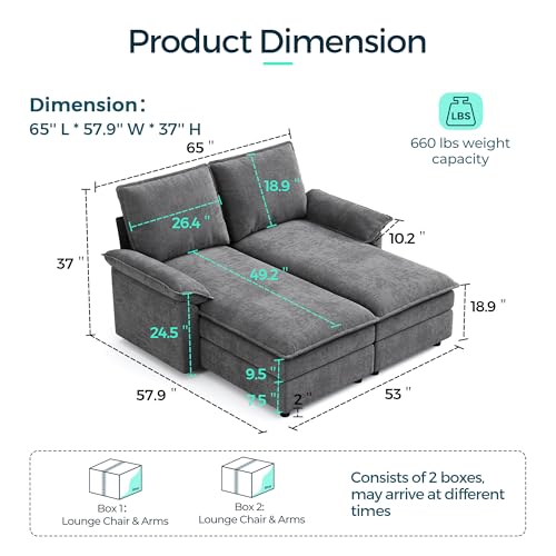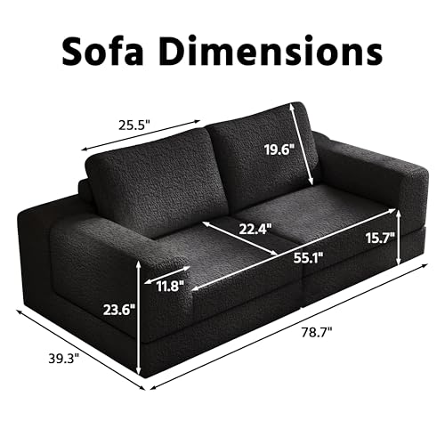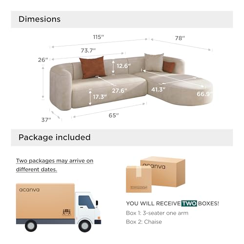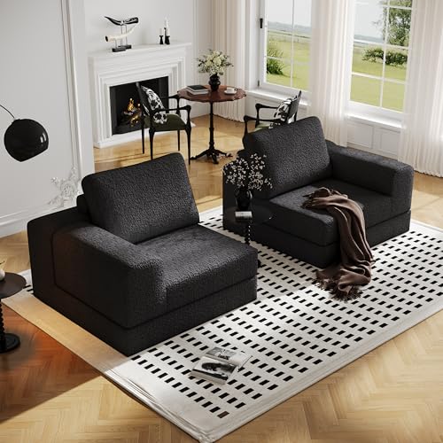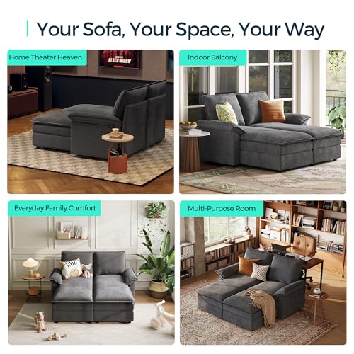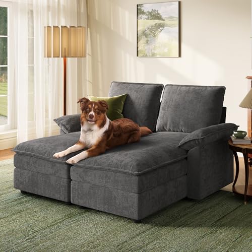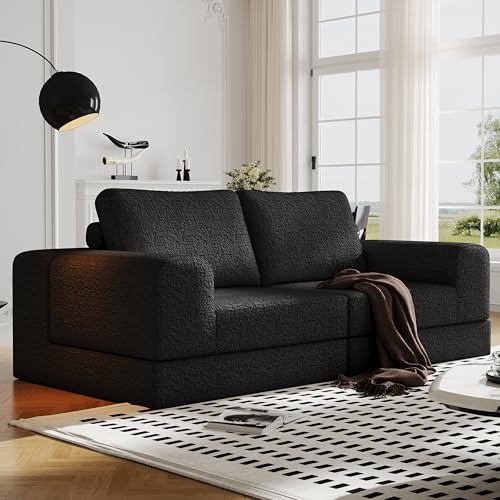 Cloud Modular Sectional Sofa, DIY Combination Modular Couch for Living Room, Unique Knitted Fabric Love Seat Couches with 2 Pillows, 2 Seater Comfy Sectional Couch with No Assembly (Beige)