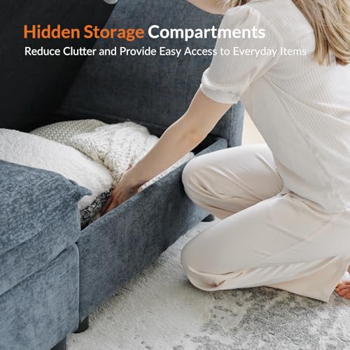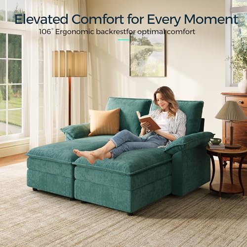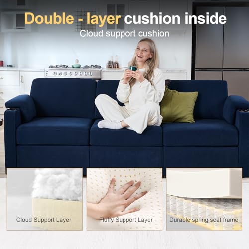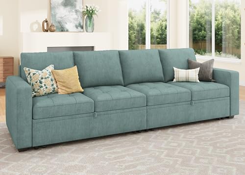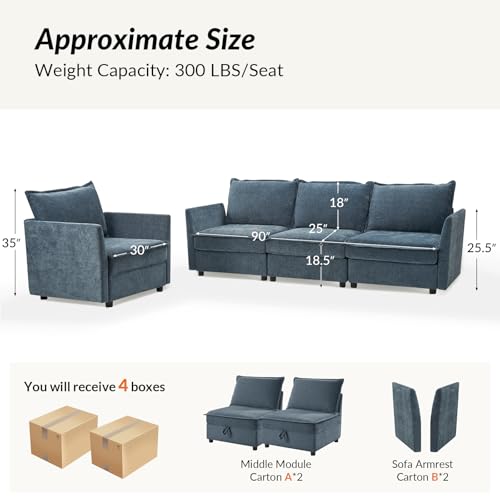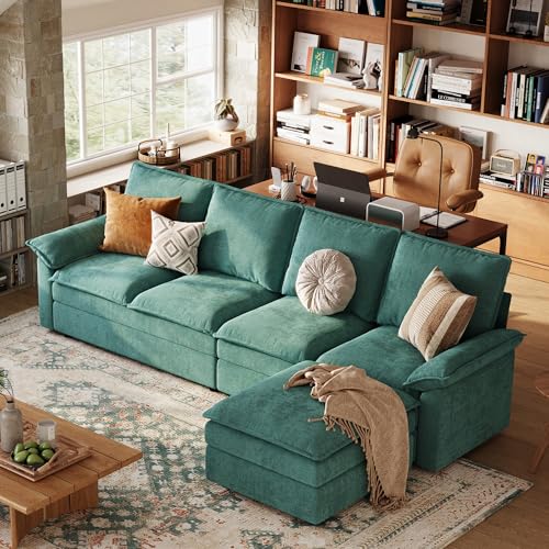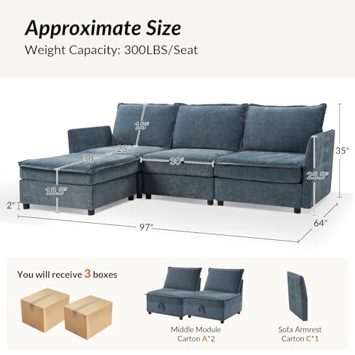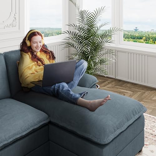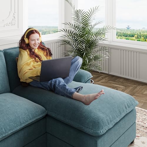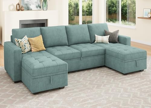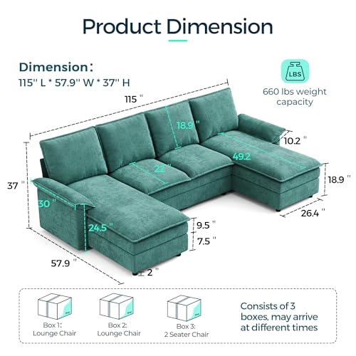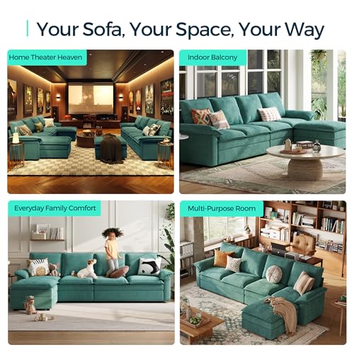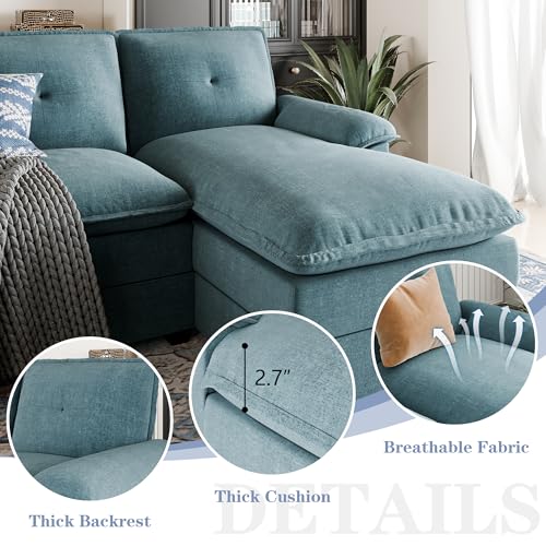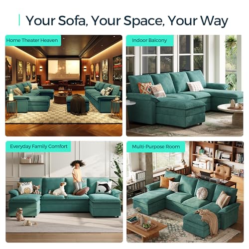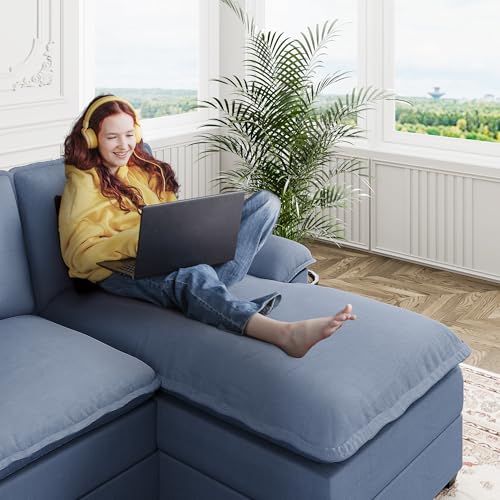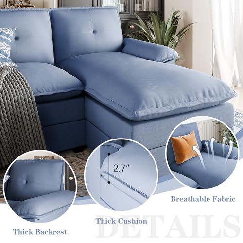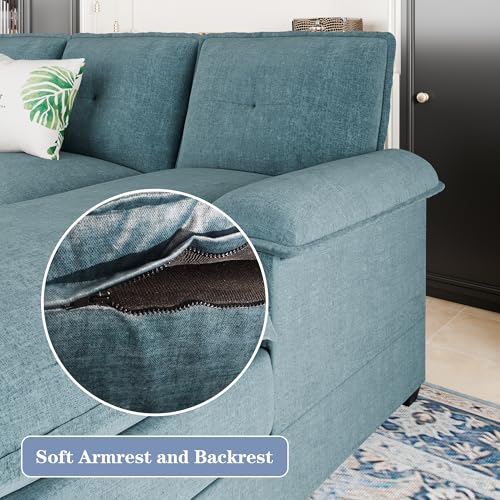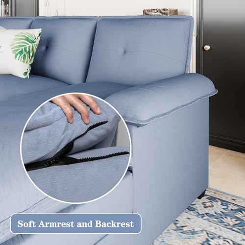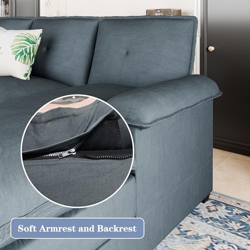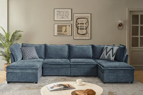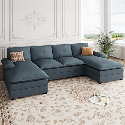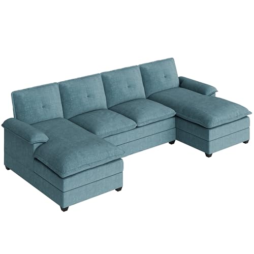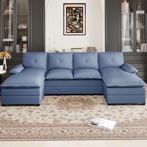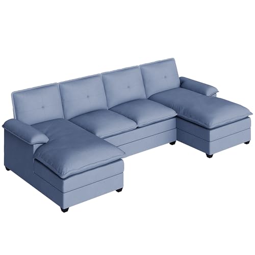 Shintenchi 110" Sectional Sofa Couch, U-Shaped Couches with Thick Cushion & Soft Backrest, 4 Seat Sofa Couch with Double Chaise for Living Room, Blue