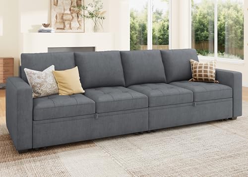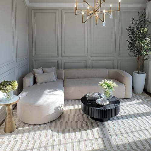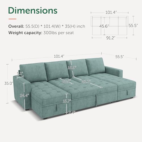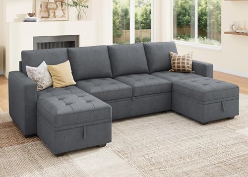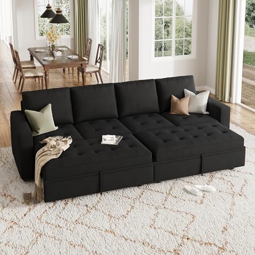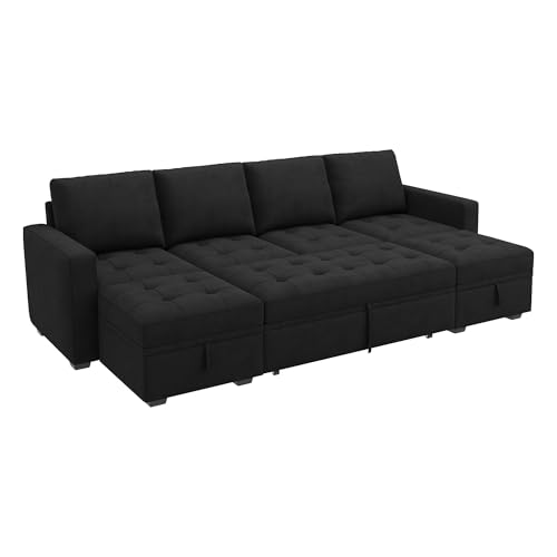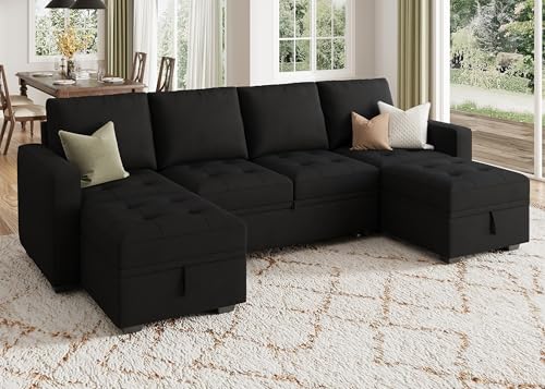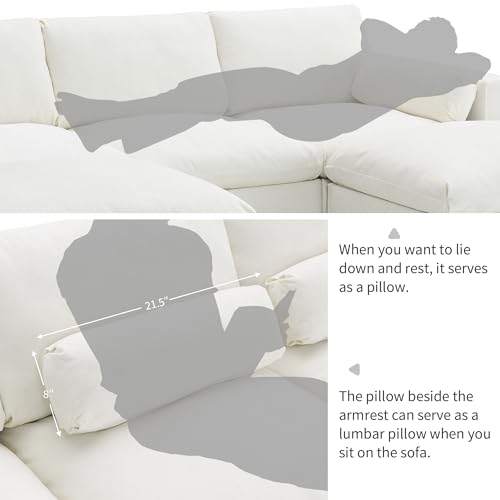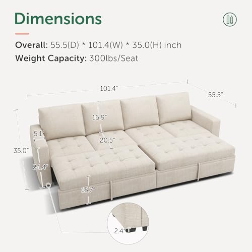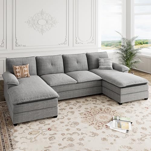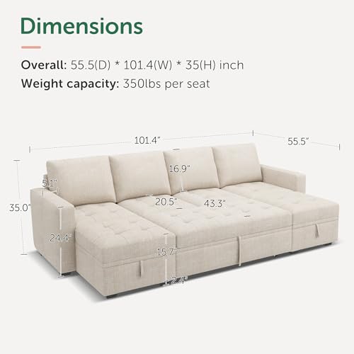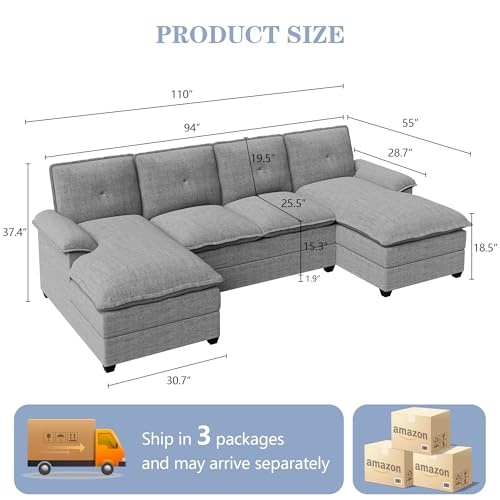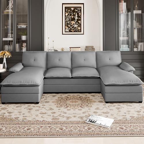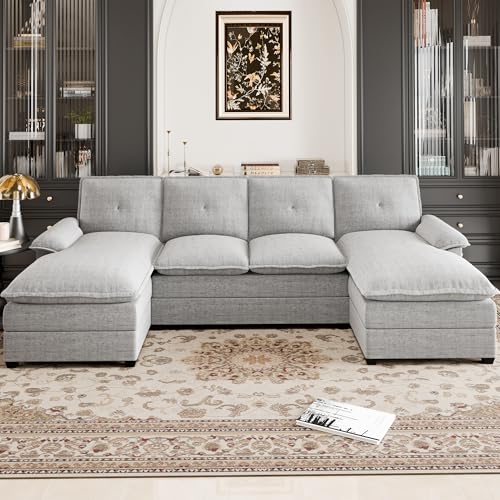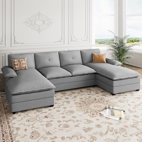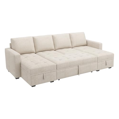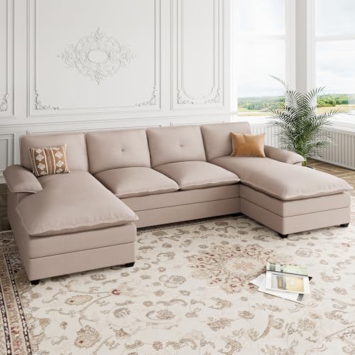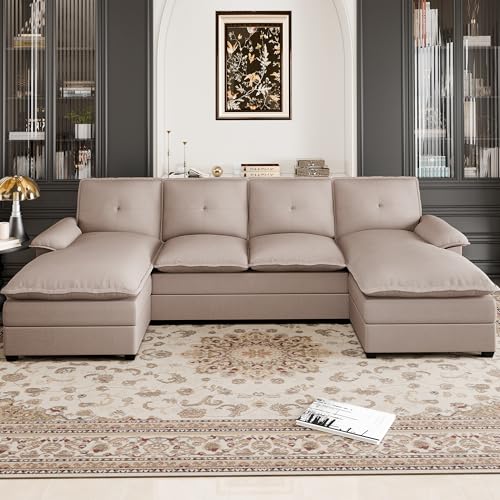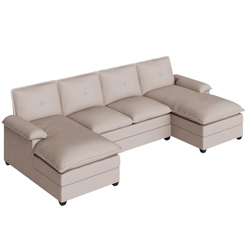 Shintenchi 110" U-Shaped Sectional Sofa, 4 Seat Sofa Couch Sleeper with Thick Cushion & Soft Backrest, Modular Couches with Double Chaise for Living Room, Beige