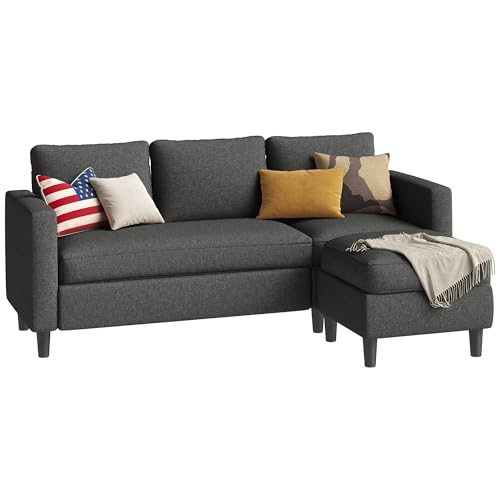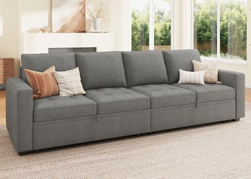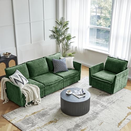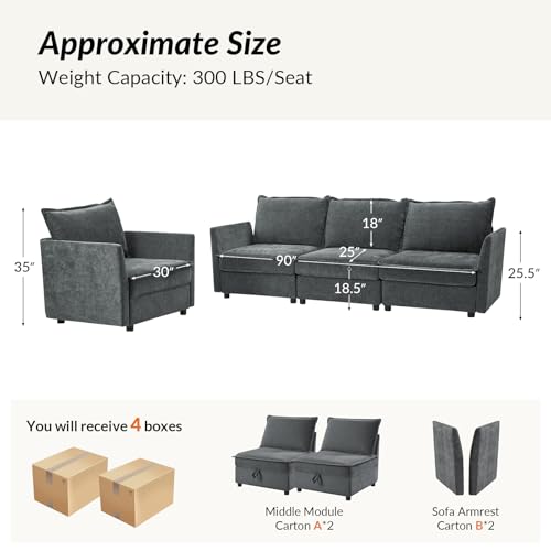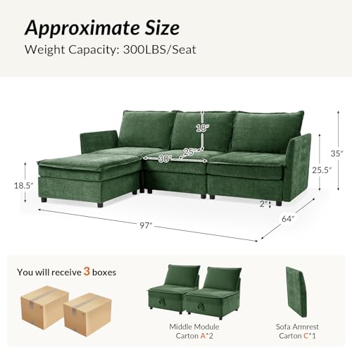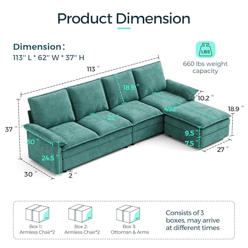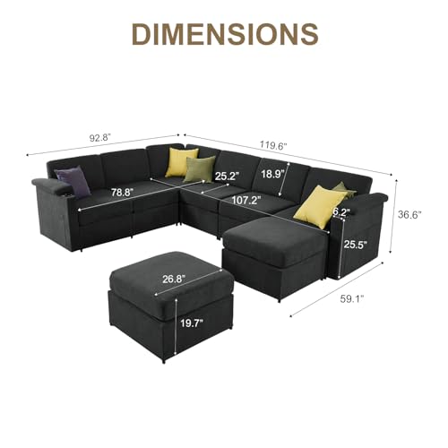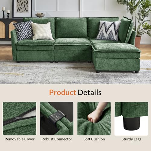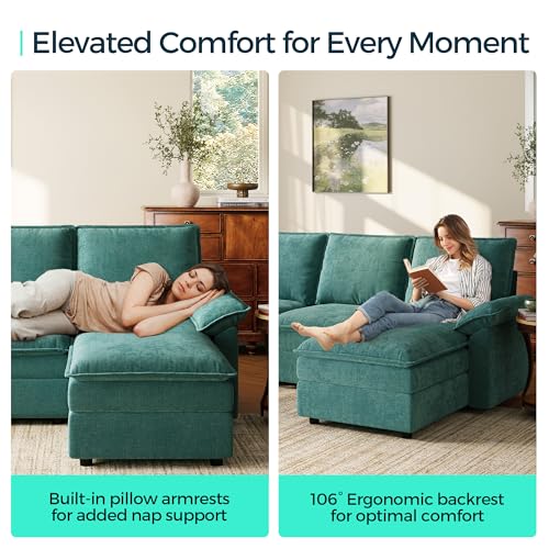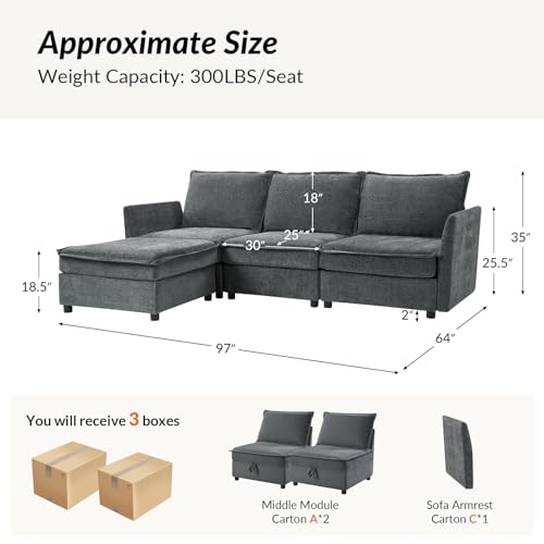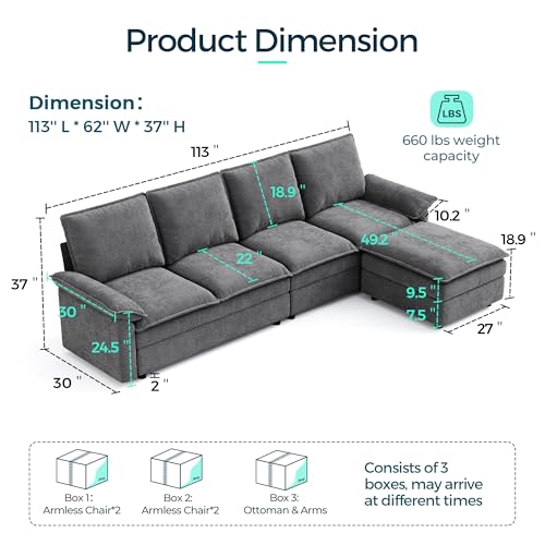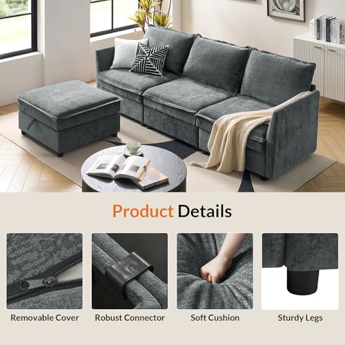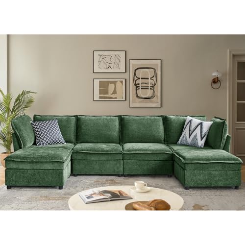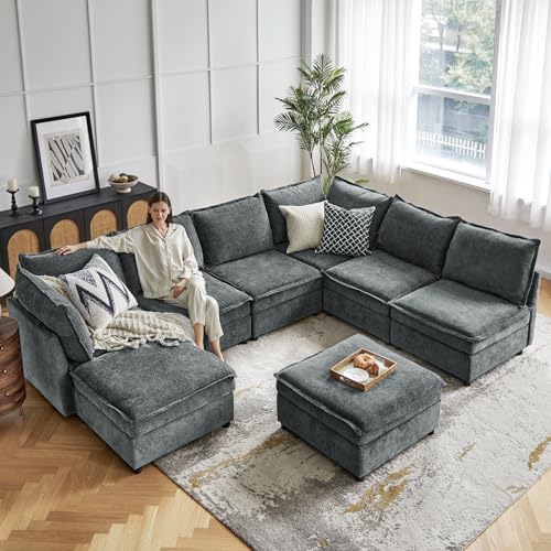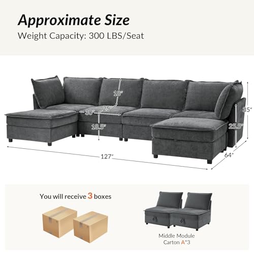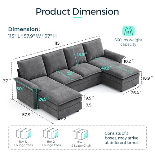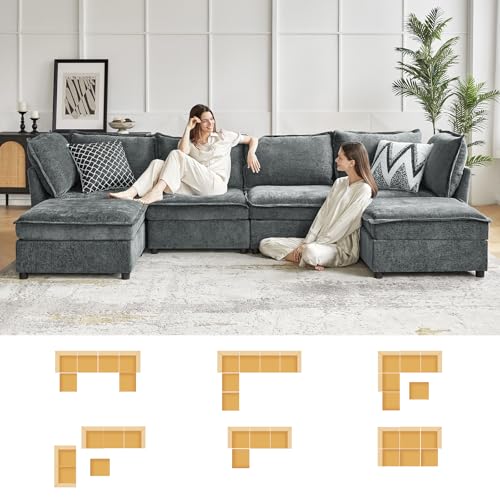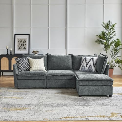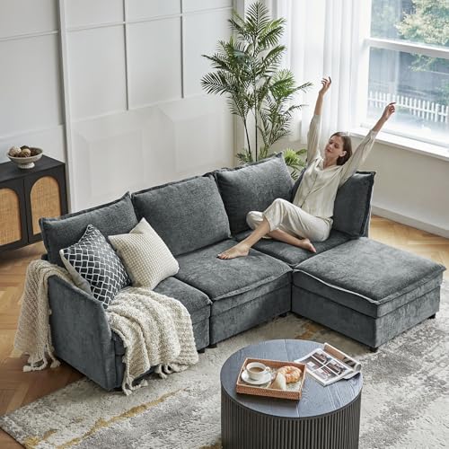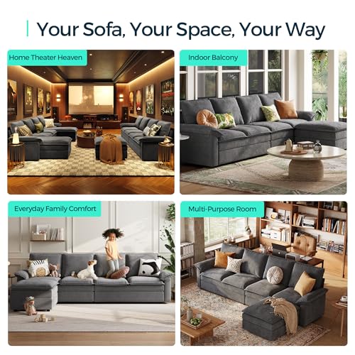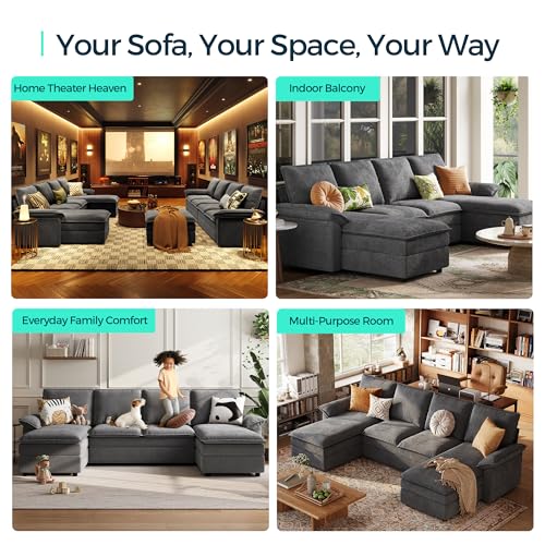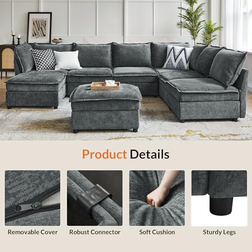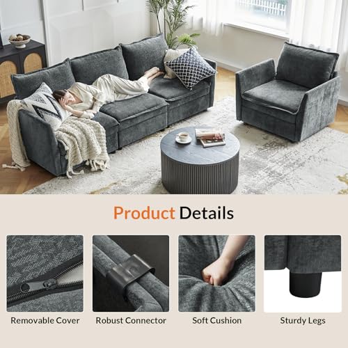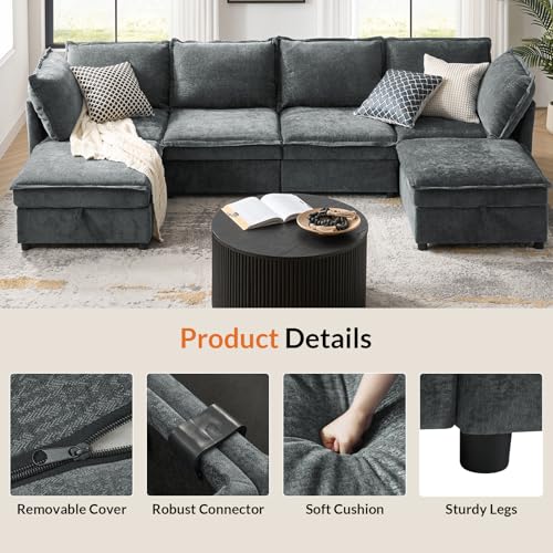 LINSY HOME Modular Sectional Couches, 115" U Shaped Sofa with Double Chaise, Chenille 4-Seat Sofa Set for Living Room, Apartment, Office, Dark Grey