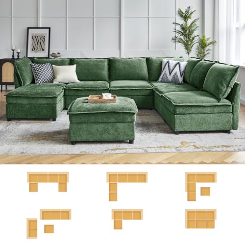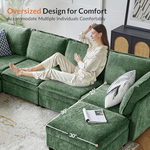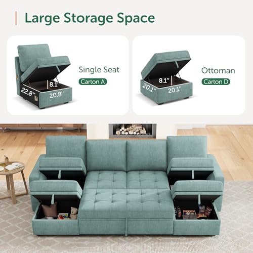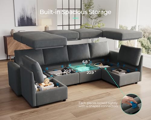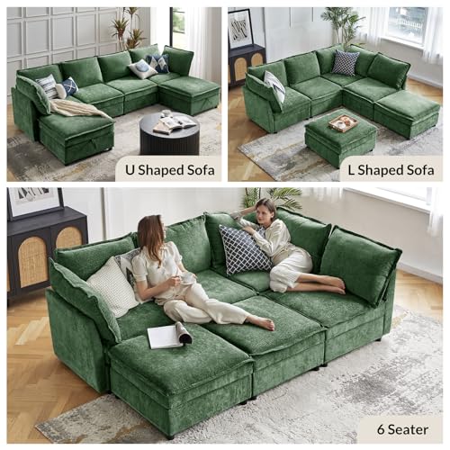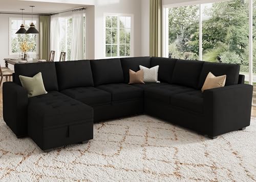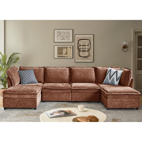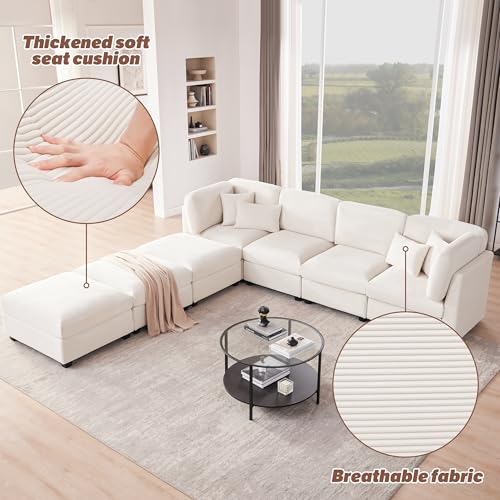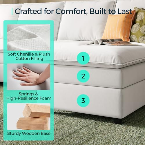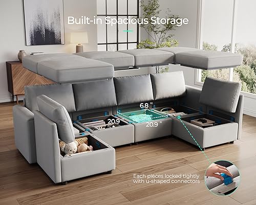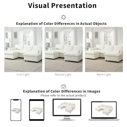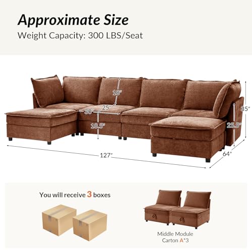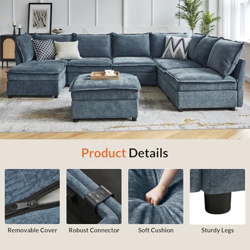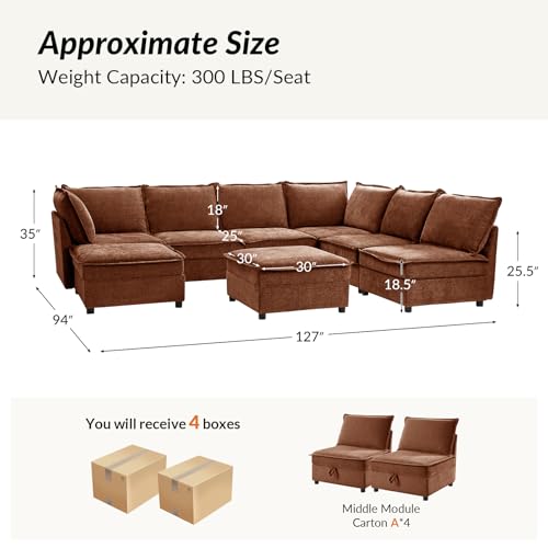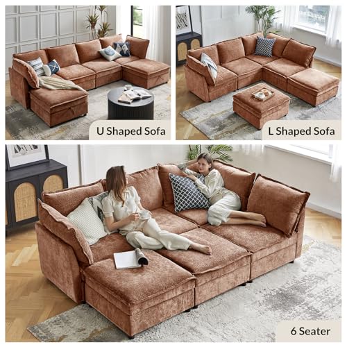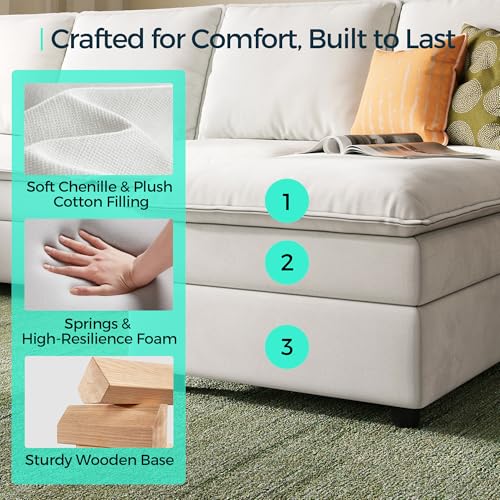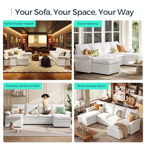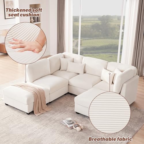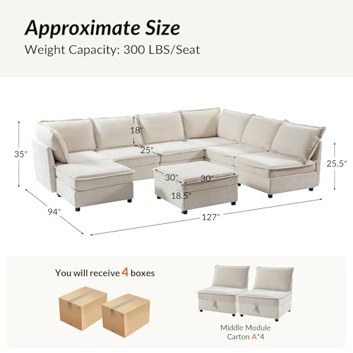 HULALA HOME 127'' Modular Sectional Sofa, Oversized U Shaped Couch with Storage Ottoman, Extra Deep Seat, Modern Comfy Chenille Sofa with Chaise, 6 Seat Convertible Couches for Living Room, Beige