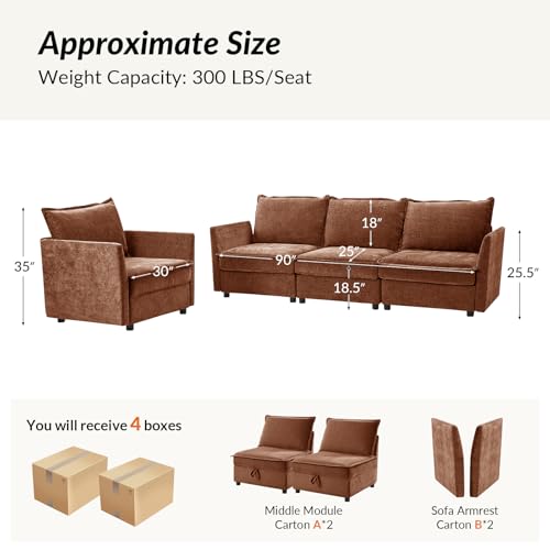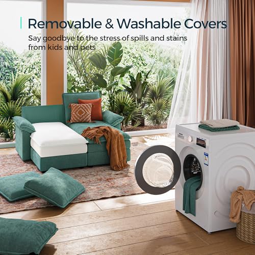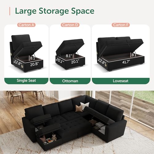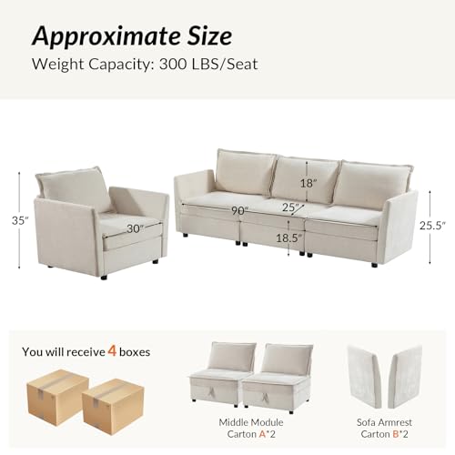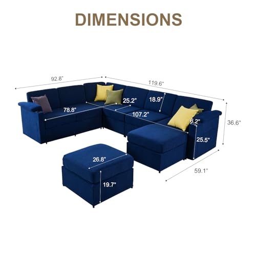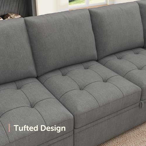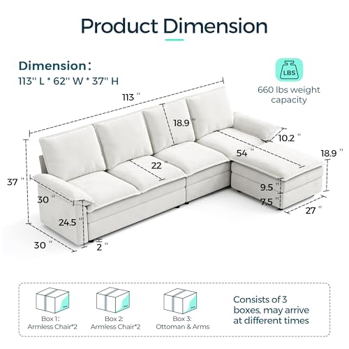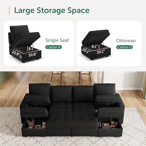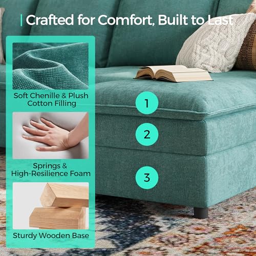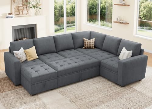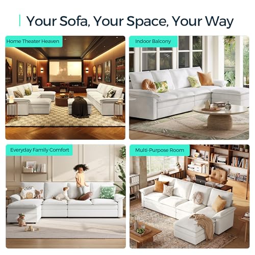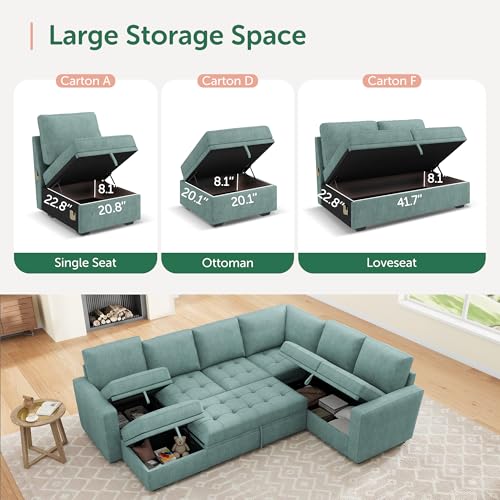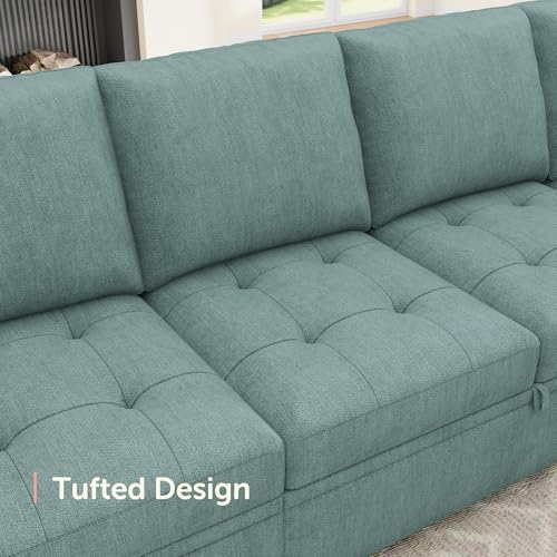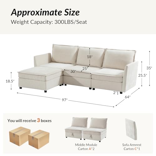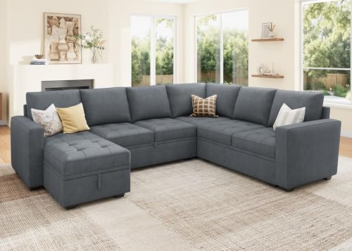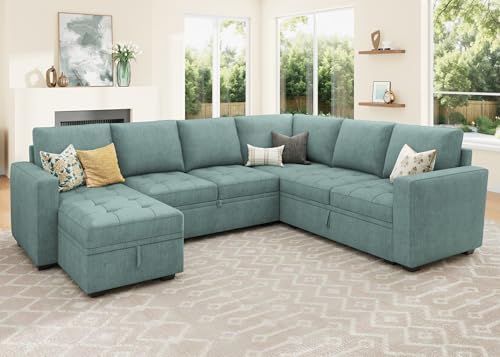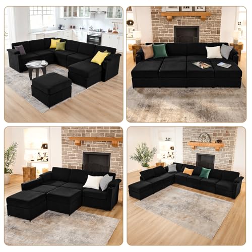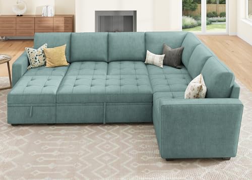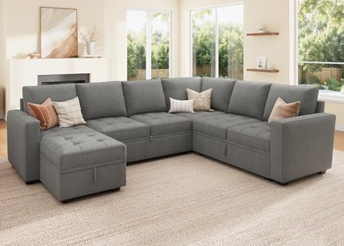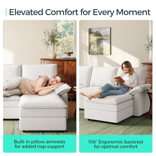HULALA HOME 127'' Modular Sectional Sofa, Oversized U Shaped Couch with Storage Ottoman, Extra Deep Seat, Modern Comfy Chenille Sofa with Chaise, 6 Seat Convertible Couches for Living Room, Beige