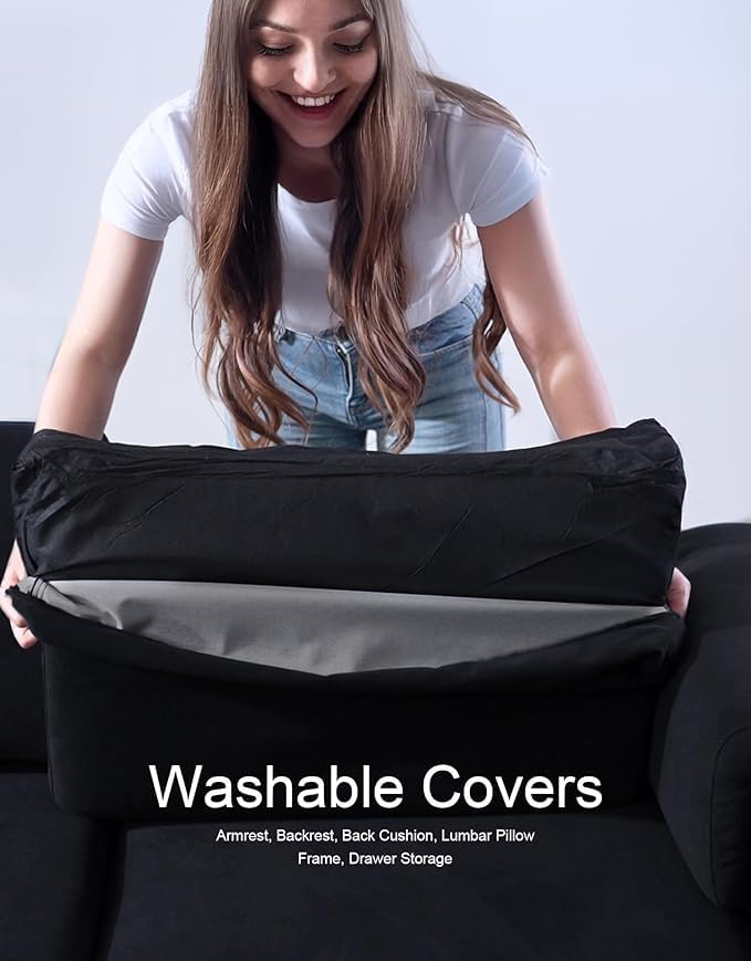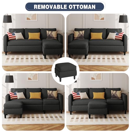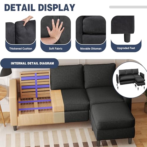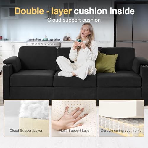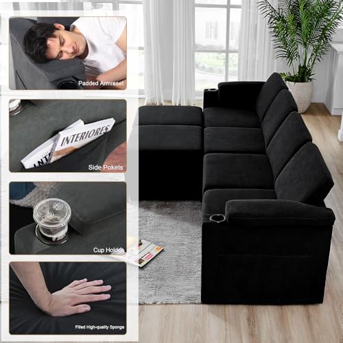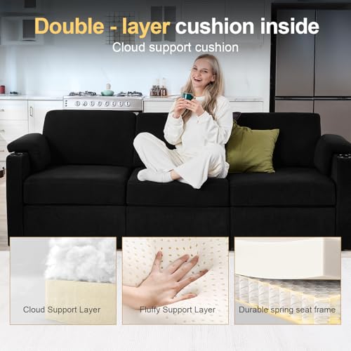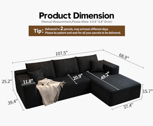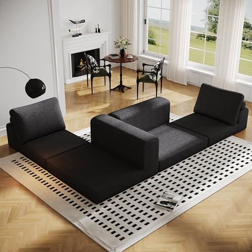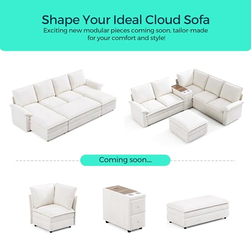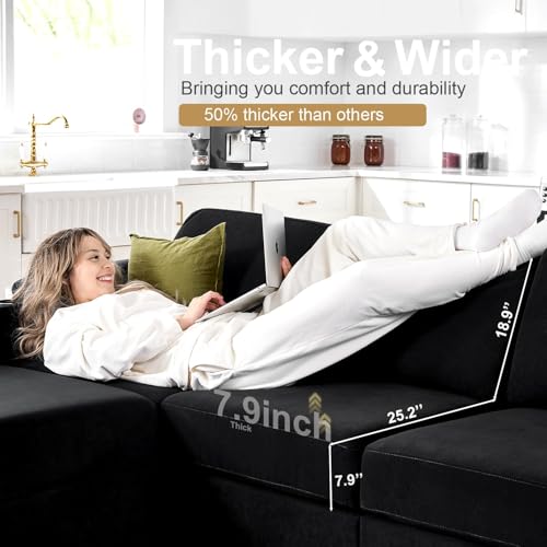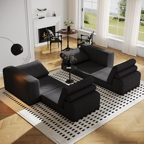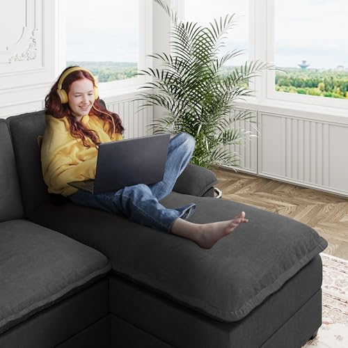 107.5" Cloud Modular Sectional Sofa with 1 Ottoman,Modern Minimalist Upholstered Couches, Comfort U Shaped Sofa for Living Room,Deep Seat Corner Couch,No Assembly Required (Black,Left Facing Chaise)