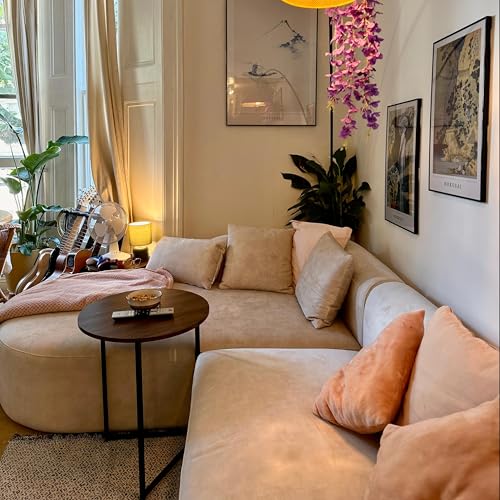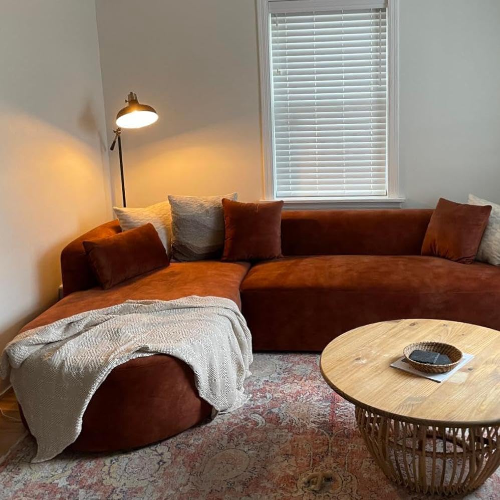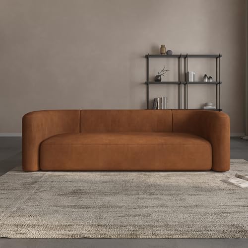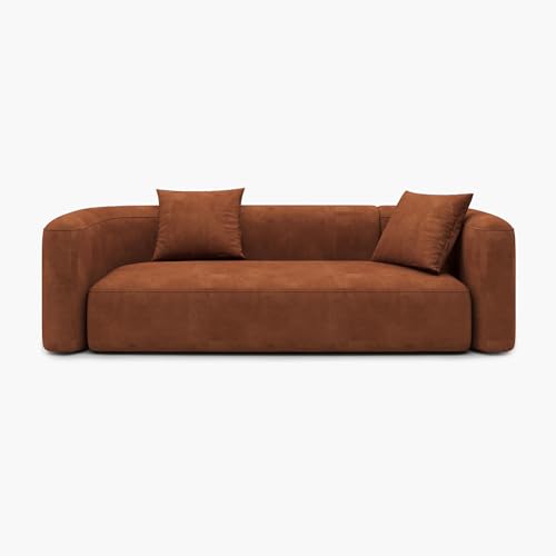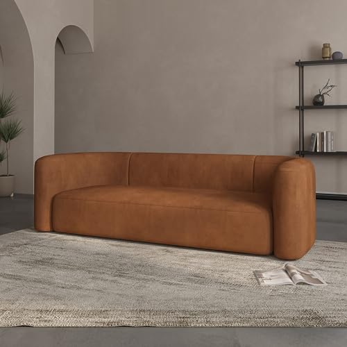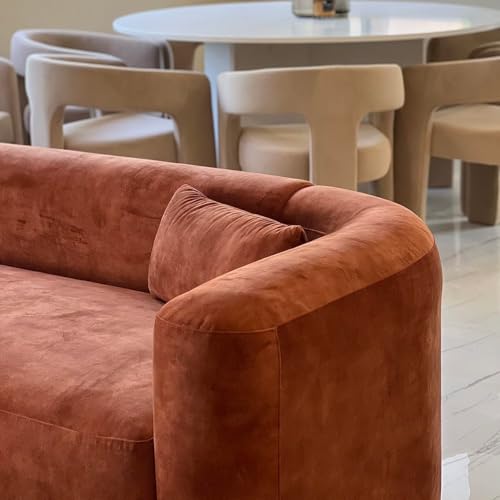 Acanva Luxury Modern Tight Curved Back Velvet Sofa, Minimalist Style Comfy Couch for Living Room Apartment, 4 Seater Modular Sectional, Tangerine