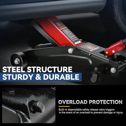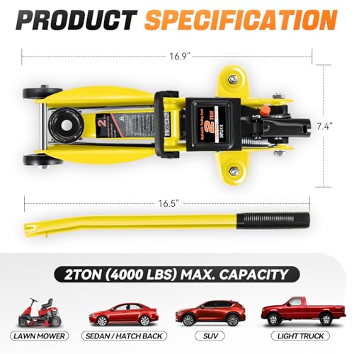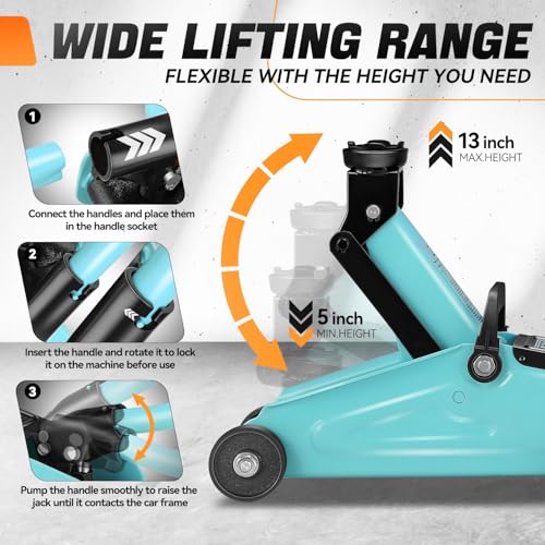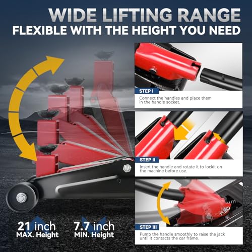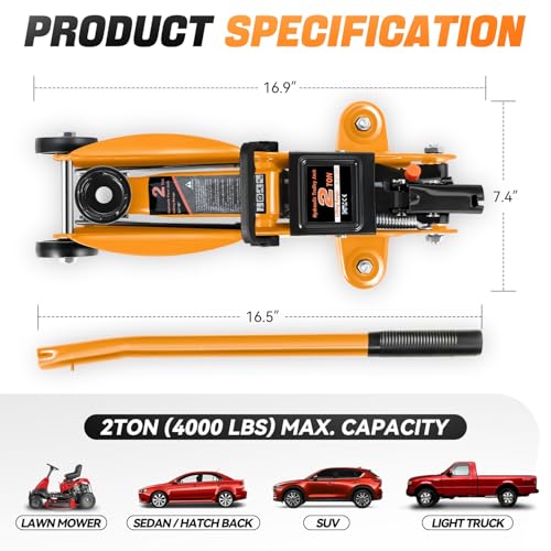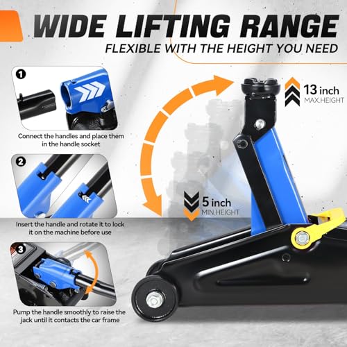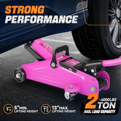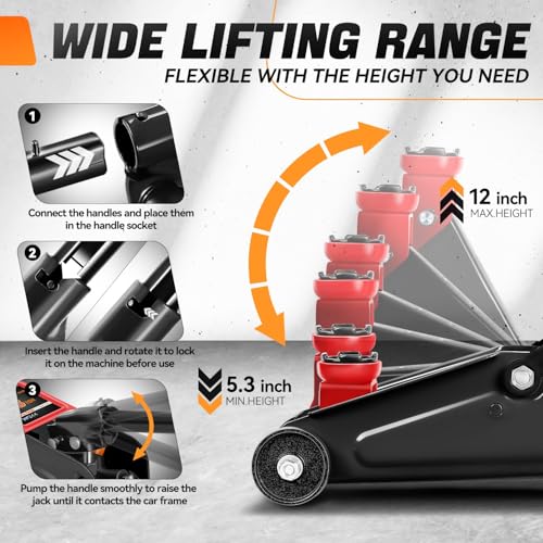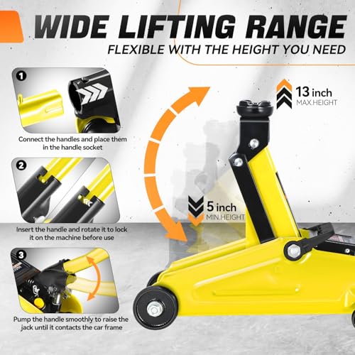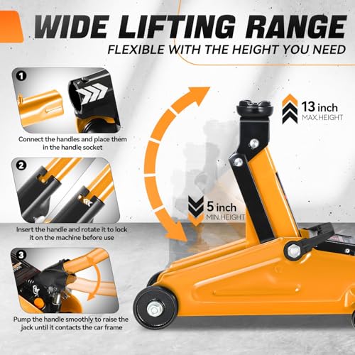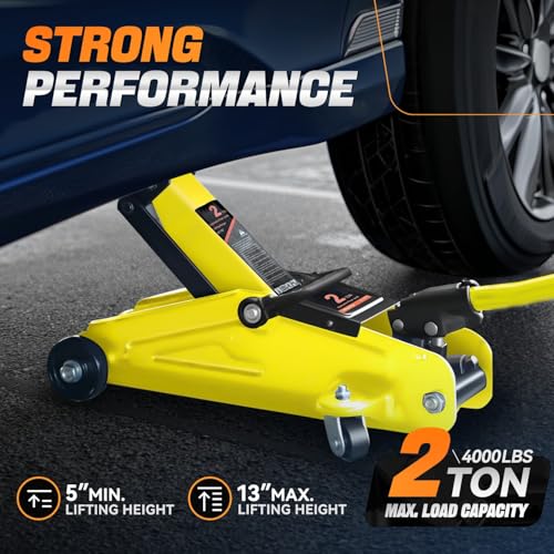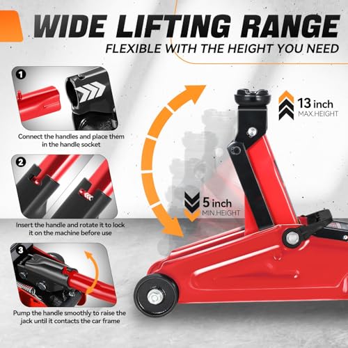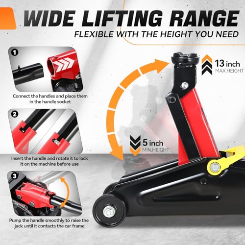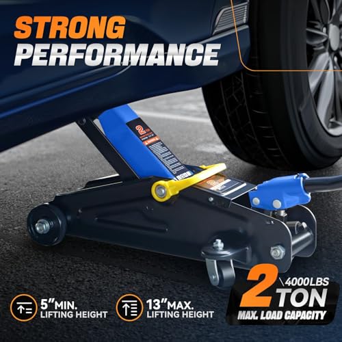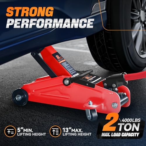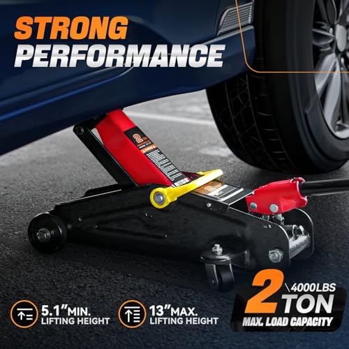 Auto Dynasty 2 Ton Floor Jack, Heavy Duty Steel Hydraulic Car Jack with Single Piston Quick Lift Pump, Hydraulic Racing Floor Jack, Lifting Range 5.1" to 13", Black