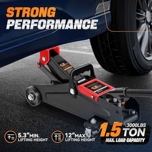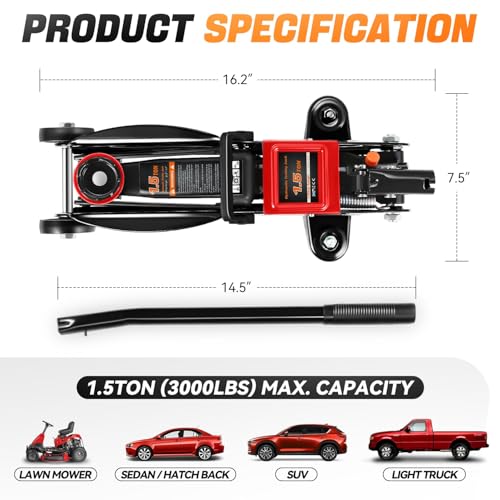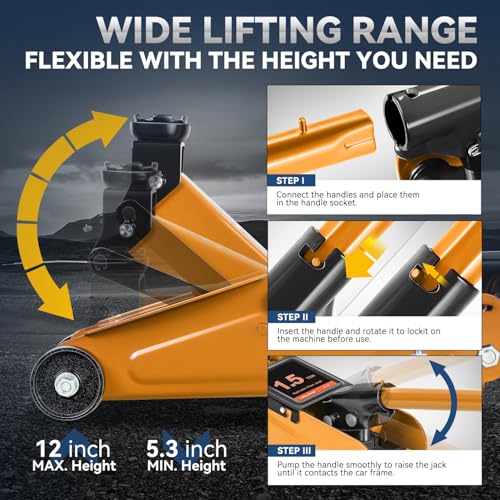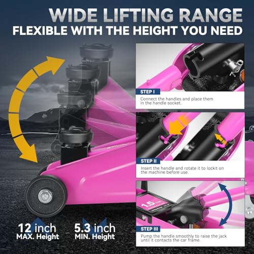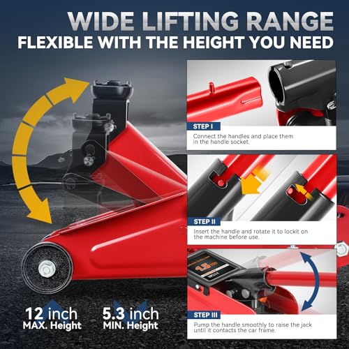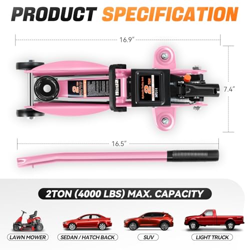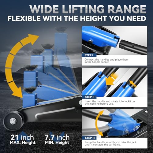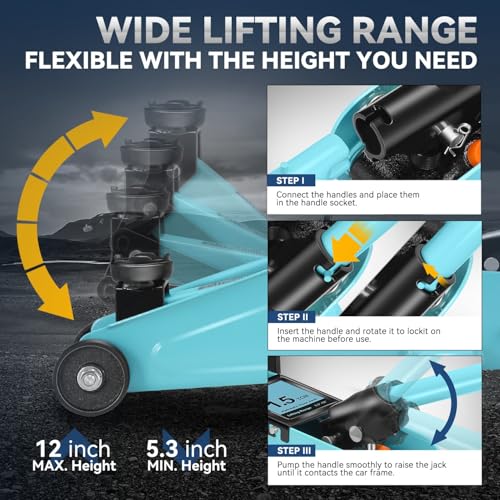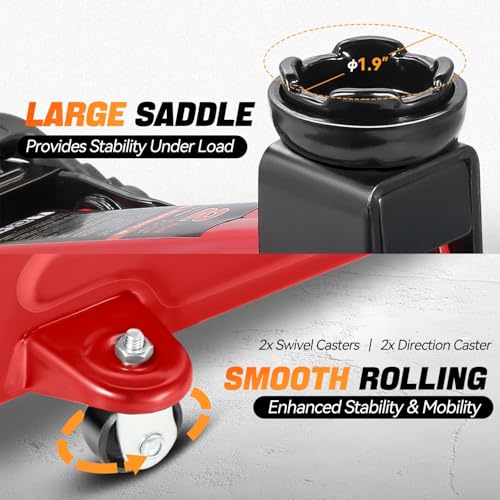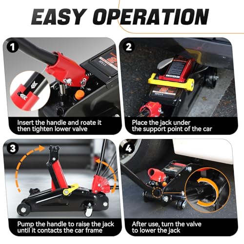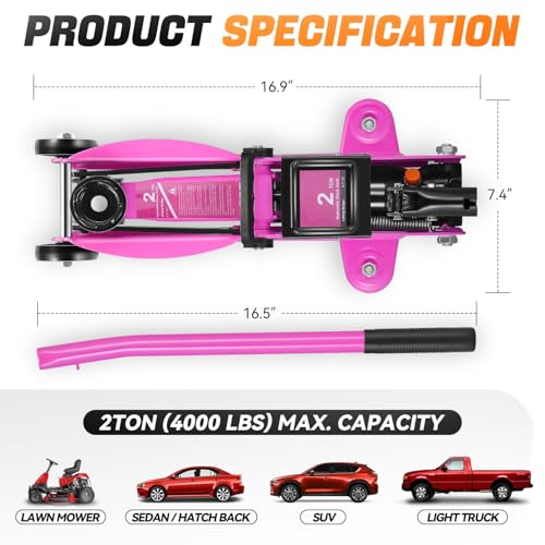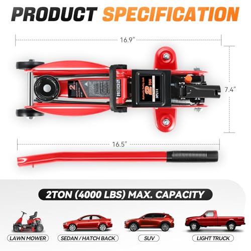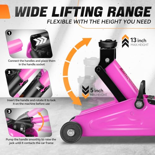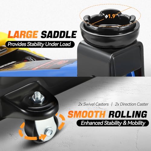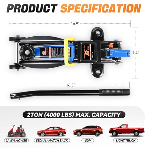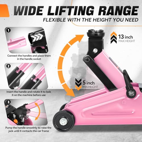 Auto Dynasty 2 Ton Floor Jack, Heavy Duty Steel Hydraulic Car Jack with Single Piston Quick Lift Pump, Hydraulic Racing Floor Jack, Lifting Range 5.1" to 13", Black