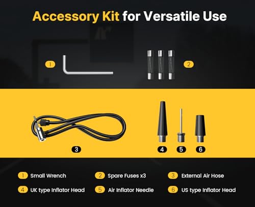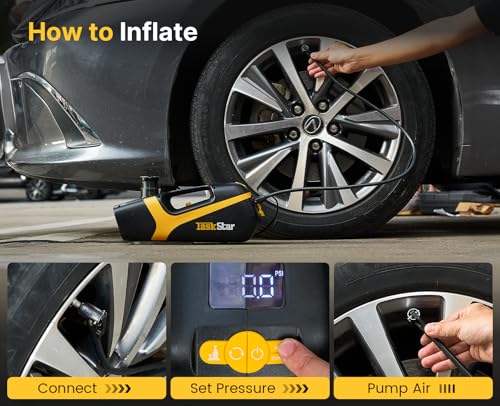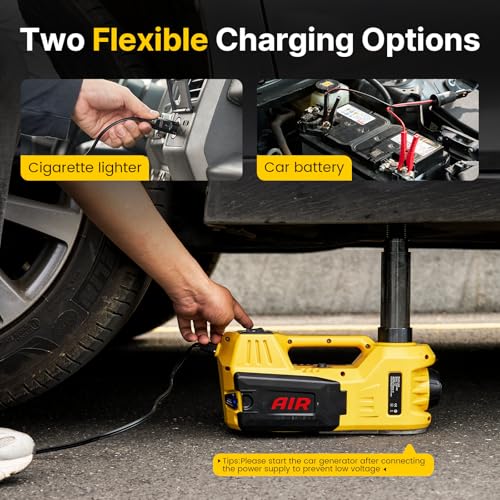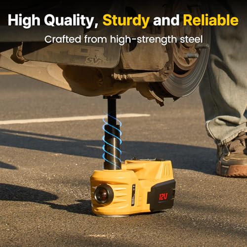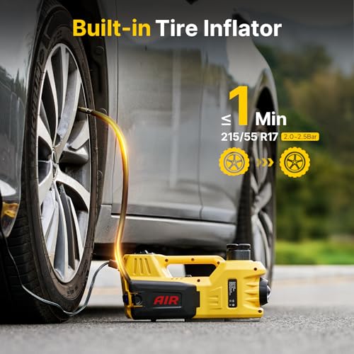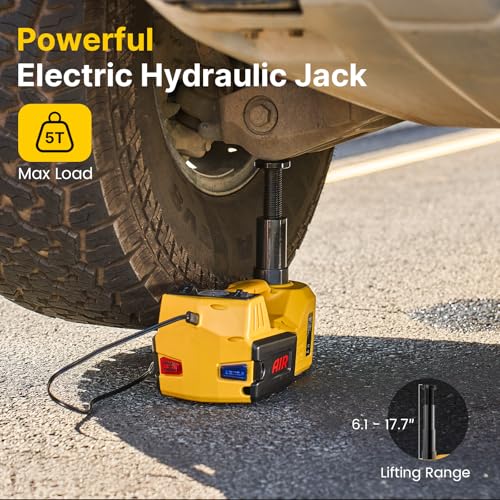 Electric Car Jack, 5 Ton 12V Digital Display Electric Jack for Car with E-Impact Wrench, Tire Inflator Pump and LED Light, (Lifting Range: 6.1~17.7 Inch) for Sedan, SUV, Truck Tire Change Replacement