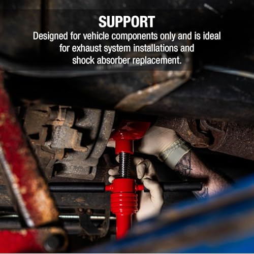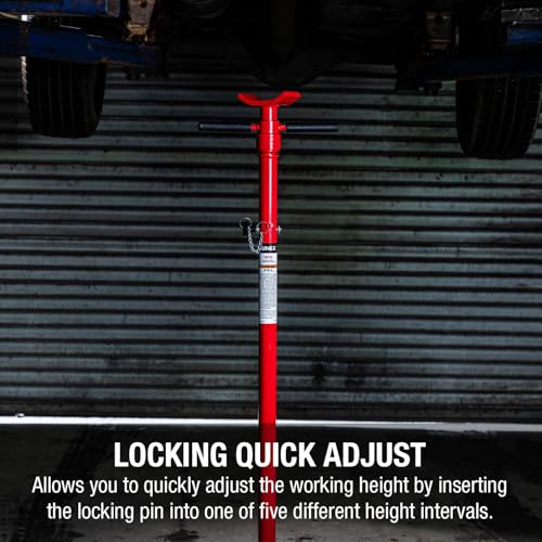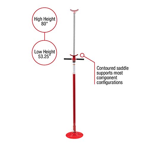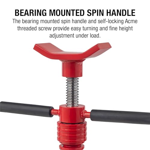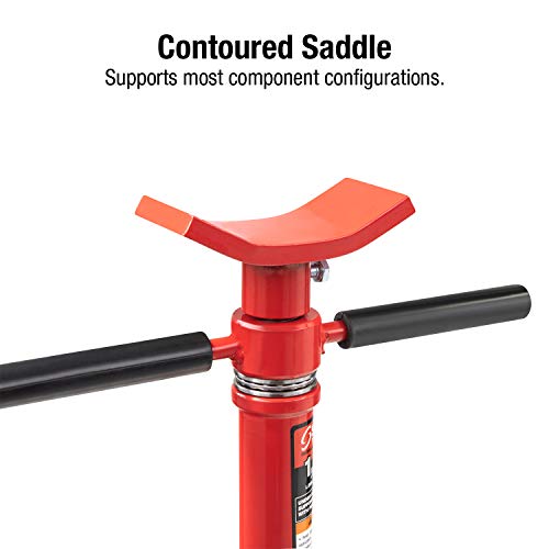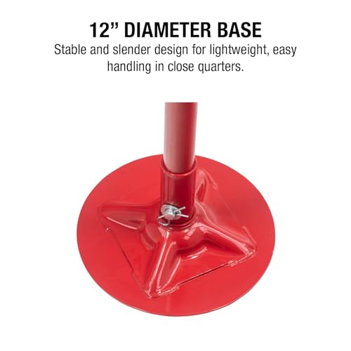 Sunex 6809A, Underhoist Support Stand, ¾ Ton Capacity, 12 Inch Diameter Base, Contoured Saddle, Bearing Mounted Spin Handle, Self-Locking ACME Threaded Screw, Supports Vehicle Components