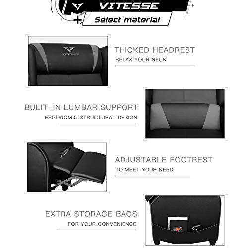 VITESSE VIT Gaming Recliner Chair Racing Style Single PU Leather Sofa Modern Living Room Recliners Ergonomic Comfortable Home Theater Seating, Blue.