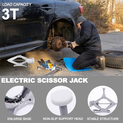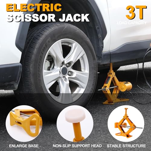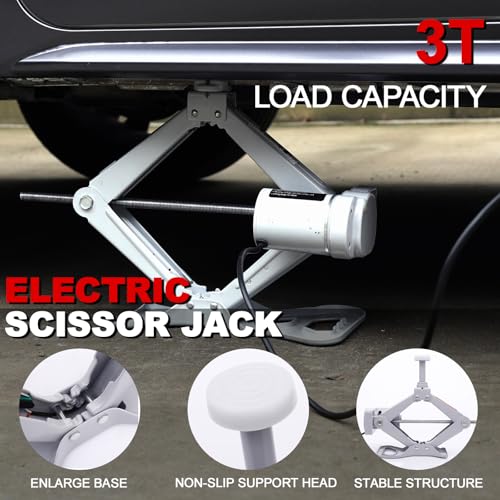Electric Car Jack 3 Ton Floor Jack 12V Truck Jack Stands Kit Scissor Car Lift Jack for Tire Change and Road Emergencies with Carrying Case
