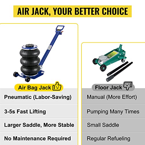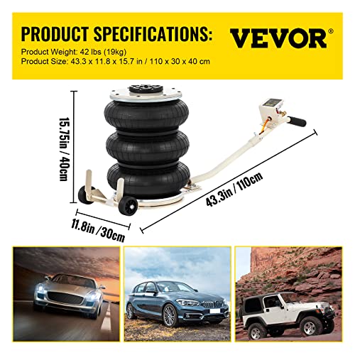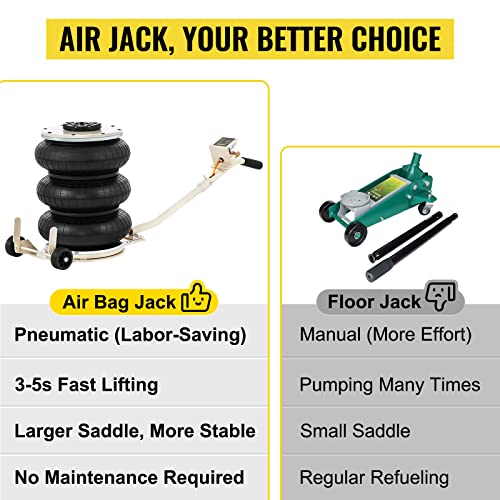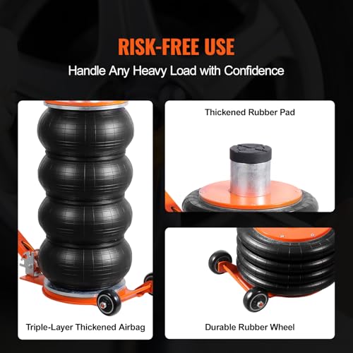 VEVOR Air Jack, 6 Ton/13000 lbs Quadruple Bag Air Jack, Lift up to 26.5", with Heightened Column & Adjustable Handle, Thick Rubber Pad, 2-5 S Fast Lifting Pneumatic Jack for Car, SUV, Pickup Truck