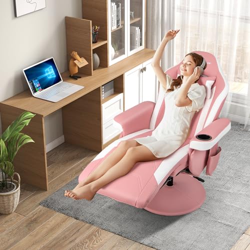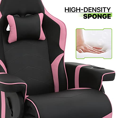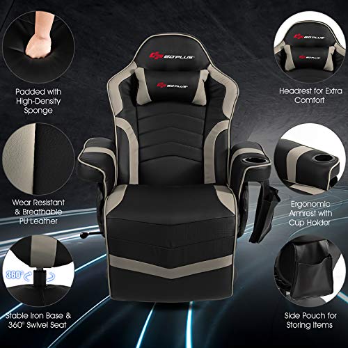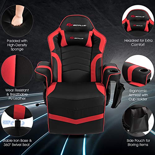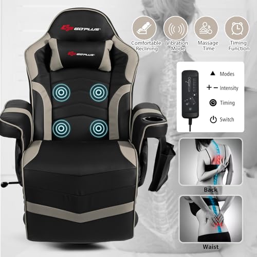 Goplus Massage Gaming Chair, Racing Style Gaming Recliner w/Adjustable Backrest and Footrest, Ergonomic High Back PU Leather Computer Office Chair Swivel Game Chair w/Cup Holder and Side Pouch