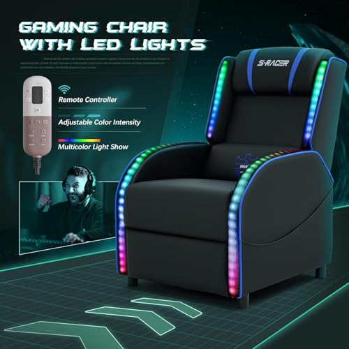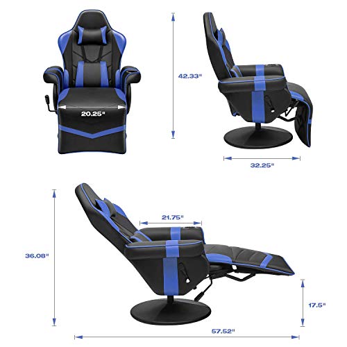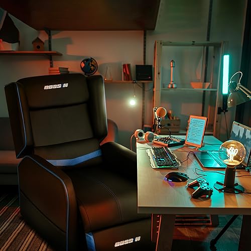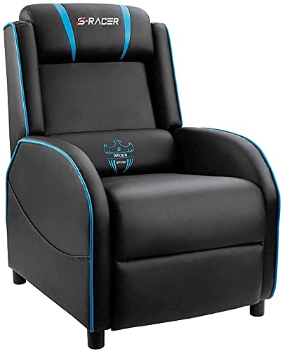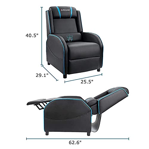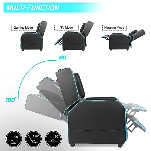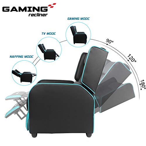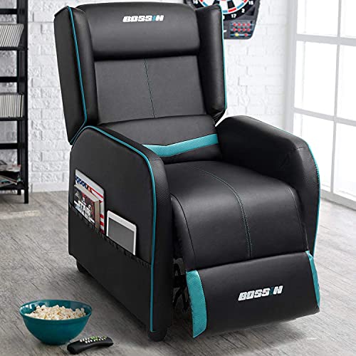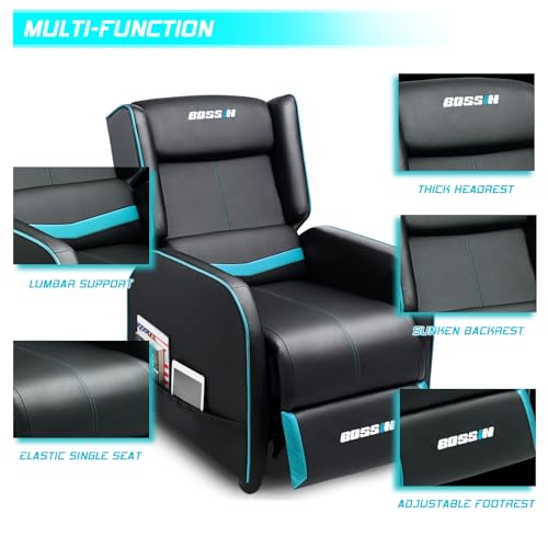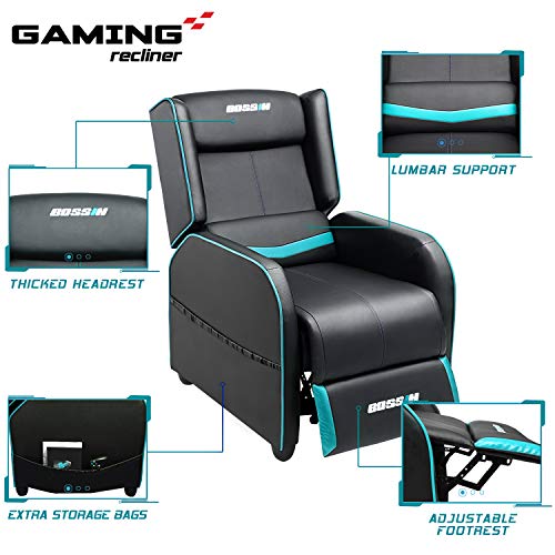 BOSSIN Gaming Recliner Chair for Adults 400lbs Racing Style Sofa Big and Tall PU Leather Recliner Seating, Modern Ergonomic Lounge Comfortable Home Movie Theater for Living Room(Cyan)