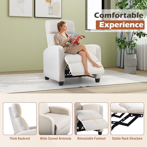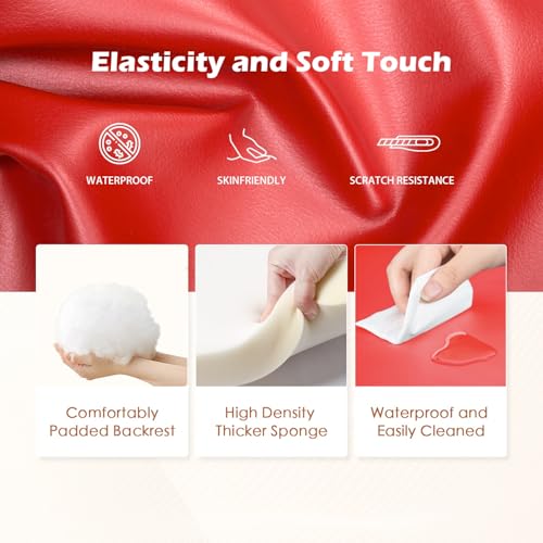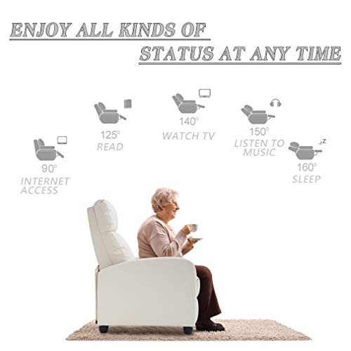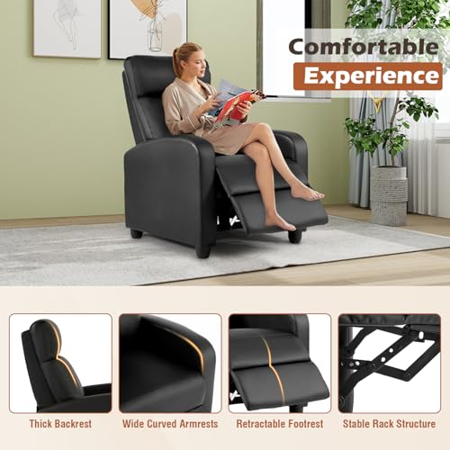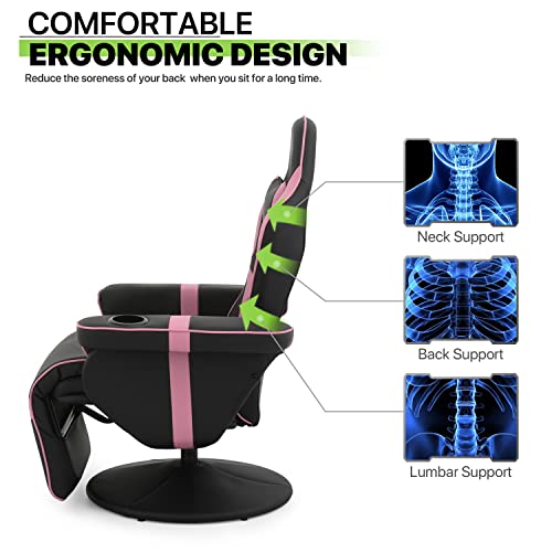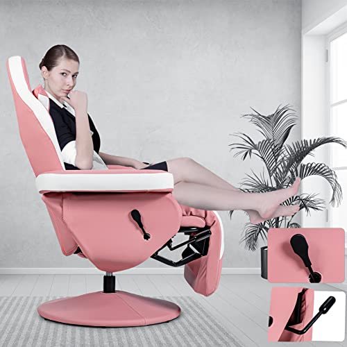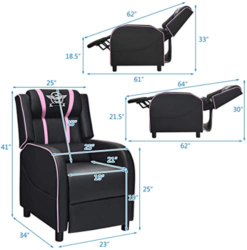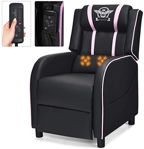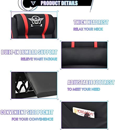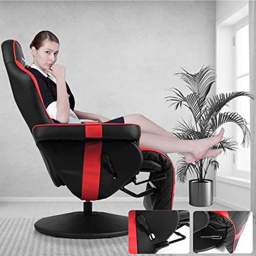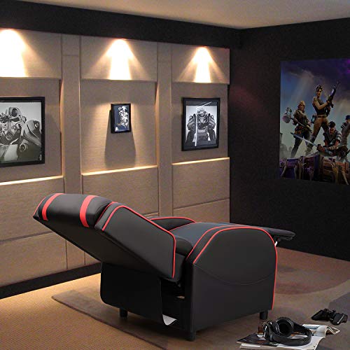 BUSHLY Adjustable Gaming Recliner Chair, Racing Style Massage Single Sofa with Headrest & Lumbar Pillow, PU Leather Video Recliner for Home, Movie Theater, Living Room, Game Room (Red)