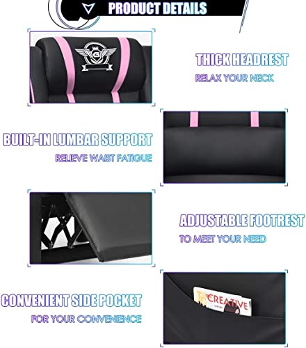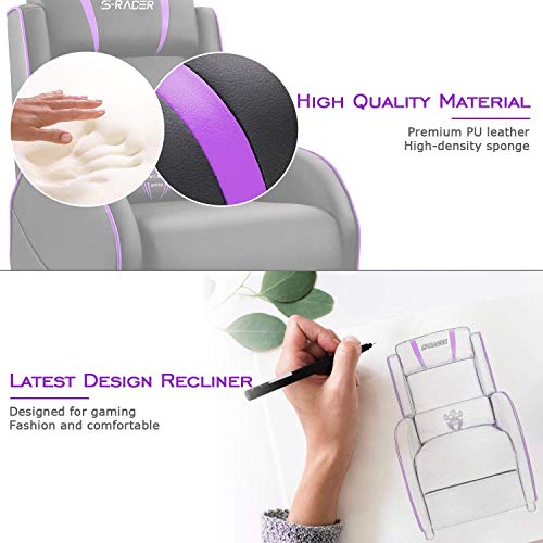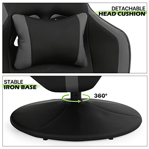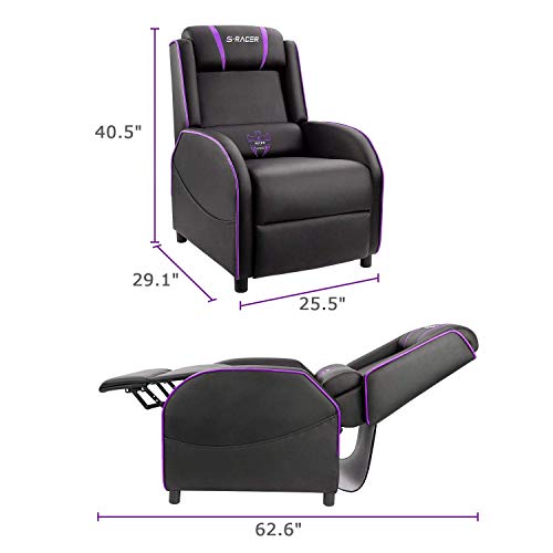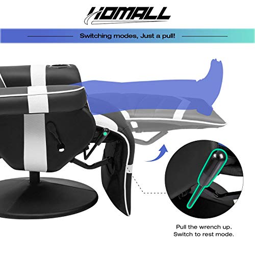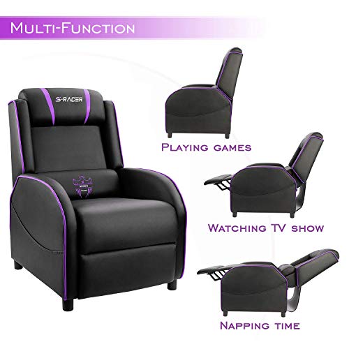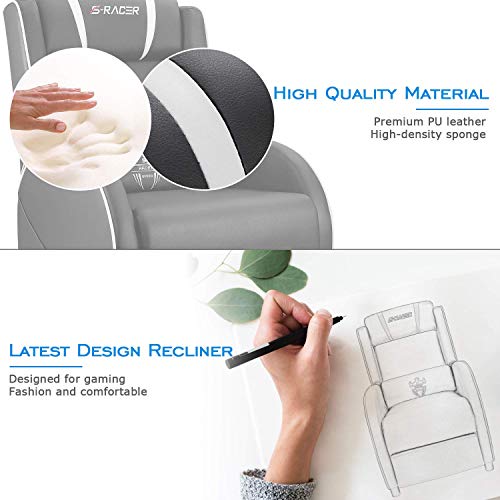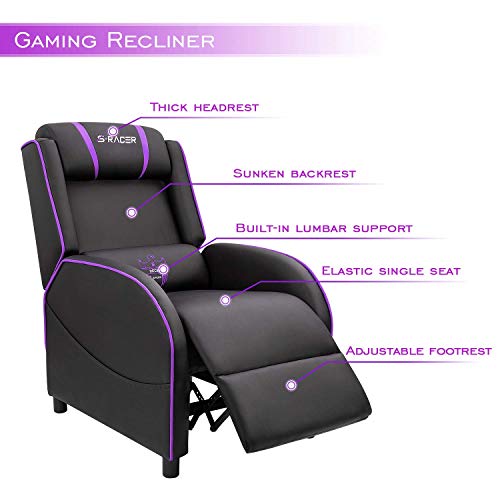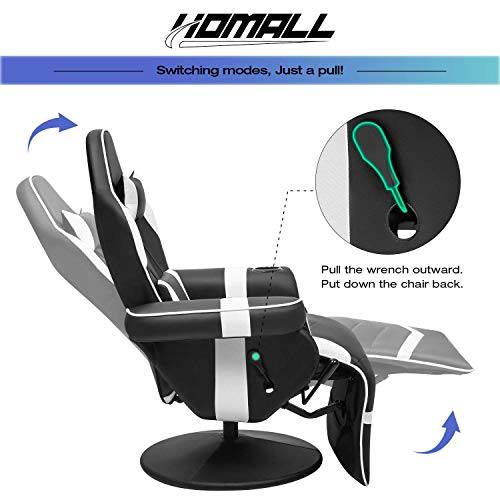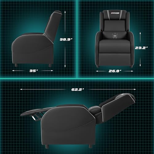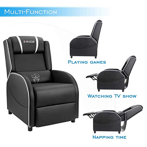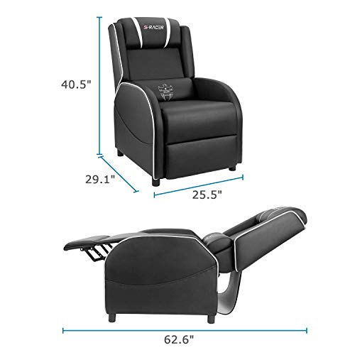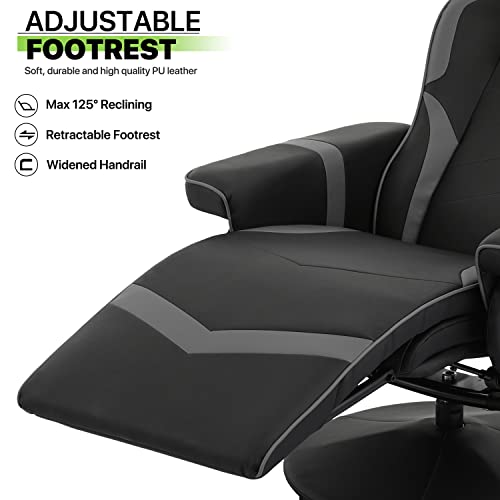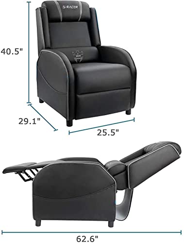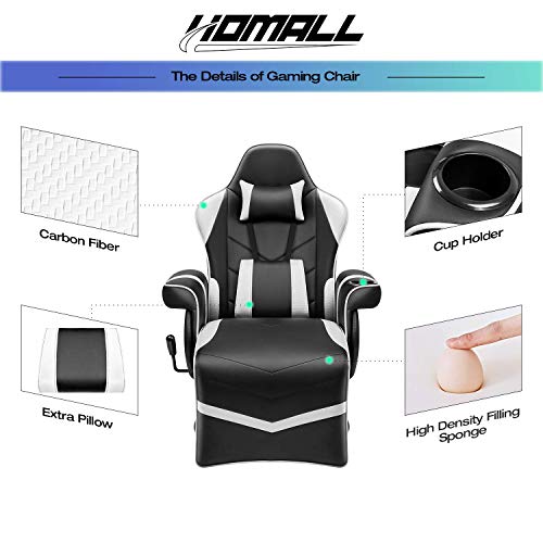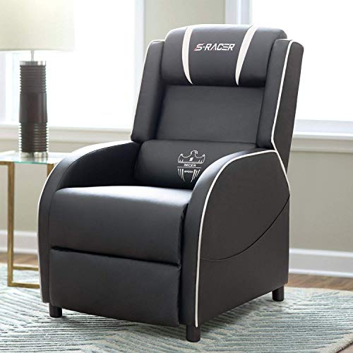 Homall Computer Racing Style Pu Leather Ergonomic Adjusted Reclining Video Gaming Single Sofa Chair with Footrest Headrest and Lumbar Support (Black)