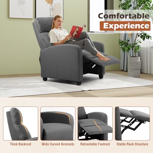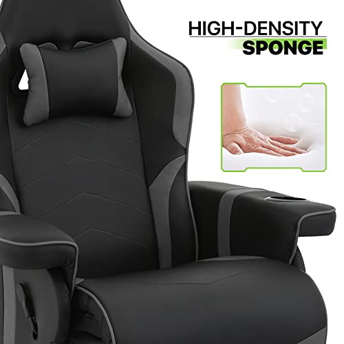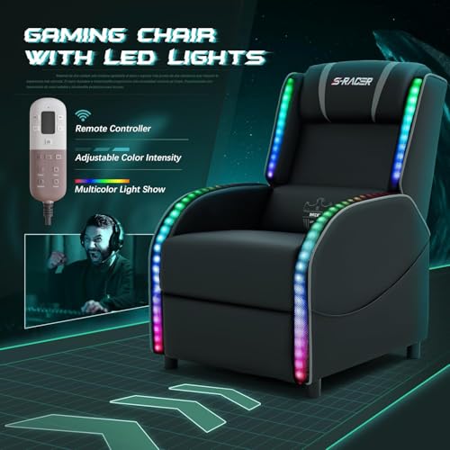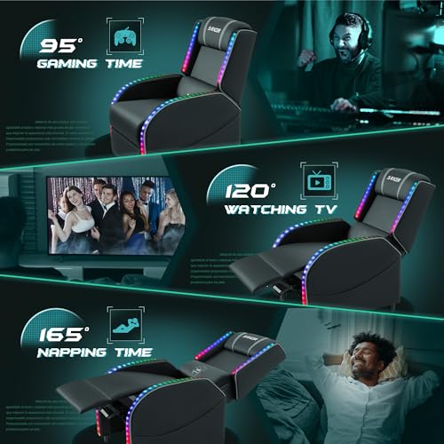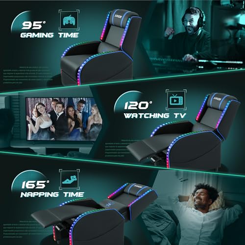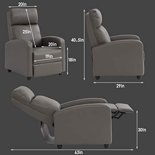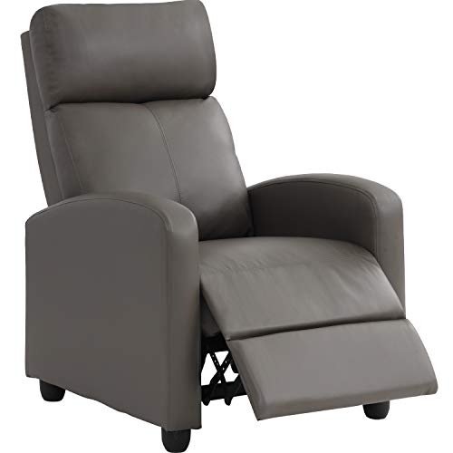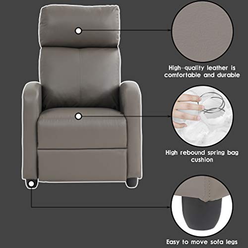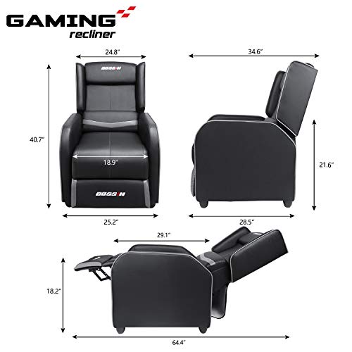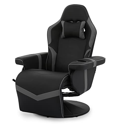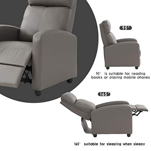 LEMBERI Gaming Recliner Chair for Adults, PU Leather Home Theater Seating Video Game Chairs for Living Room Ergonomic Racing Style Single Movie Gamer Lounge Sofa Grey